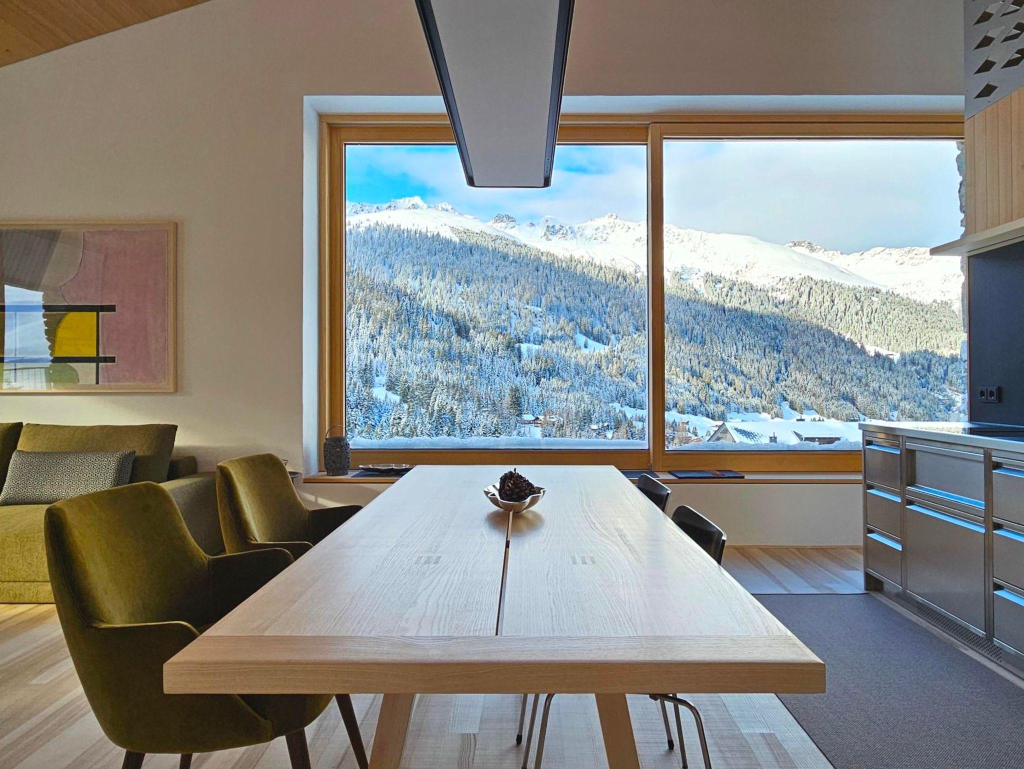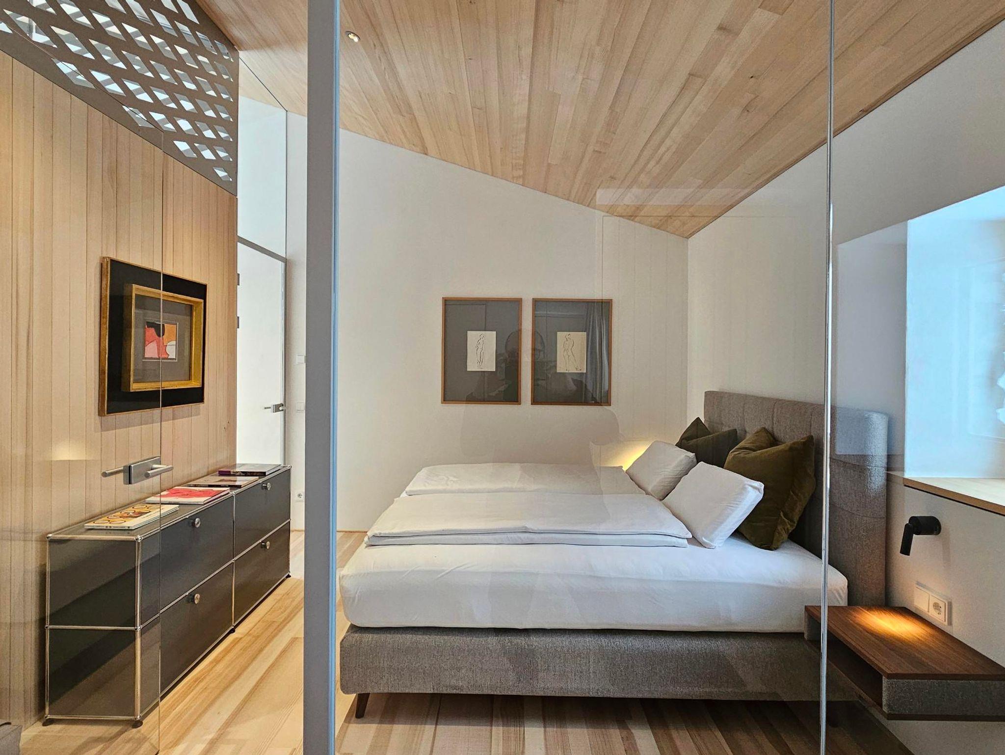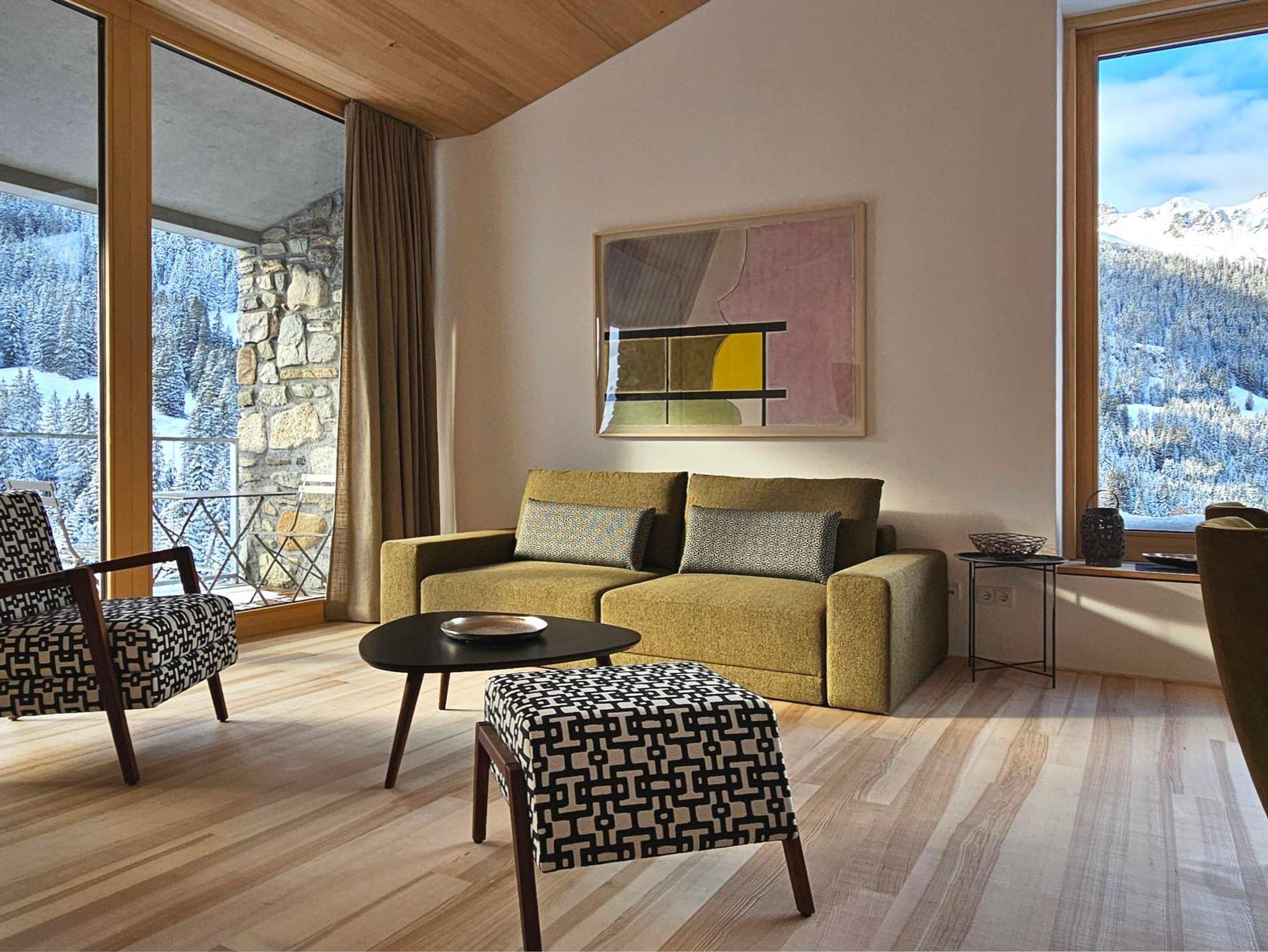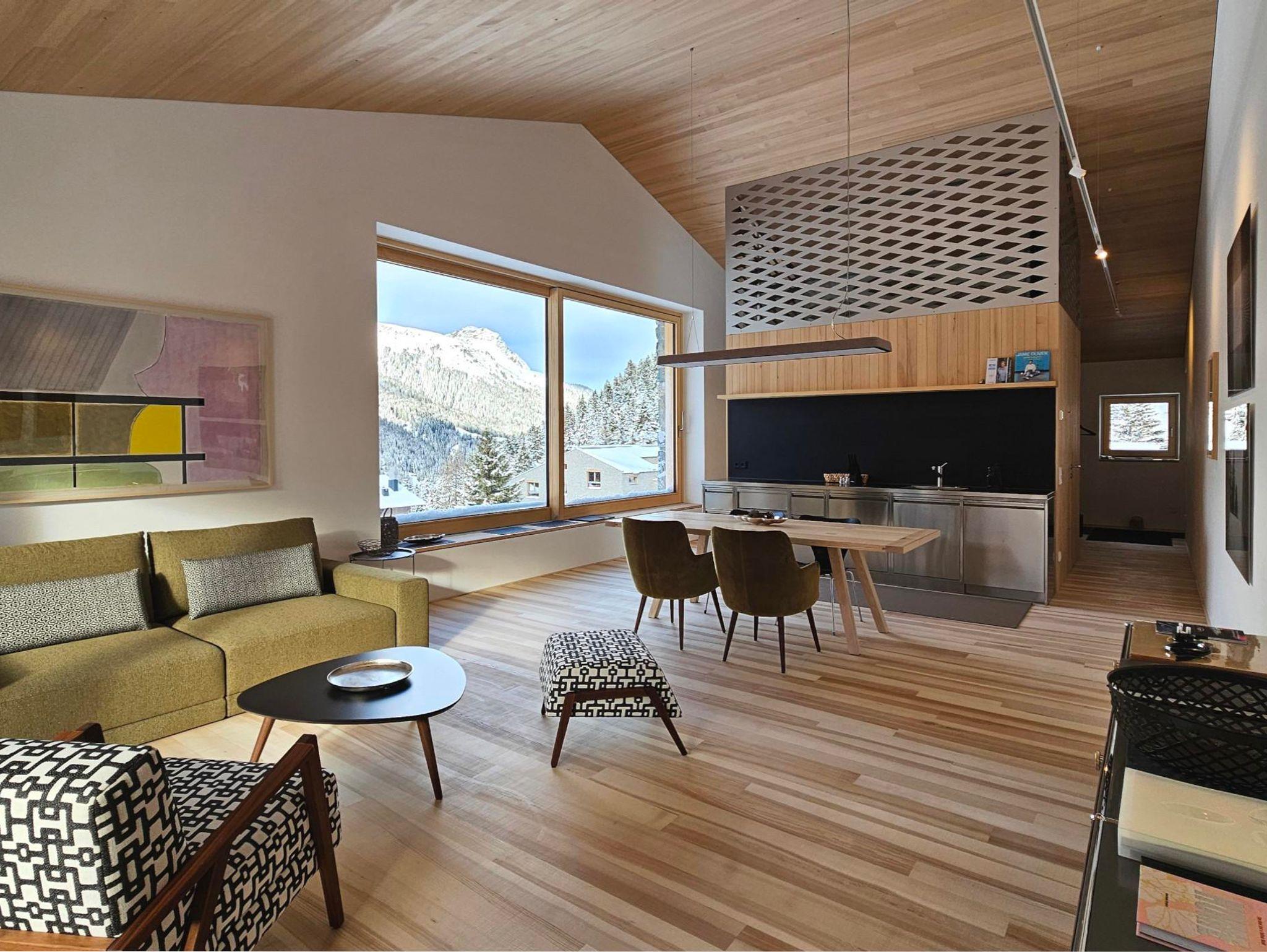 Das Apartment mit außergewöhnlichen räumlichen Qualitäten sowie qualitativ hochwertigen Materialien und Möbeln eignet sich für 2 Erwachsene. Für eine weitere Person ab 10 Jahren kann das Sofa im Wohnraum als Bett genutzt werden. Beinhaltet sind 1 Schlafzimmer, ein offener Wohnraum mit Küche, Badezimmer mit Dusche und WC sowie eine südseitige Loggia. Panoramablick in die Berge und das Skigebiet.