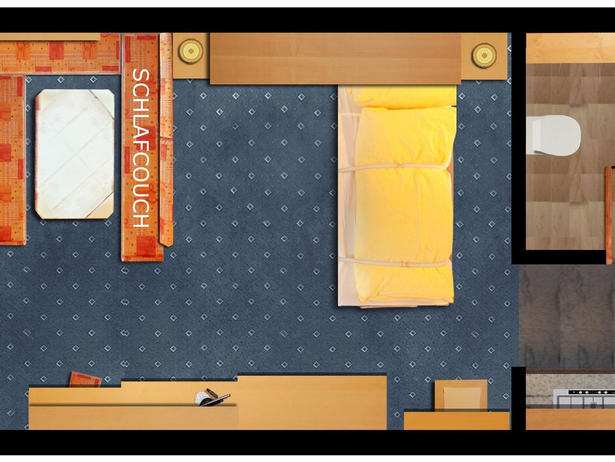 APPARTEMENT FÜR 2 PERSONEN 31 qm Gemütlicher Wohn-/Schlafraum, Bad oder Dusche/WC und Balkon.