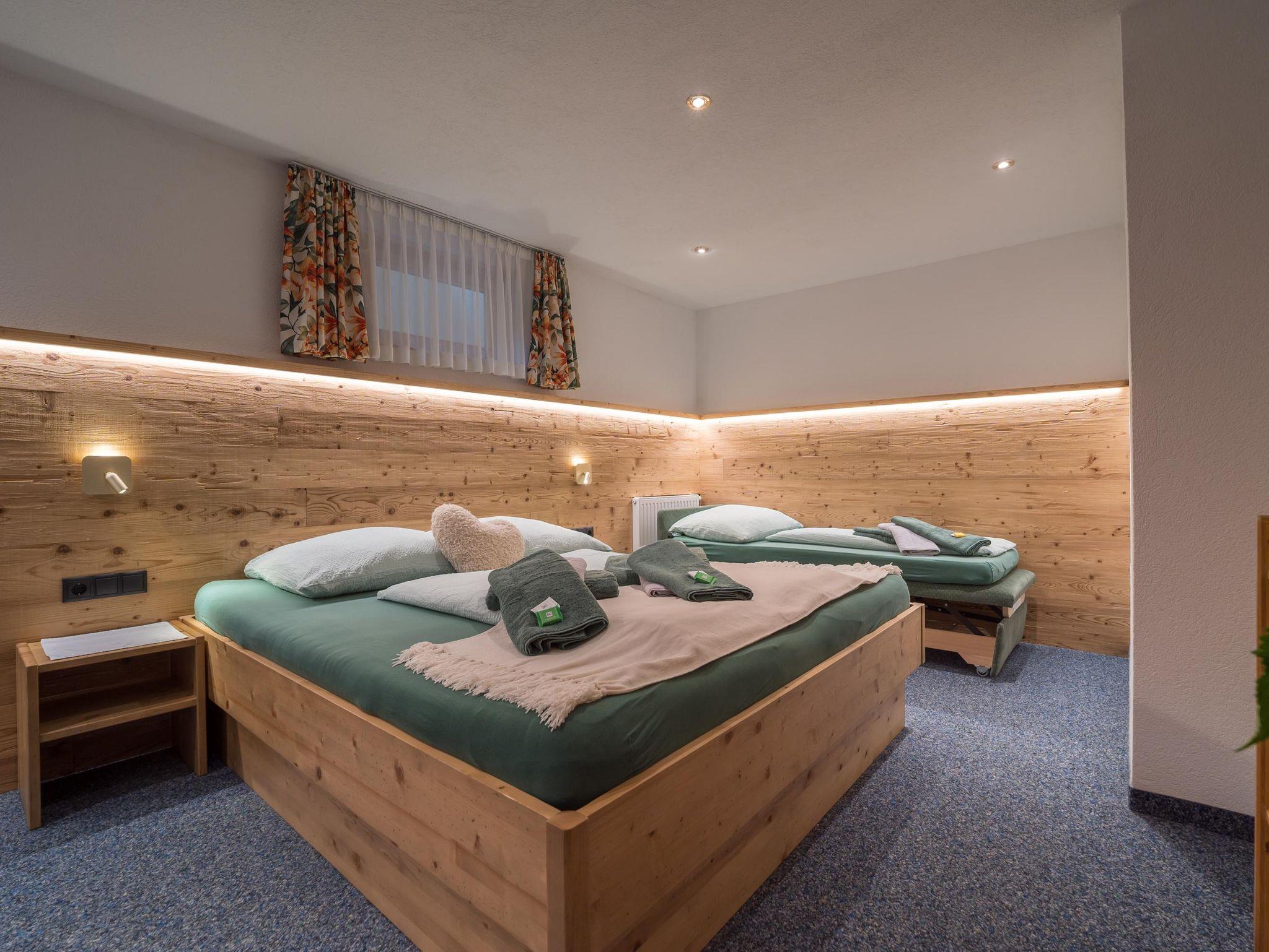Bestehend aus 1 Schlafzimmer, 1 Wohnschlafraum mit Einbauküche, 2 Zusatzbetten, 1 Dusche und 1 WC.