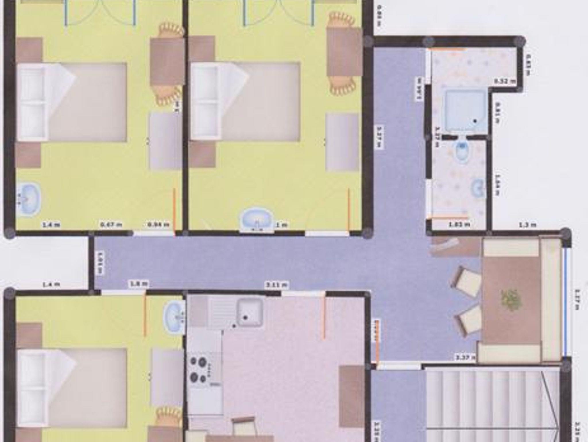 Gemütliche und top ausgestattetes Appartement mit komplett ausgestatteter Küche mit Essbereich, drei Doppelzimmer mit jeweils eigenem Waschbereich und TV, WC und Dusche in getrennten Räumen, Aufenthaltsraum mit Couch und TV, WLAN im ganzen Haus, 14 m² Balkon. In allen Zimmern sind Holzböden verlegt.