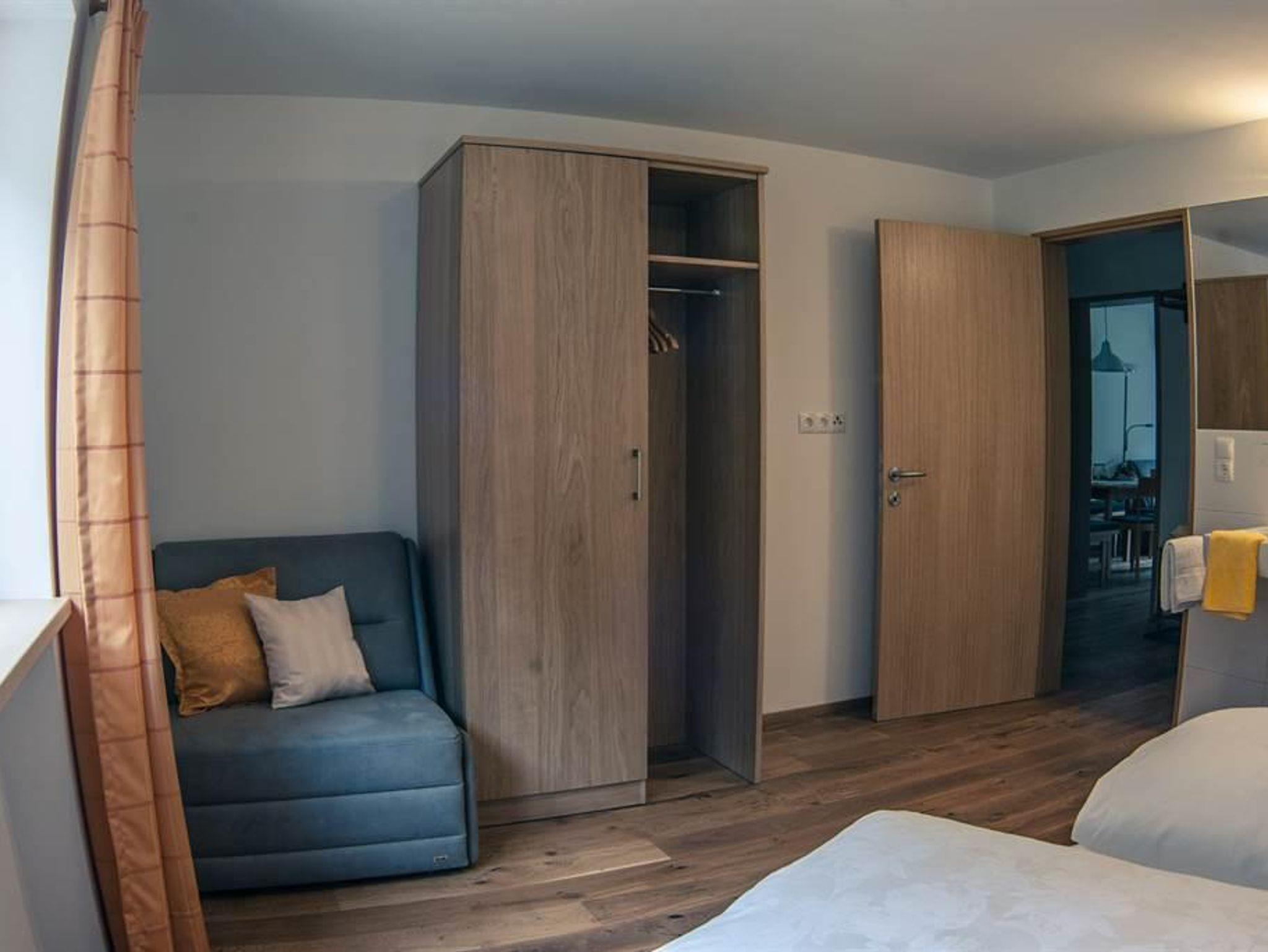 60 Quadratmeter-Ferienwohnung geeignet für 4-6 Personen mit zwei Schlafzimmern, Wohnküche, Badezimmer und separatem WC. Beide Schlafzimmer sind mit Doppelbett und Zusatzbett ausgestattet. Die Wohnküche verfügt über Geschirrspüler, Backofen, Ceranfeld-Herd, Kühlschrank sowie Ess- und Sitzbereich. Das Bad ist mit Dusche, Handtuchtrockner und Haarföhn ausgestattet. Weiters gibt es TV und Gratis-Wlan.