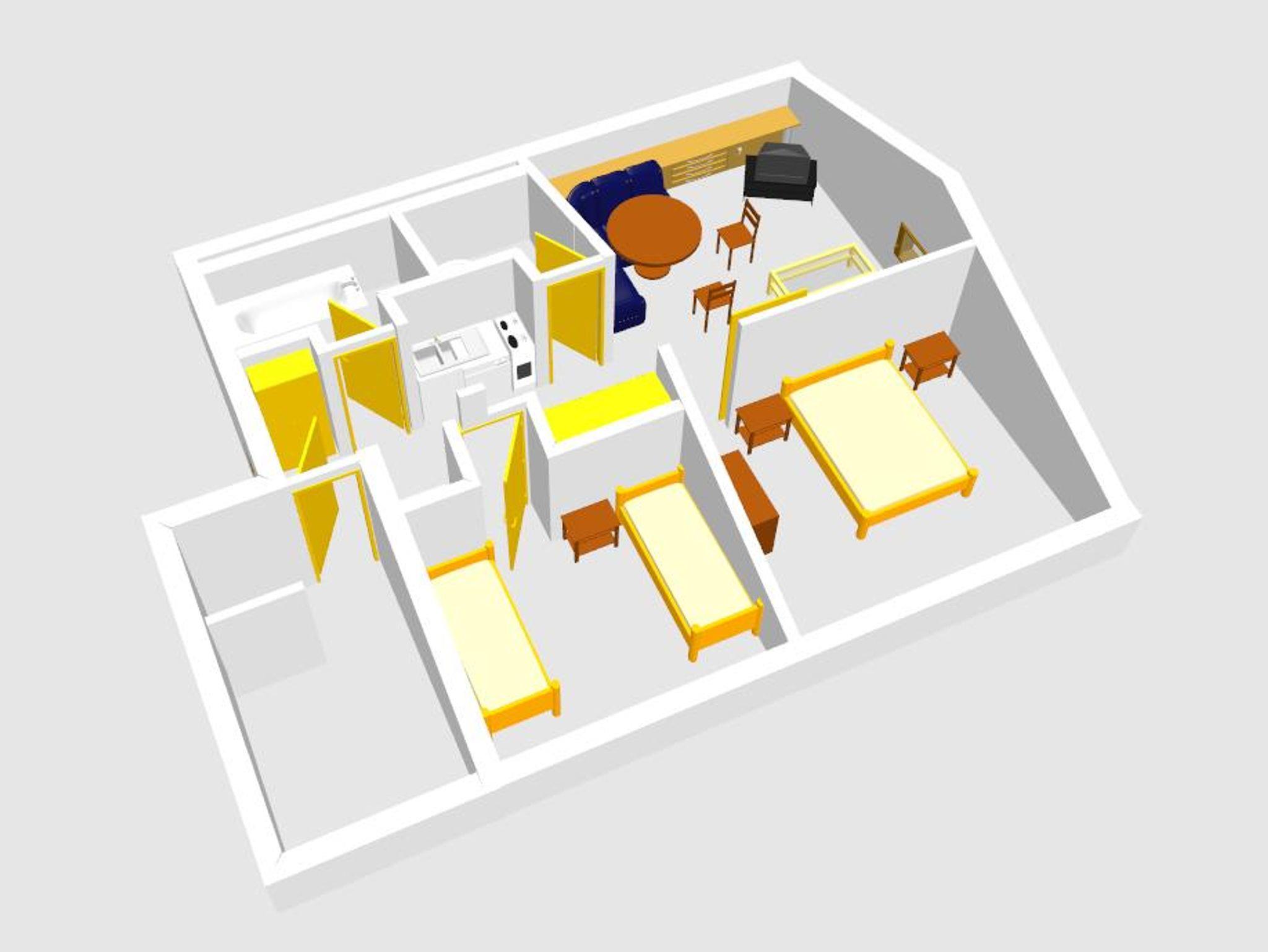 Die Wohnung besteht aus zwei Schlafzimmer mit je einem Doppelbett und einem Zusatzbett,