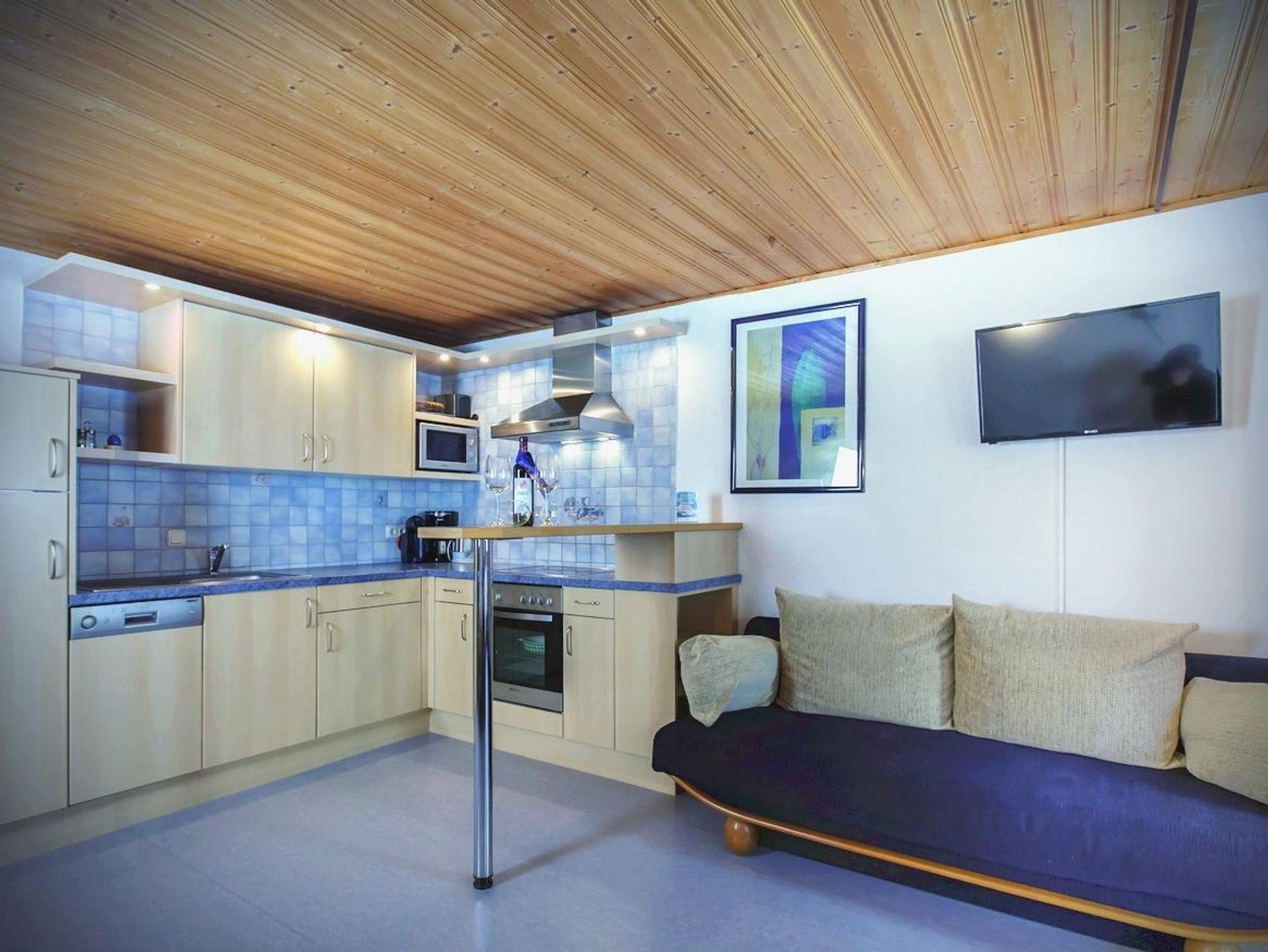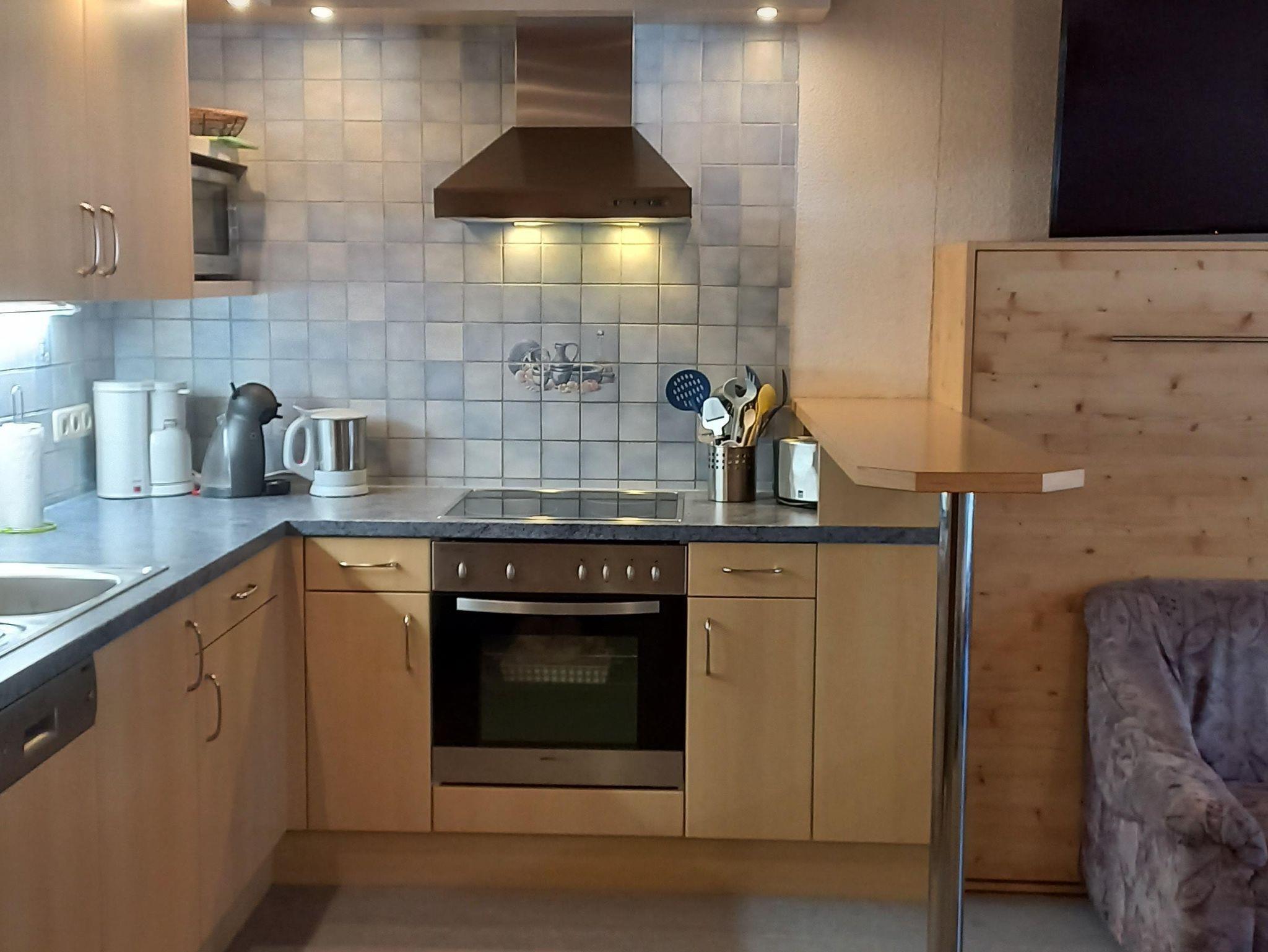 (48m2) 1 Schlafzimmer (DZ) / 1 Wohnschlafraum (2 Betten), Elektroherd mit 4 Platten (Ceran), Backofen, Mikro, Geschirrspüler, Kühl/Gefrierschrank, Kaffeemaschine, Toaster, Mixer, Wasserkocher, KABEL-TV, WIFI-EMPFANG, 1 Dusche / WC, Wohnküche, Süd-Balkon