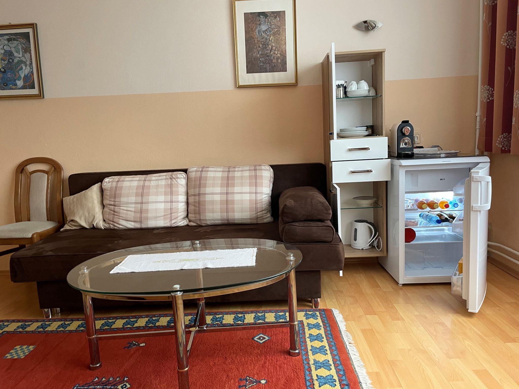 • 1 Zimmer mit 1 Doppelbett und 1 Schlafsofa für 1-2 Personen und SAT-TV