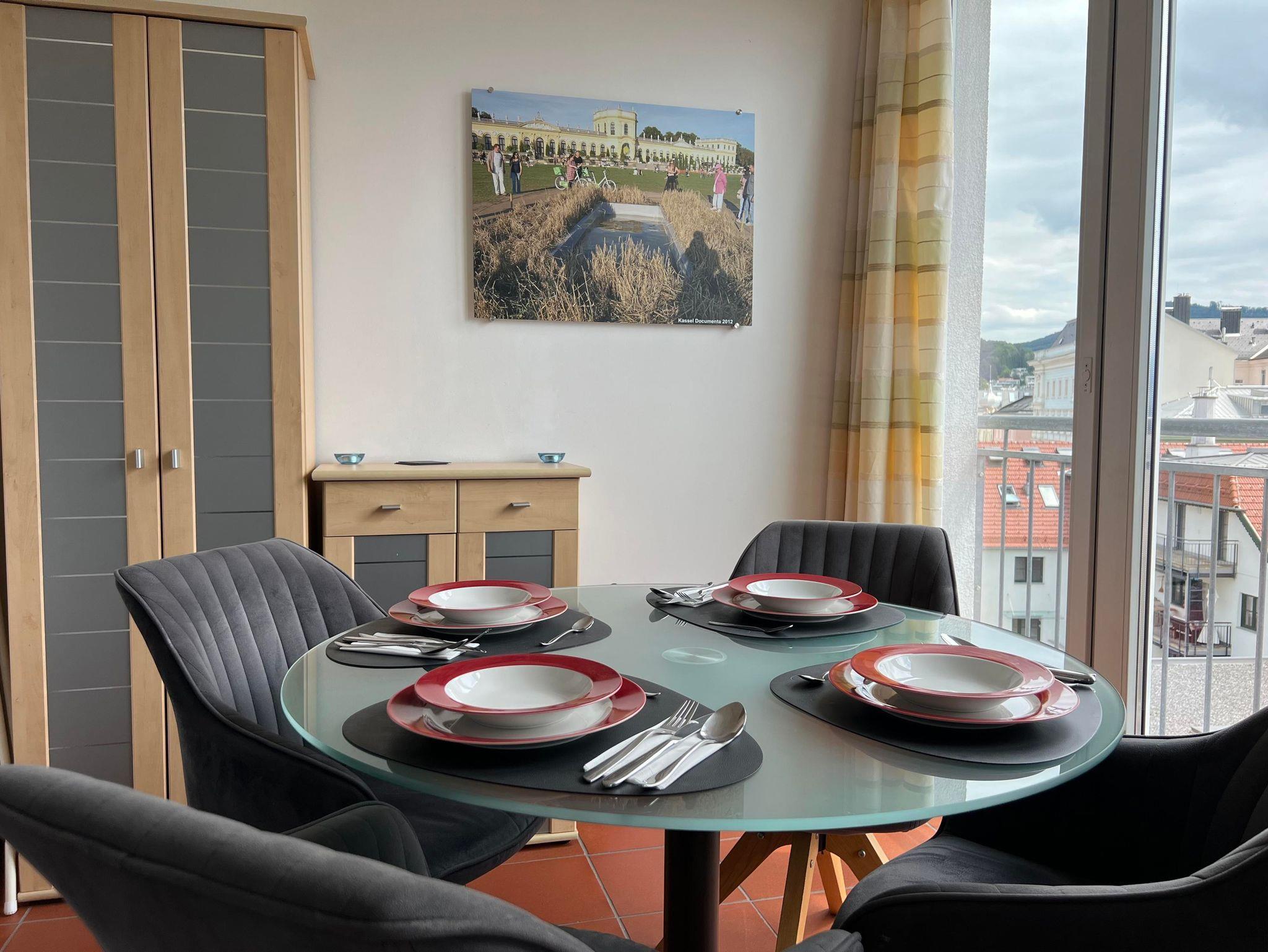 Die komfortable 2-Zimmerwohnung mit Wintergarten, See- und Bergblick liegt im Zentrum von Gmunden (drei Minuten zu Fuß), ist aber tatsächlich sehr ruhig.