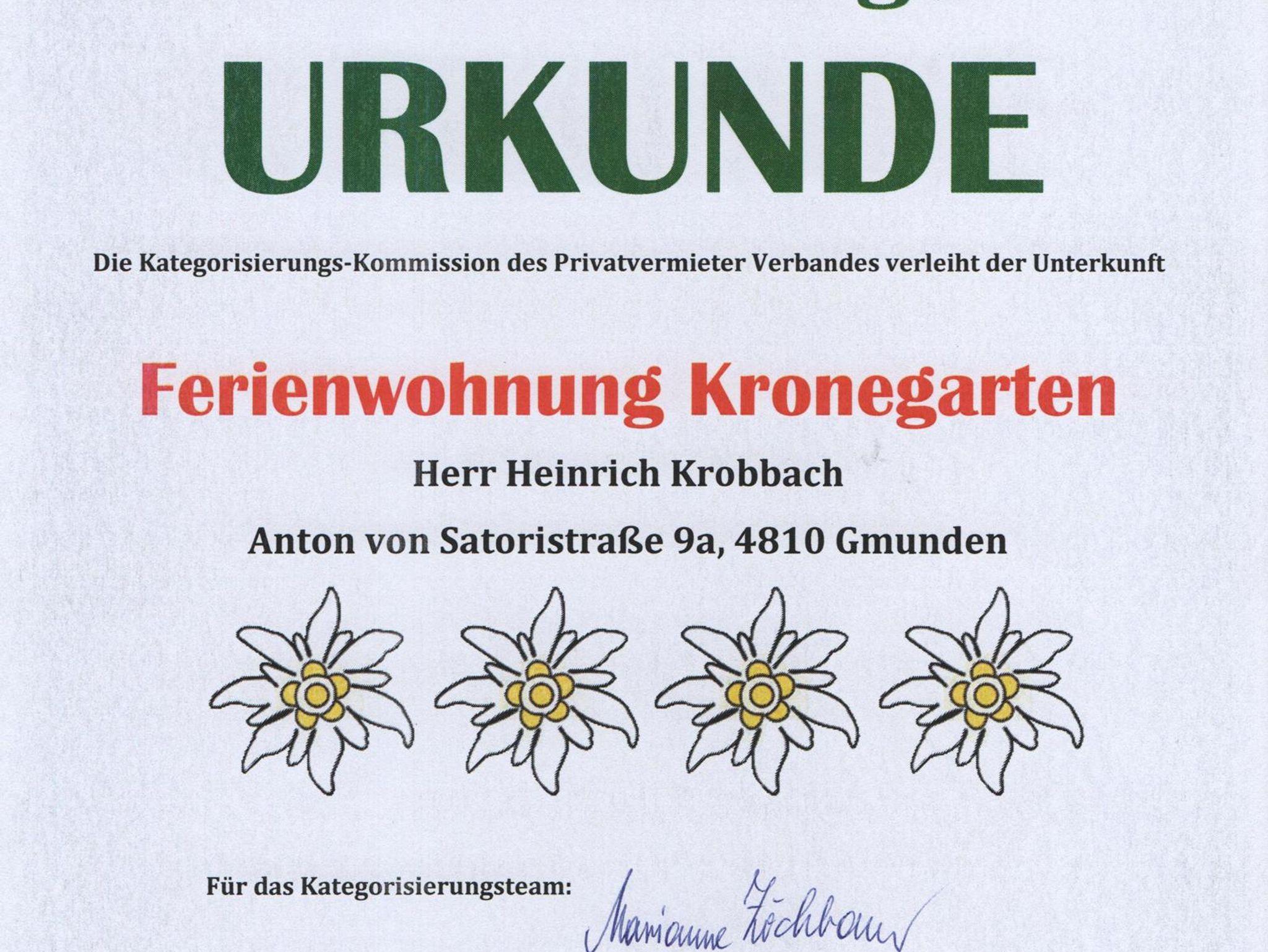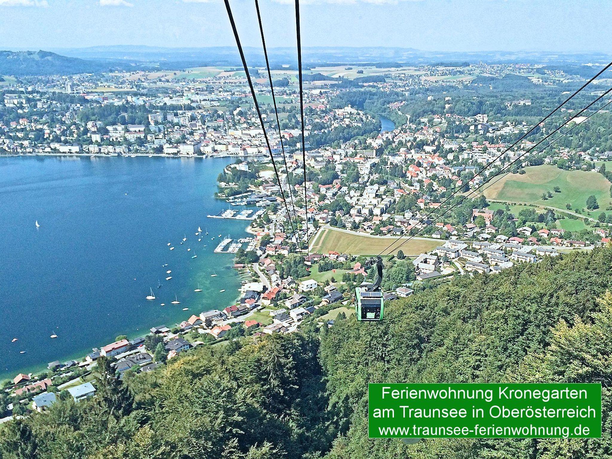 Der Name „Kronegarten“ kommt daher, dass die terrassenförmige Wohnanlage im Garten des ehemaligen Hotels Krone errichtet wurde. Sie befindet sich im Villenviertel von Gmunden, ist tatsächlich sehr ruhig gelegen, aber nur 3 Minuten zu Fuß vom historischen Stadtzentrum entfernt. Auch zur Seepromenade sind es nur 5 Minuten zu laufen. Schon vom Wohnzimmer aus können Sie den Blick auf den Traunsee und den mächtigen Traunstein genießen.