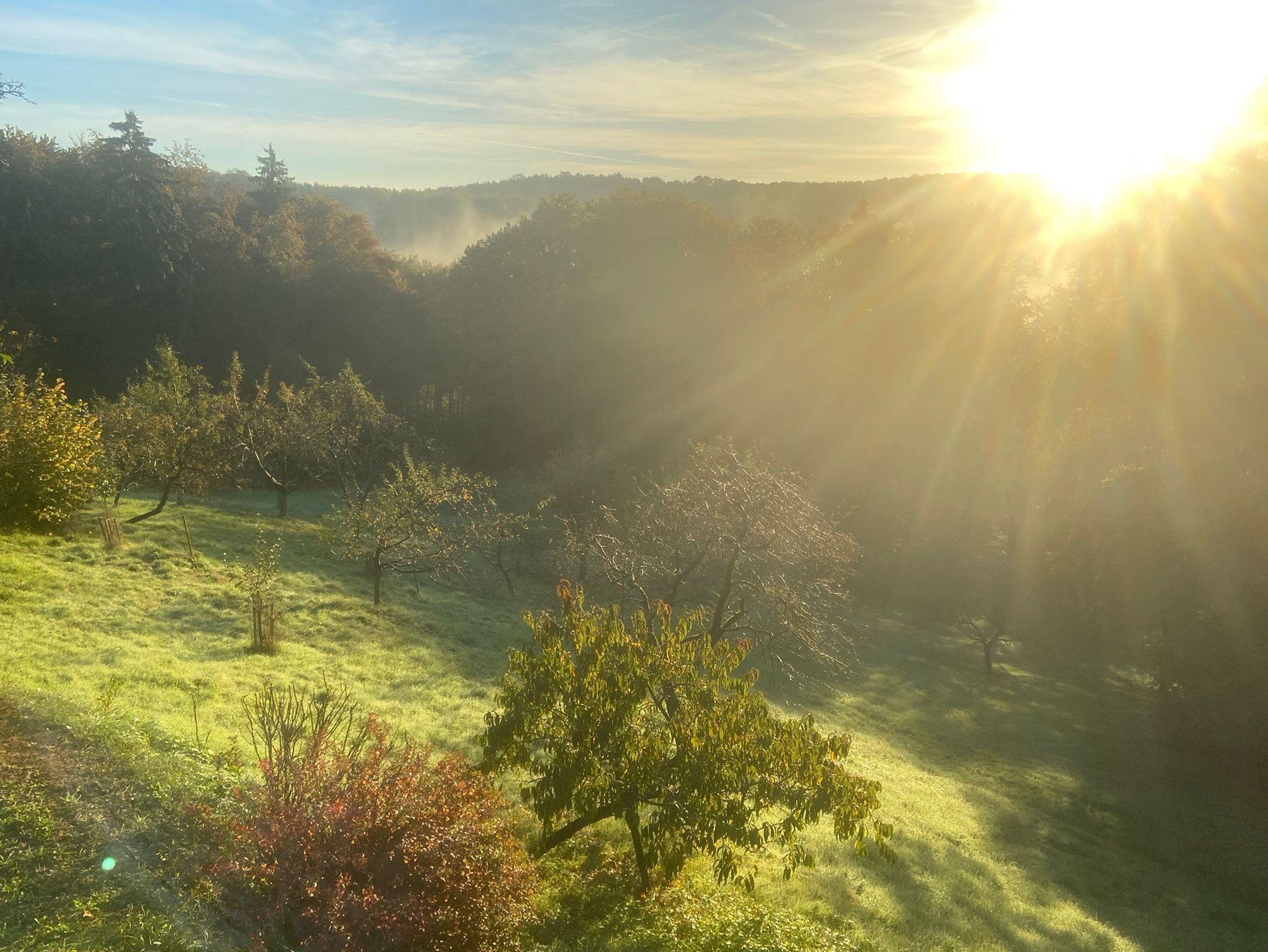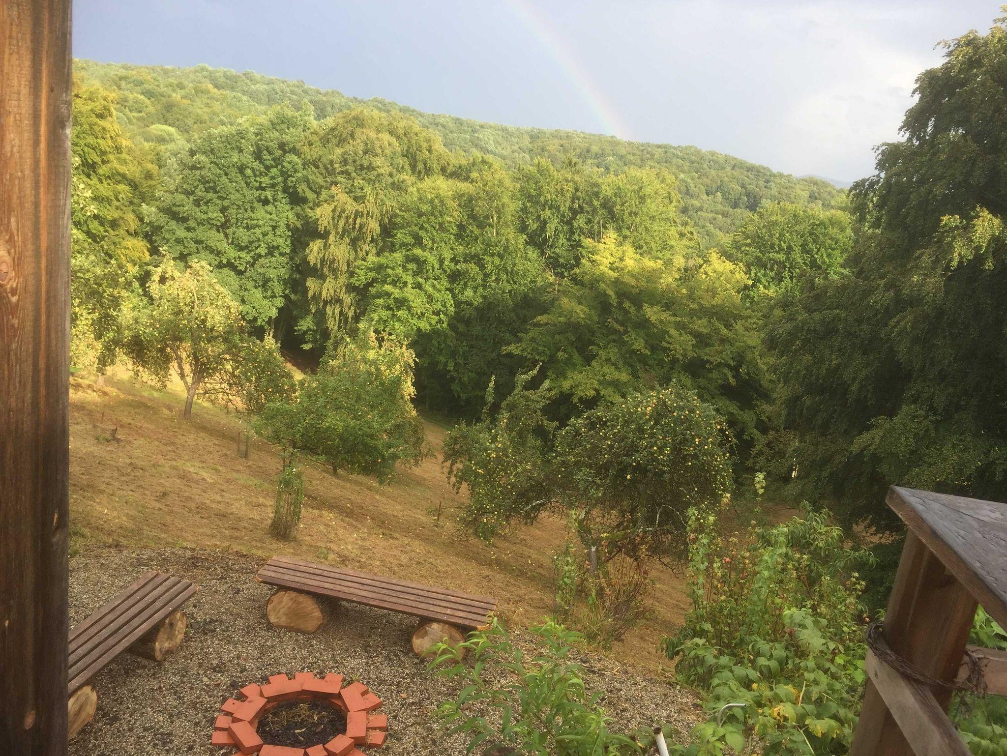 altes renoviertes, typisches Bauernhaus, mit drei Schlafzimmer, sehr ruhige Alleinlage ohne andere Gäste, wunderschöne Aussicht auf Buchenwälder und Naturwiesen, große Terrasse, Lagerfeuerstelle und Hängematte unterm Nussbaum, mit zentralem Holz-Kaminofen selber zu beheizen
