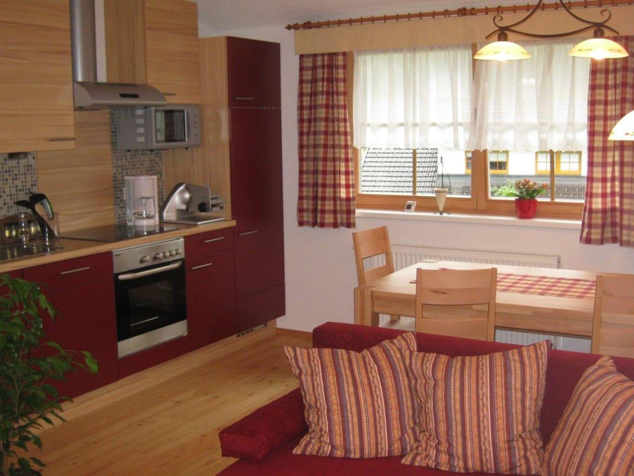 Die Ferienwohnung Morgensonne ist nach Osten ausgerichtet und besteht aus einem Dreibettzimmer mit Balkon, einem weiteren Doppelzimmer mit Zustellbett für kleine Kinder, einer Wohnküche mit Küchenzeile, Esstisch und Couch mit TV, einem WC und einem Duschbad mit Fenster. Kinderausstattung wie Gitterbett, Wickelauflage, Kinderstuhl uvm. ist vorhanden.