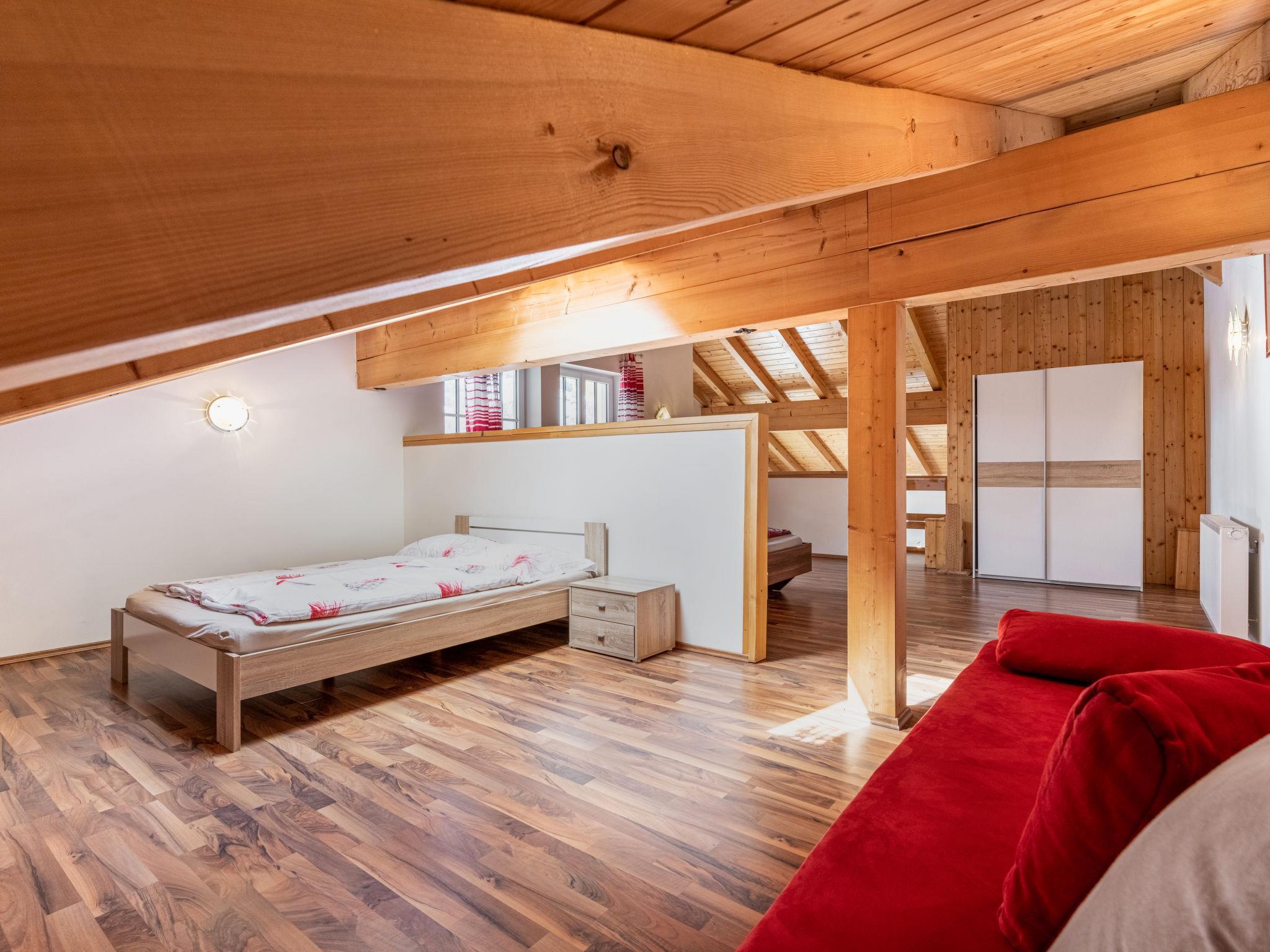 "Rot", 2-room maisonette 70 m2 on 1st floor. Spacious and bright: entrance hall. Living/dining room with dining table and satellite TV (flat screen). Open kitchen (oven, dishwasher, 4 ceramic glass hob hotplates, microwave). Shower/WC. Upper floor: 1 open large room with 1 double sofabed and 2 double beds. Balcony. Balcony furniture. Beautiful panoramic view of the mountains. Facilities: children's high chair, baby cot for up to 3 year olds. Internet (WiFi, free). Please note: non-smokers only. Smoke alarm. 50410-000116-2020