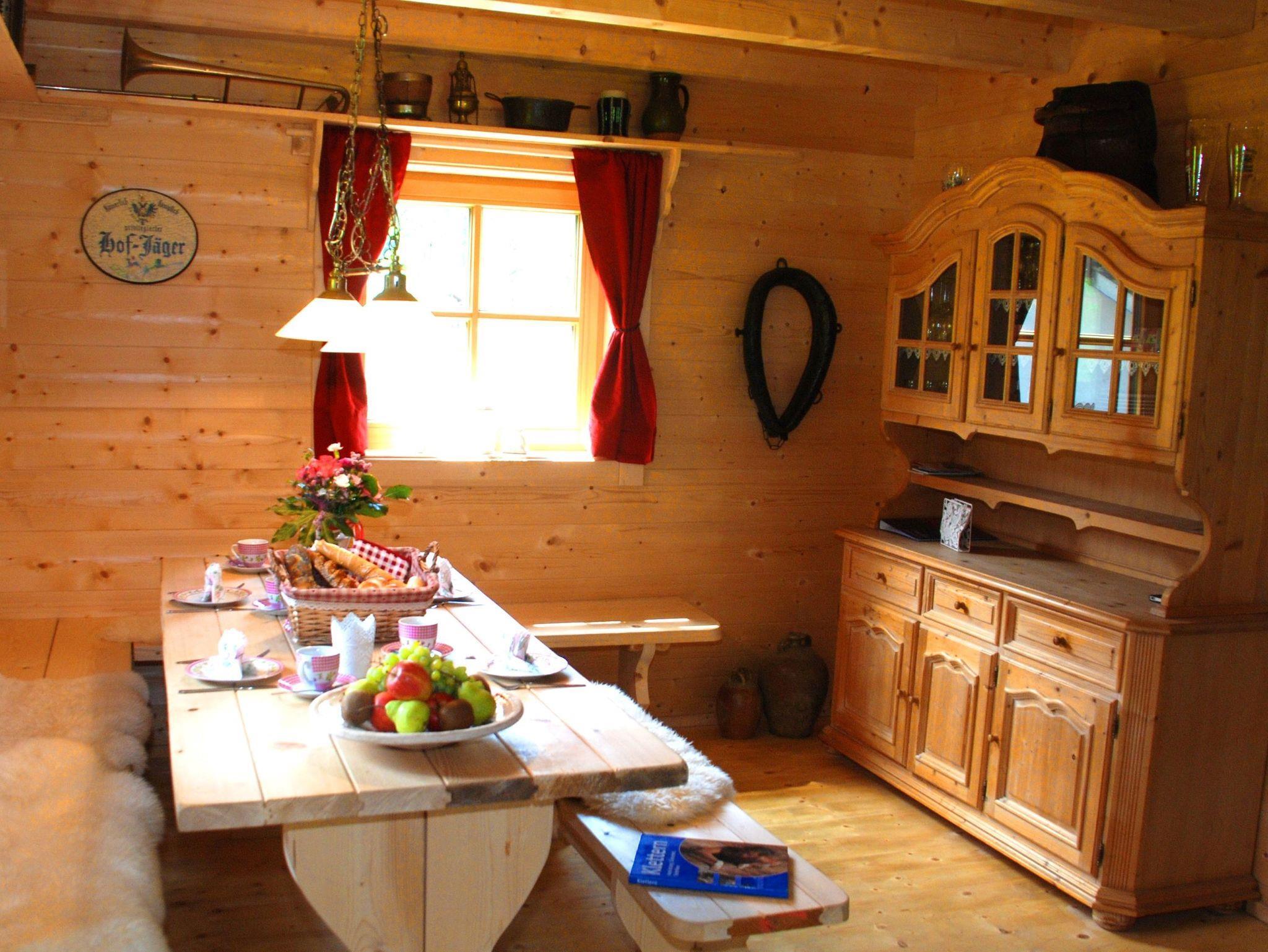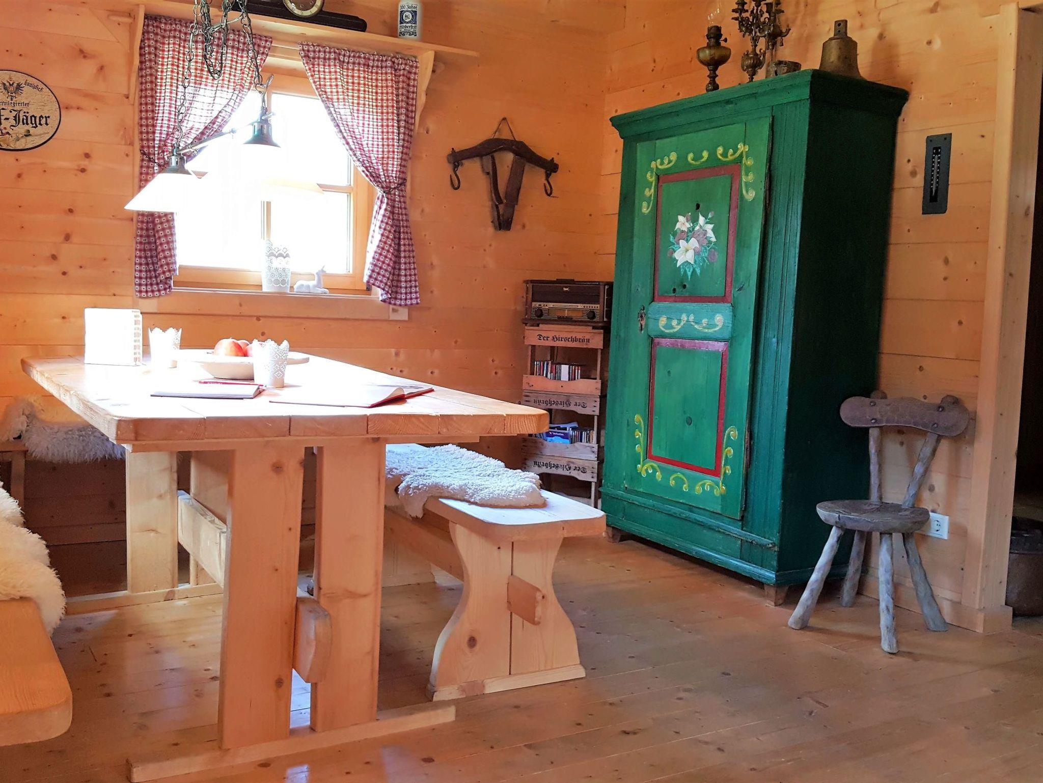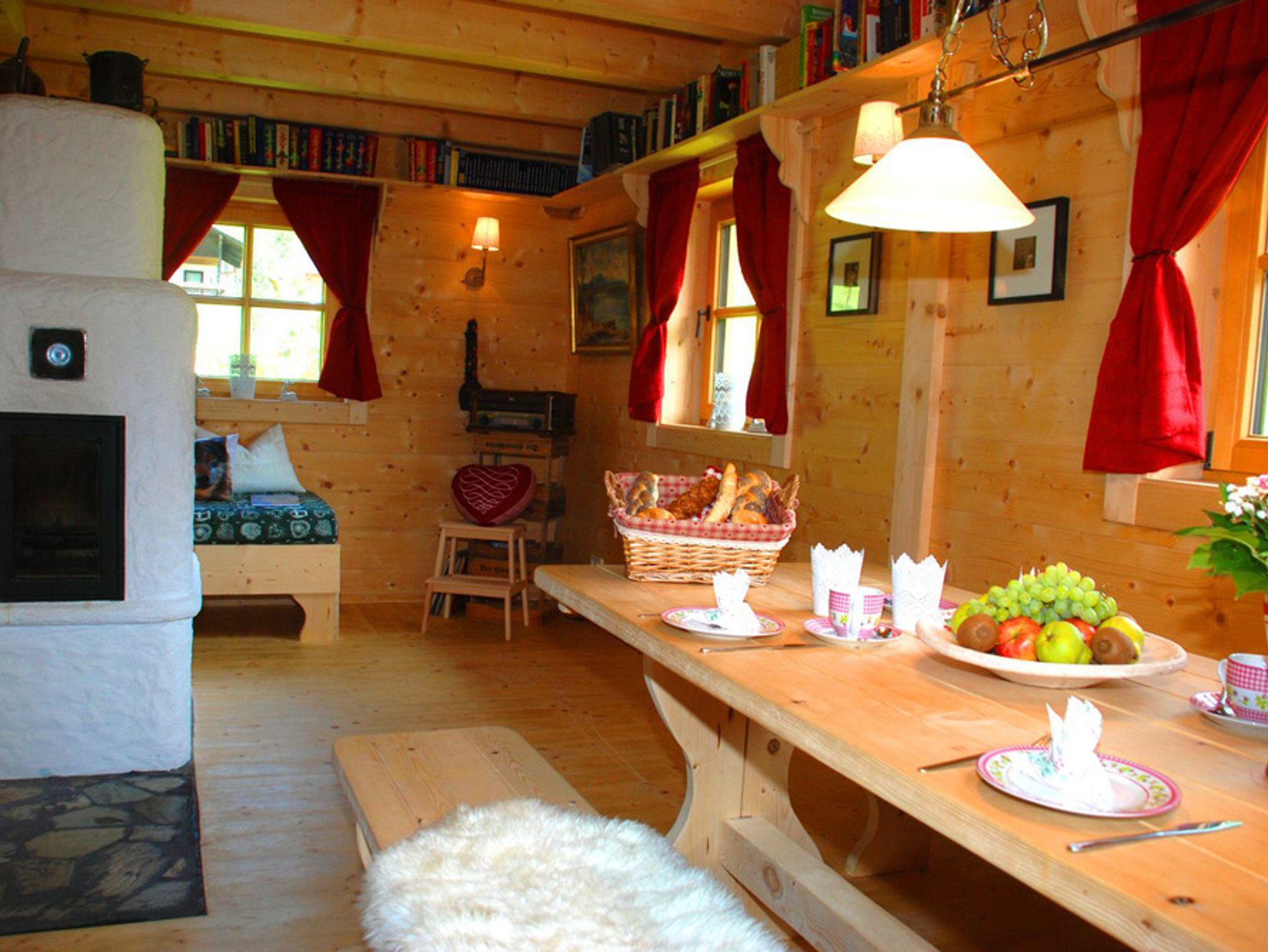 Das Ferienhaus mit traditioneller Holzofen, Holzkamin und alte Bauernmöbel vermittelt ein authentisches Alpenflair, auf moderne Küchentechnik wird trotzdem nicht verzichtet. In der Hütte befinden sich zwei komfortable Badezimmer mit Wellness- Dusche, Badewanne und Sauna, die keine Wünsche offenlassen. Drei Schlafzimmer mit je einem Doppelbett bieten genügend Raum für bis zu 6 Erwachsenen und einem Kleinkind (unter 2 Jahre im Zustellbettchen). Die Küche ist ausgestattet mit einem urigen Holzofen mit Backrohr jedoch auch ein elektrokochherd und Ofen, Kaffeemaschine, Toaster, Heißwasserkocher, Spülmaschine und einem Retrokühlschrank.