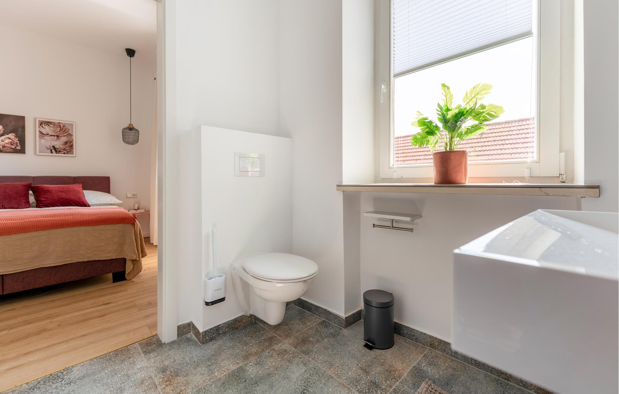 Velkommen til smagfulde lejlighed, der ligger i et charmerende hus med flere ferieboliger i en idyllisk landsby lige ved Donau. Lejligheden er nydeligt indrettet med komfortable møbler og kærlige detaljer i udsmykningen, der gør det nemt at slappe og lade skuldrene falde med det samme, I ankommer. Smæk fødderne op i sofaen efter en dag på farten og hvil benene med et godt glas vin, mens I lægger planer for den kommende dag.