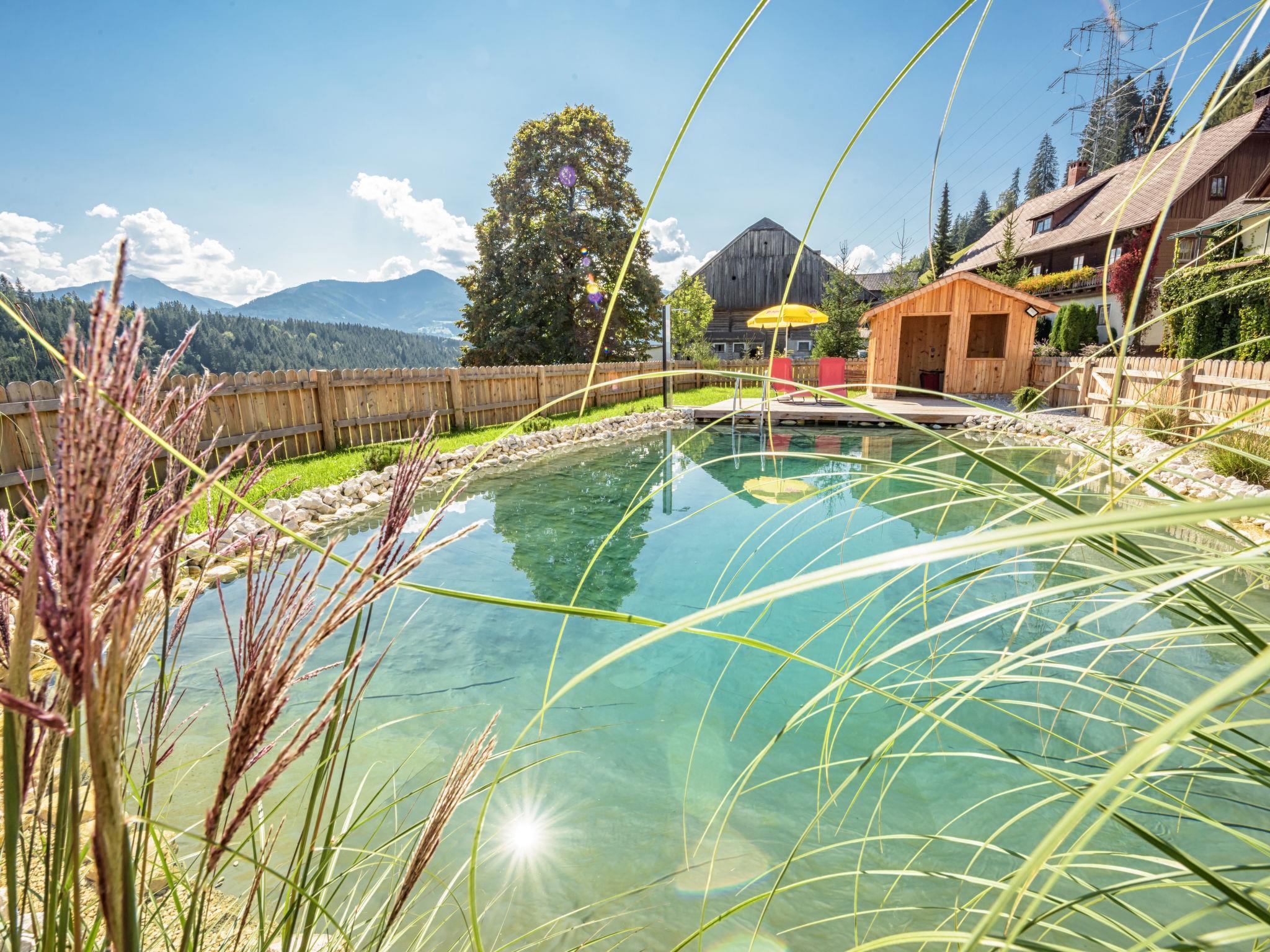Very beautiful, cosy, comfortable timber house 800 m a.s.l., surrounded by trees and meadows. 2 houses in the residence. In the district of Kranzbach 3 km from the centre of Gröbming, 14 km from the centre of Haus im Ennstal, 22 km from the centre of Schladming, in a sunny position on a slope, 11 km from the lake, 13 km from the skiing area, in the countryside. For shared use: natural state property 30 ha with meadow, courtyard, swimming pool round fenced (10 x 5 m, depth 100 - 280 cm, seasonal availability: 01.Jan. - 31.Dec.). Terrace, garden furniture. In the house: storage room for skis, ski boot dryer. In Winter: please take snow chains. Communal covered parking at the house. Supermarket 3 km, restaurant 3 km, bus stop 200 m, railway station "Stein an der Enns" 5 km, outdoor swimming pool 3 km, bathing lake "Aich" 11 km. Mountain railway 16 km, ski lift 13 km. Well-known ski regions can easily be reached: Hauser Kaibling 14 km. Please note: the owner lives on the same property. Property ref. AT8962.636.1/2 is situated on the same property. The complex has another 1 chalet for rent.