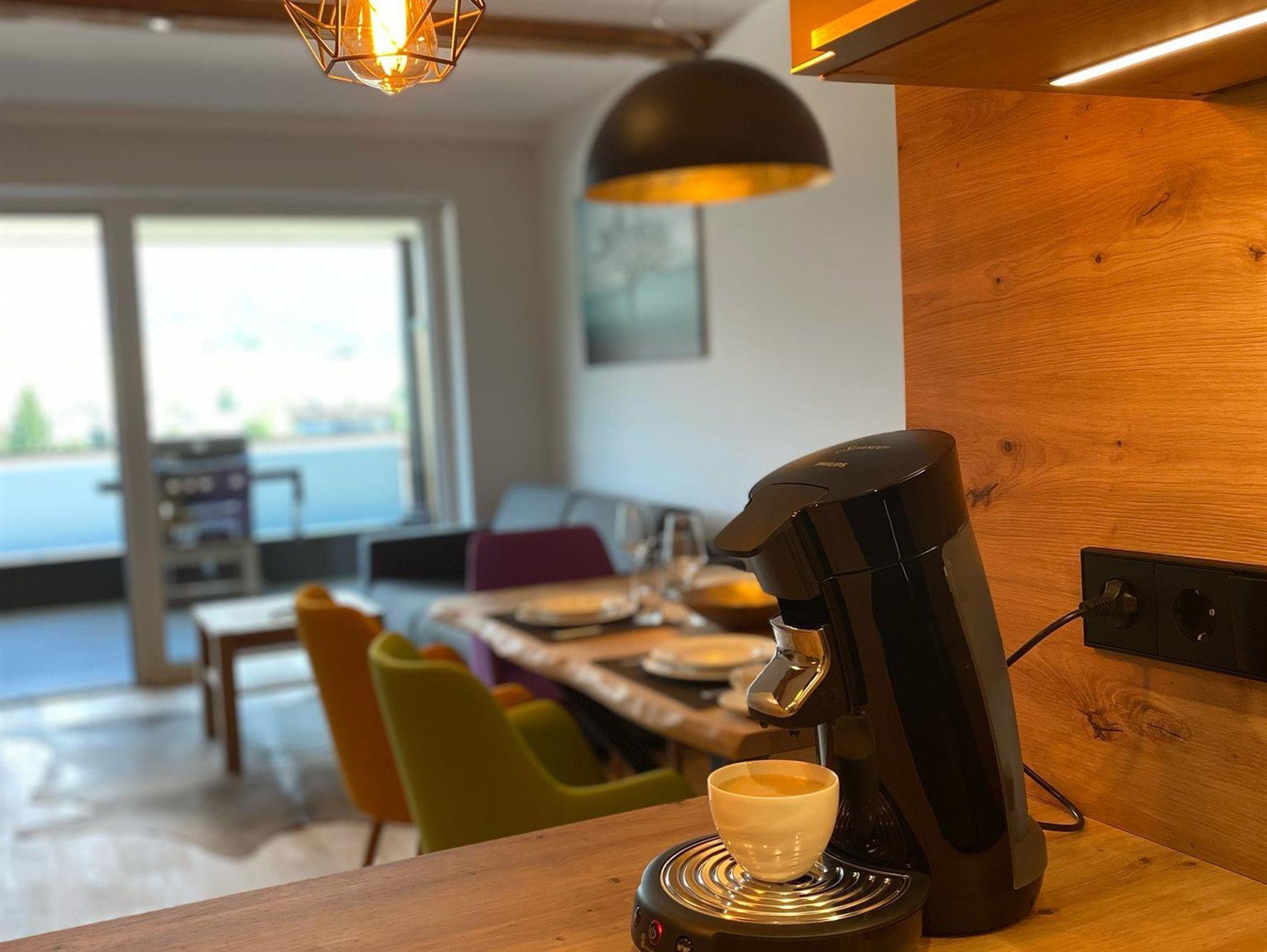 Mit seinem rustikal modernen Charme biete das Apartment eine gemütliche entspannende Atmosphäre. Einen wunderschönen Ausblick auf die Berge haben sie auf der großzügigen Terrasse.
