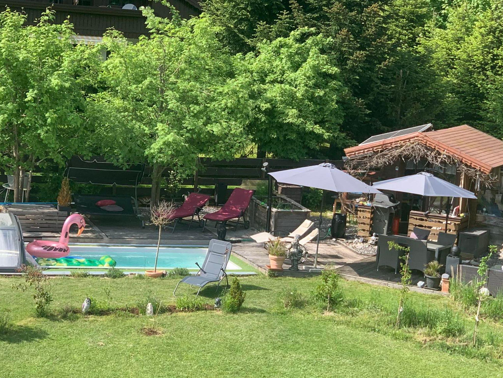 Alle Zimmer beziehungsweise Ferienwohnungen sind rustikal mit viel Holz und in warmen Farben eingerichtet und versprühen ein gemütliches Wohnklima. Fast alle Zimmer bzw. Ferienwohnungen verfügen über einen großen Balkon. Alle Zimmer sind mit Sat-TV und mit W-Lan ausgestattet. Ein großer Garten auf der Nord- und Südseite mit Pool laden Sie zum Entspannen nach einer ausgiebigen Bergtour ein.