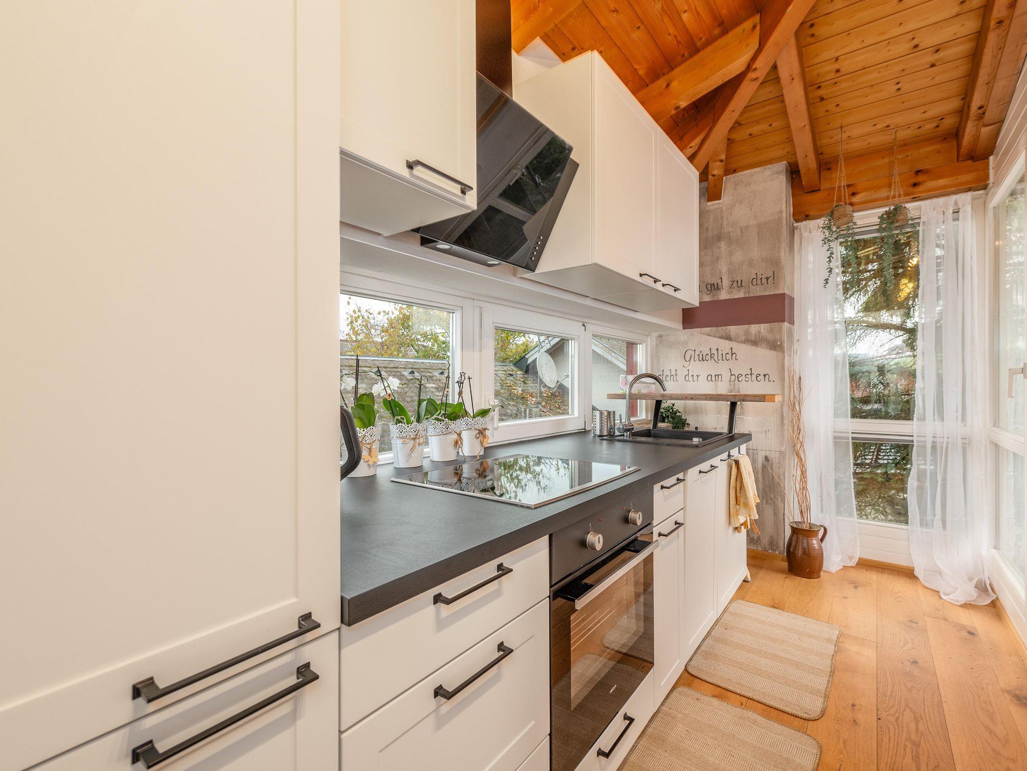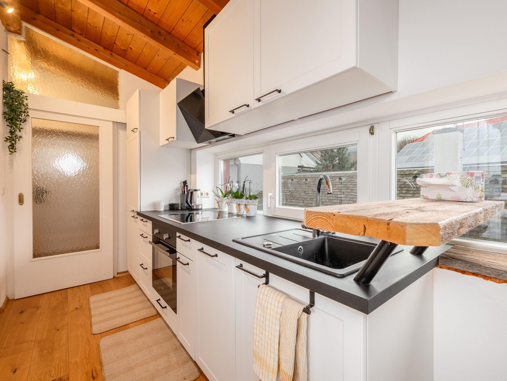• Das Appartement im 1. Stock verfügt über einen sonnigen Balkon mit wunderschönem Ausblick auf die umliegende Bergwelt.