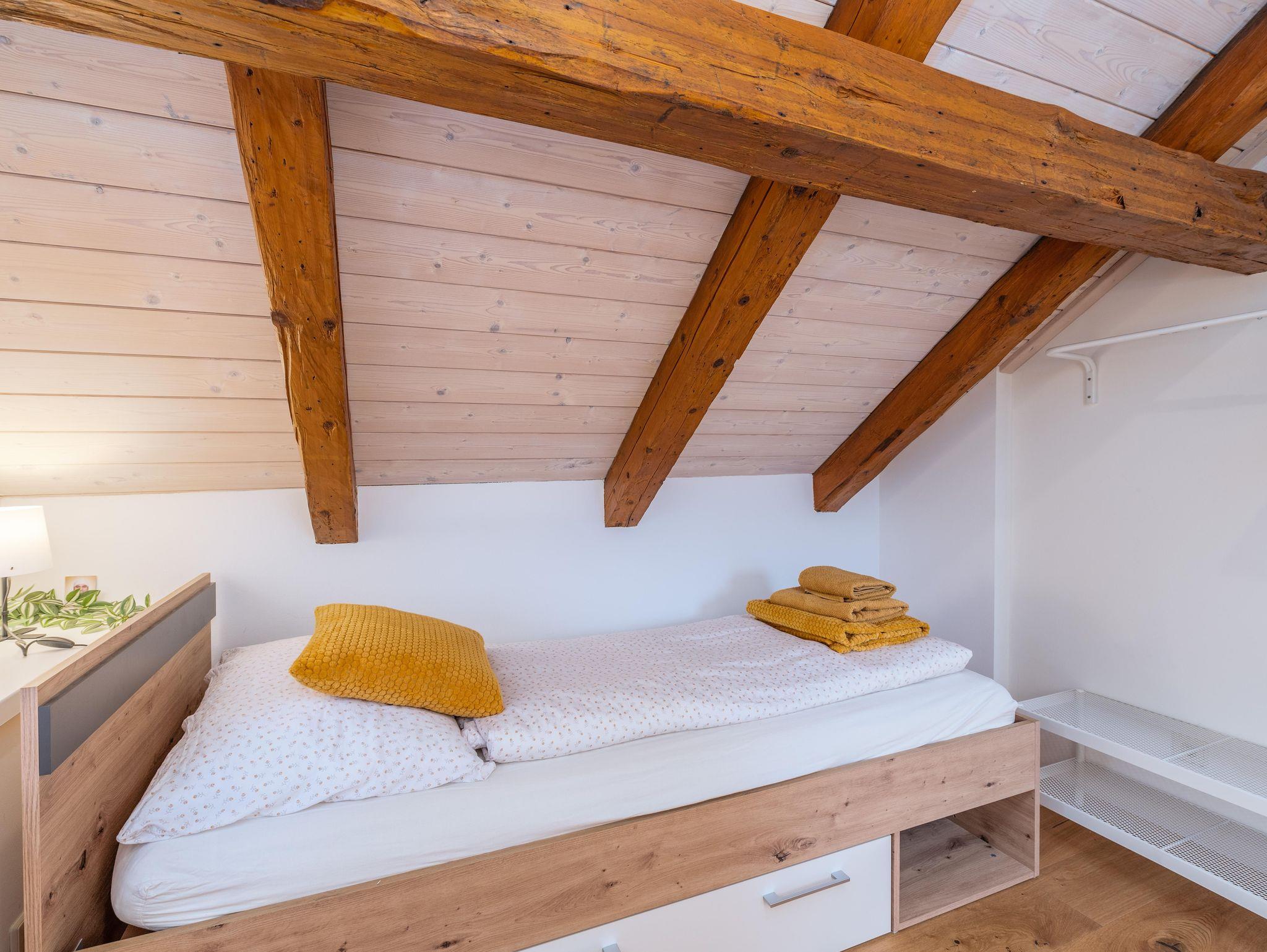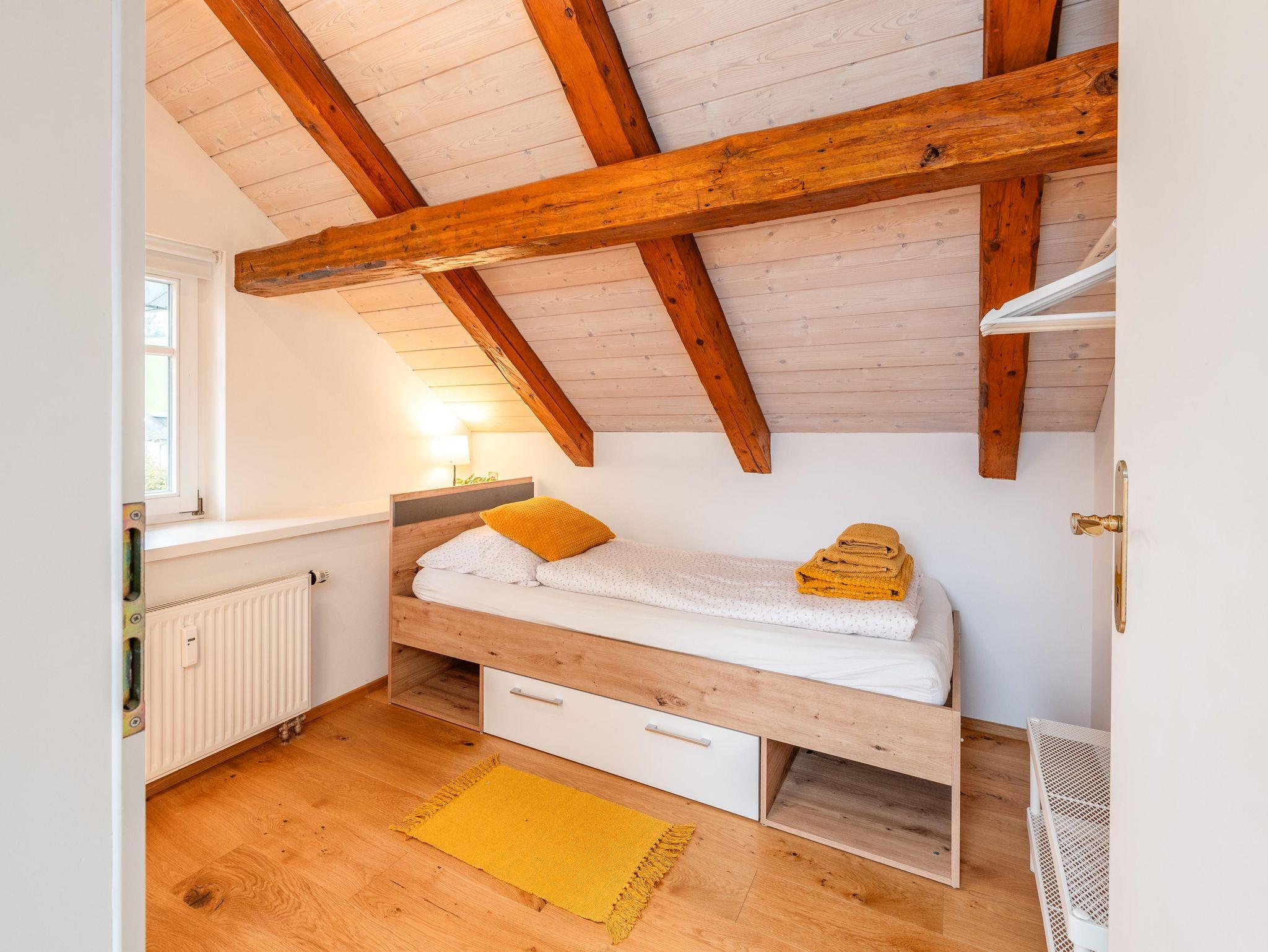 Das Appartement im 1. Stock der Hoamat für’s Herz bietet Platz für bis zu 6 Personen. Es verfügt über zwei separate Schlafzimmer – ein Doppelzimmer und ein Einzelzimmer – sowie über zwei Schlafsofas im großzügigen Wohnbereich. Der sonnige Balkon lädt zum Entspannen ein und bietet einen herrlichen Ausblick auf die umliegende Bergwelt.