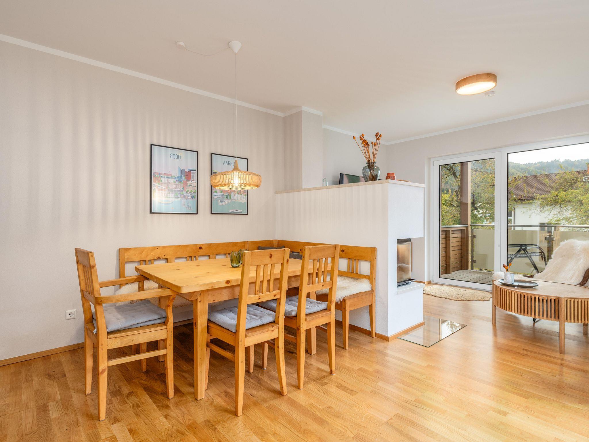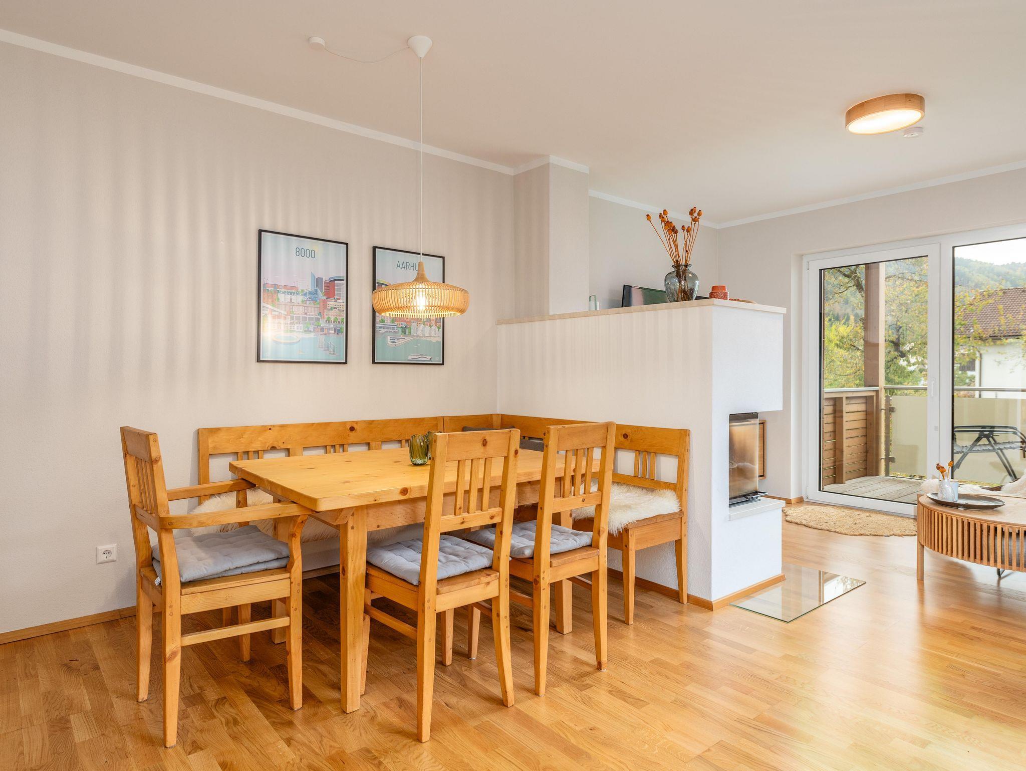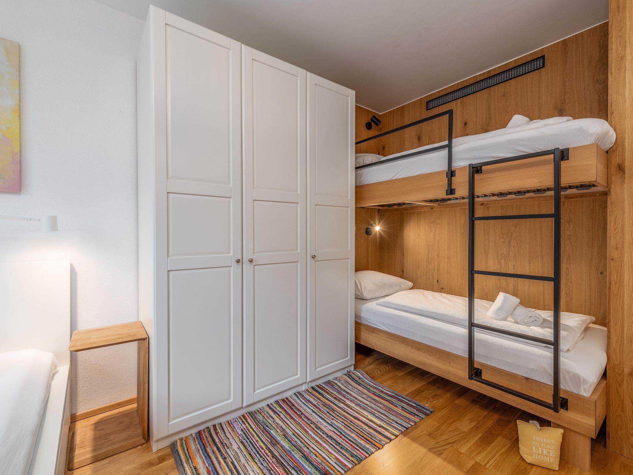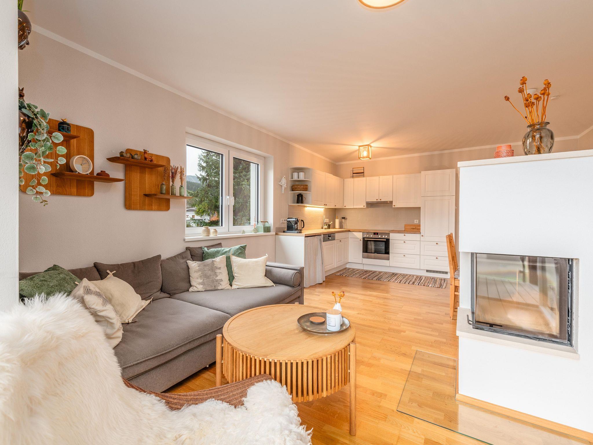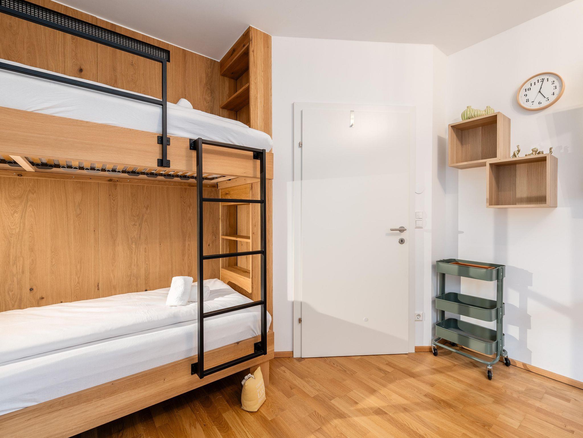 Das voll ausgestattete Apartment mit traumhaftem Ausblick bietet Ihnen mit 2 Schlafzimmern (einmal mit Doppelbett, sowie ein zweites mit Doppelbett und einem Etagenbett) Platz für bis zu 6 Personen. Ein großer, heller Wohnraum mit gemütlicher Couch, Essbereich und Zugang auf die großzügige Terrasse, sowie eine voll ausgestattete Küche bieten Ihnen einen komfortablen Aufenthalt. Das Apartment verfügt außerdem über ein großes Badezimmer mit einer barrierefreien Dusche und einer Badewanne sowie einer separaten Toilette. Für Ihre Sportausrüstung (z.B. Ski) steht Ihnen ein großer Abstellraum zur Verfügung.