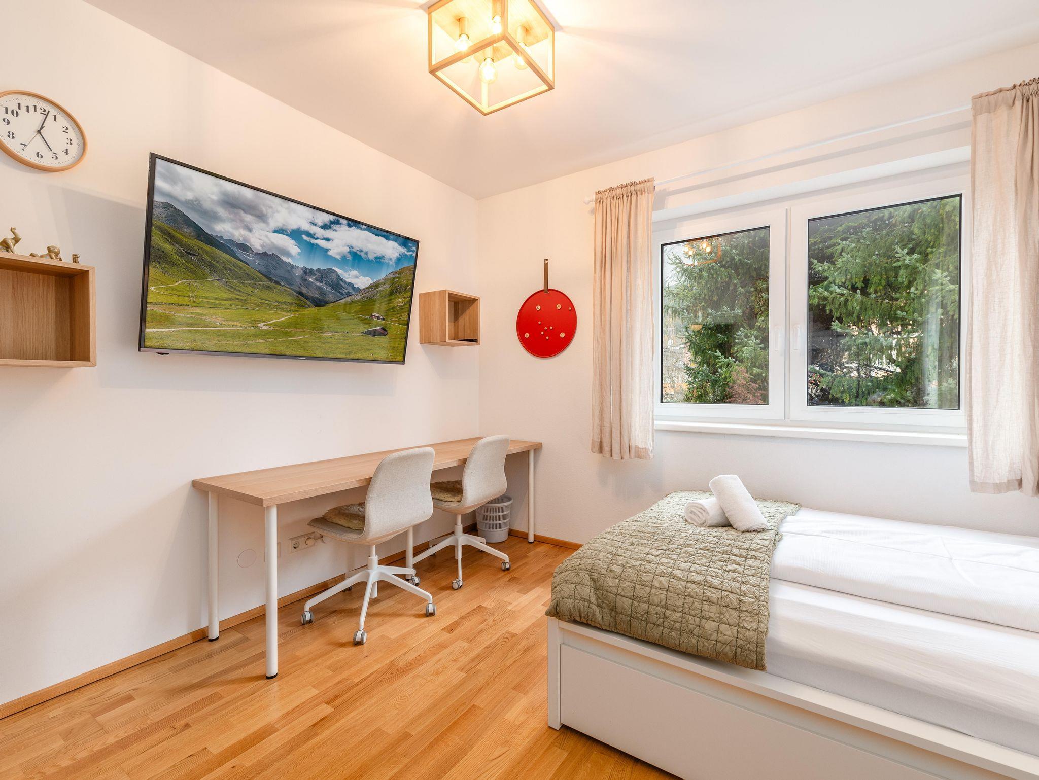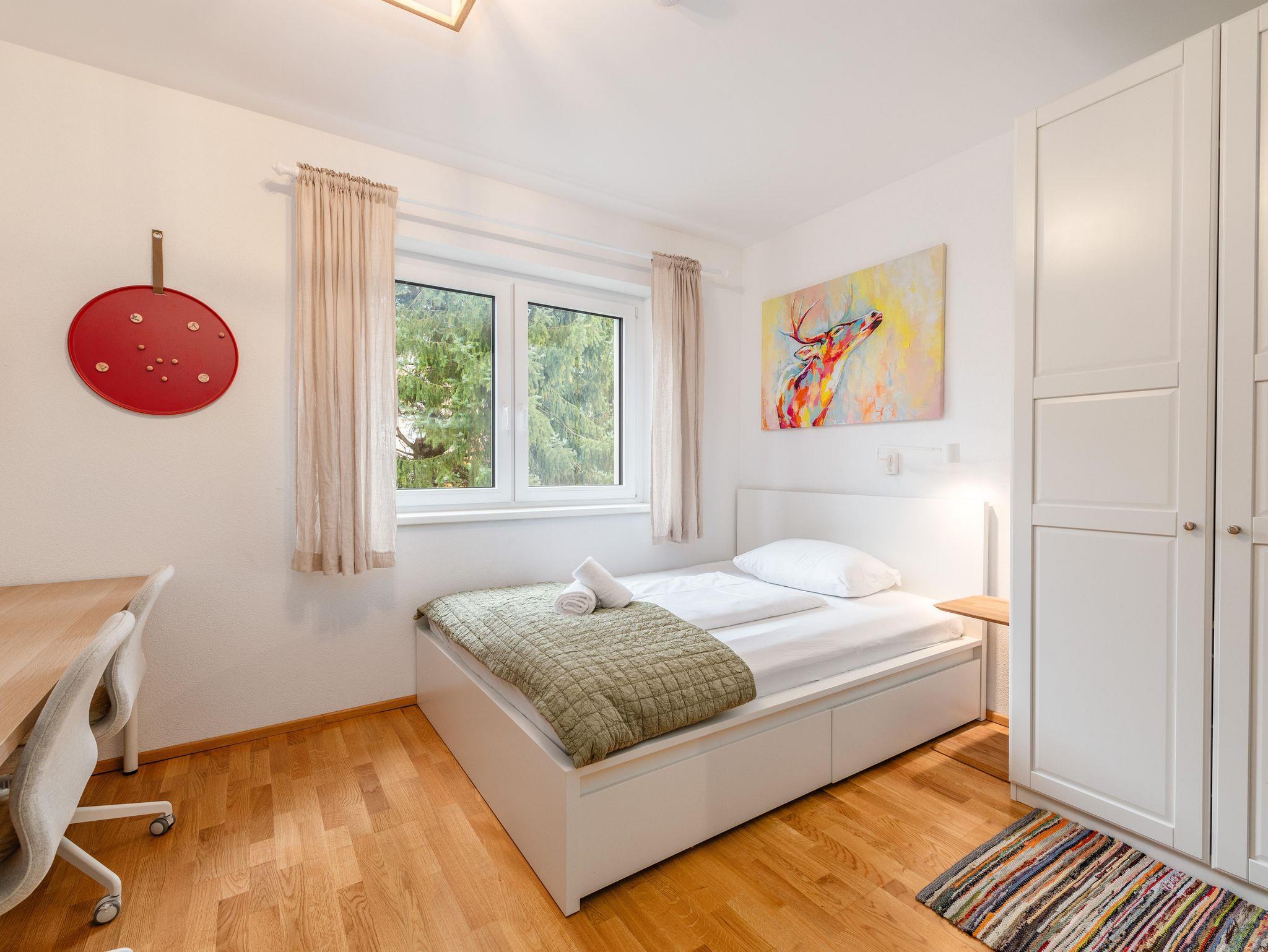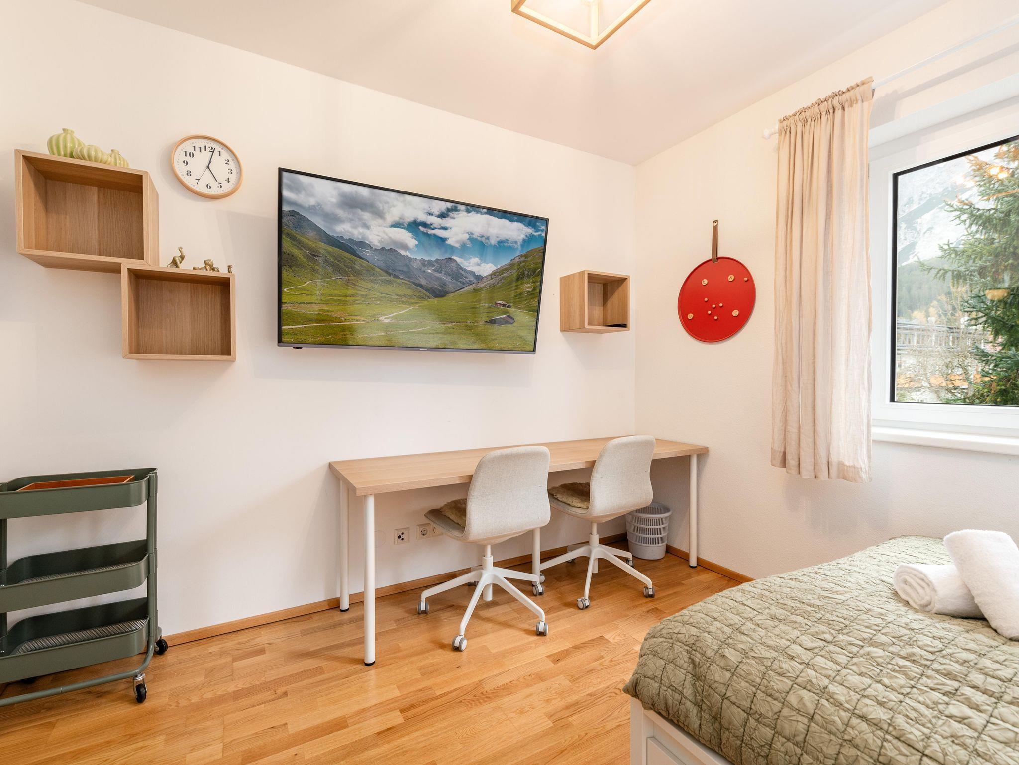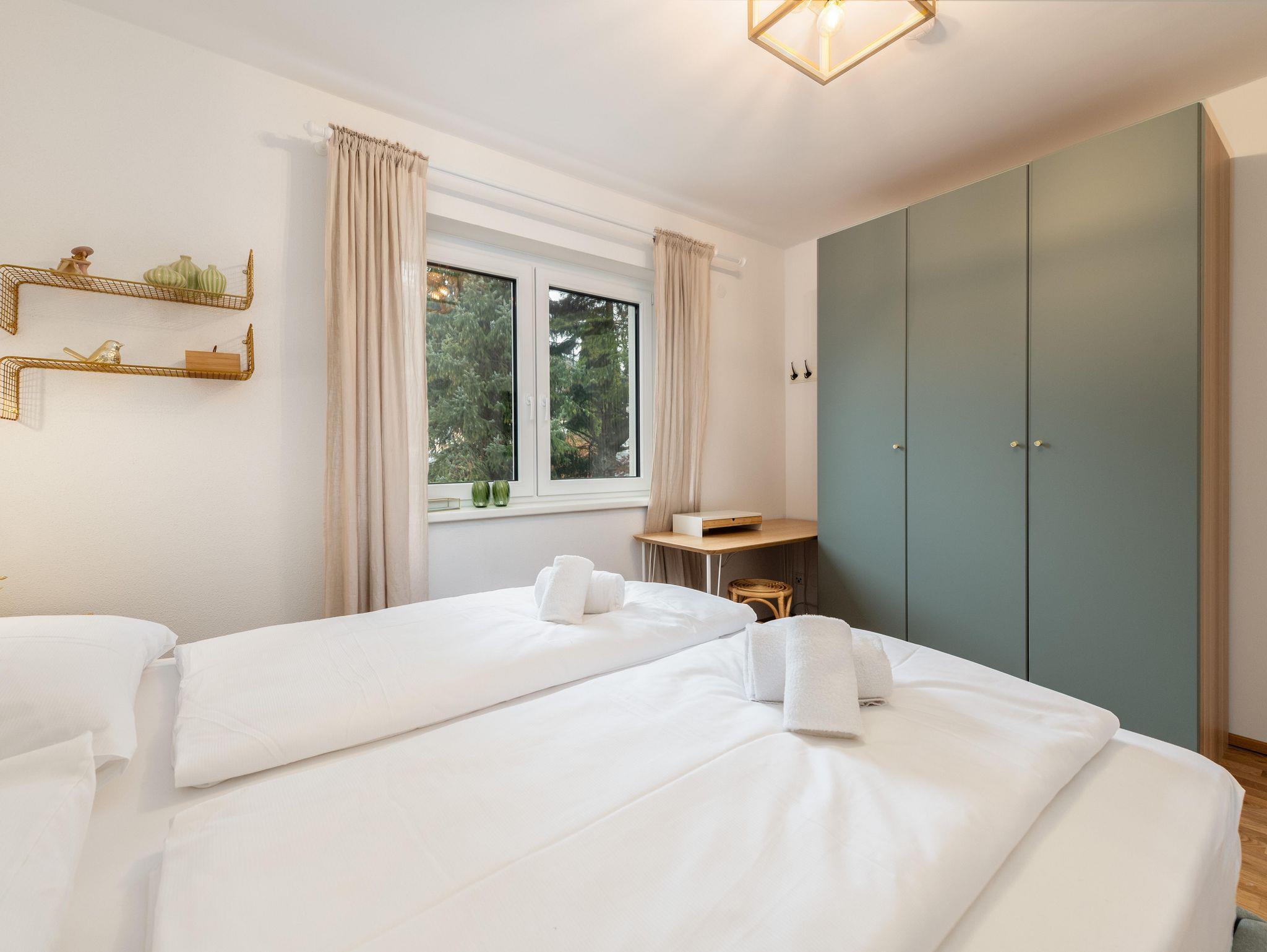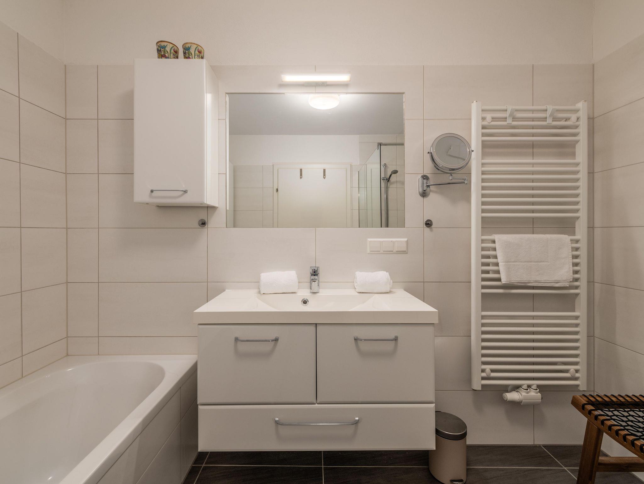 Das voll ausgestattete Apartment mit traumhaftem Ausblick bietet Ihnen mit 2 Schlafzimmern (einmal mit Doppelbett, sowie ein zweites mit Doppelbett und einem Etagenbett) Platz für bis zu 6 Personen. Ein großer, heller Wohnraum mit gemütlicher Couch, Essbereich und Zugang auf die großzügige Terrasse, sowie eine voll ausgestattete Küche bieten Ihnen einen komfortablen Aufenthalt. Das Apartment verfügt außerdem über ein großes Badezimmer mit einer barrierefreien Dusche und einer Badewanne sowie einer separaten Toilette. Für Ihre Sportausrüstung (z.B. Ski) steht Ihnen ein großer Abstellraum zur Verfügung.