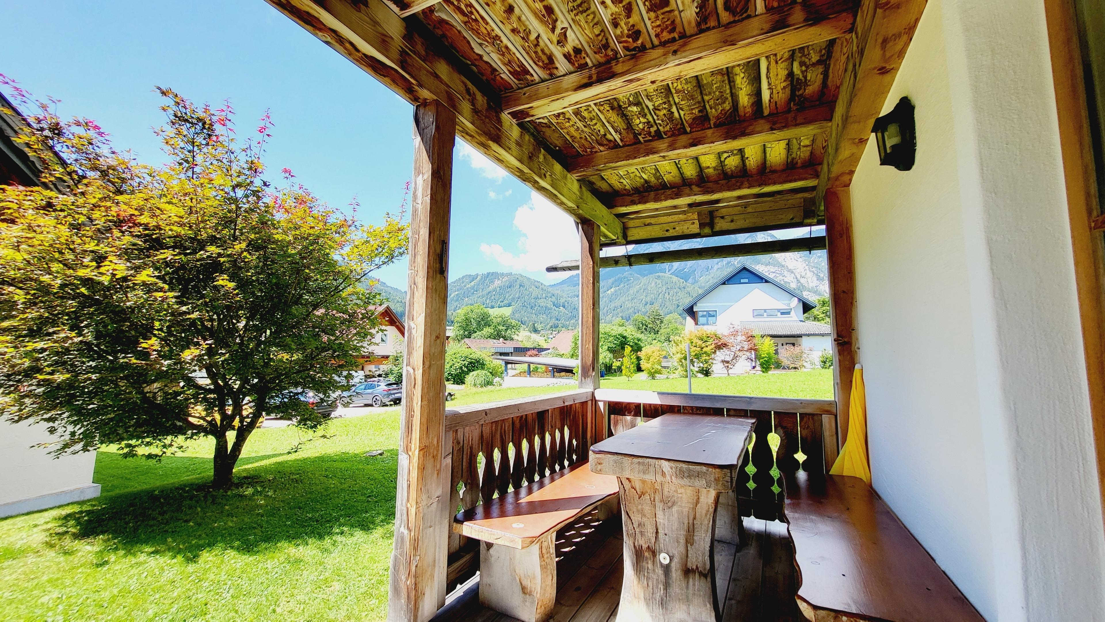 From the covered terrace or the sheltered balcony, you have a magnificent view of the surrounding mountain peaks. A beautiful garden and children's playground offer entertainment for all ages in the summer.