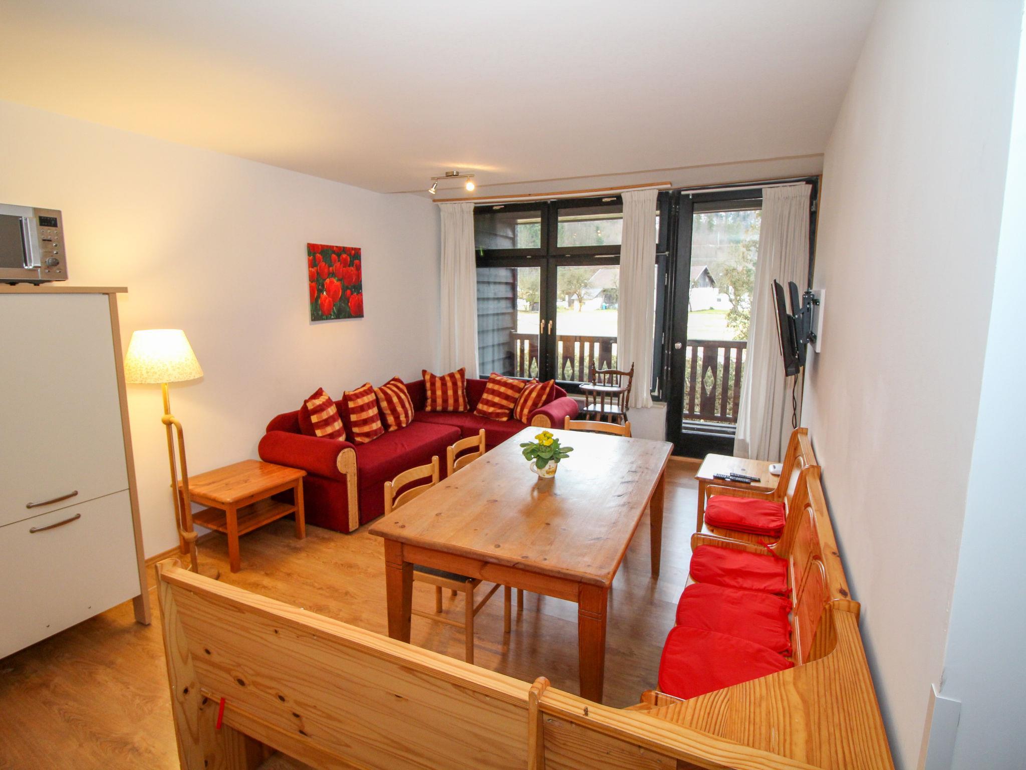 "Taubenschlag / Top 4", 4-room apartment 74 m2 on 1st floor. Object suitable for 4 adults + 4 children. Bright, practical and cosy furnishings: large living/dining room with dining nook, kitchen corner and satellite TV. 1 room with 1 double bed (160 cm, length 200 cm), shower/WC. 1 large room with 1 double bed (160 cm, length 200 cm). 1 small children's room with 2 x 2 bunk beds (length 180 cm). Open kitchen (4 hot plates, oven, dishwasher, microwave, electric coffee machine). Shower/WC. Large balcony. Balcony furniture. View of the mountains and the resort. Facilities: Internet (WiFi, free). Please note: suitable for families. Non-smokers only. Smoke alarm, fire extinguisher.