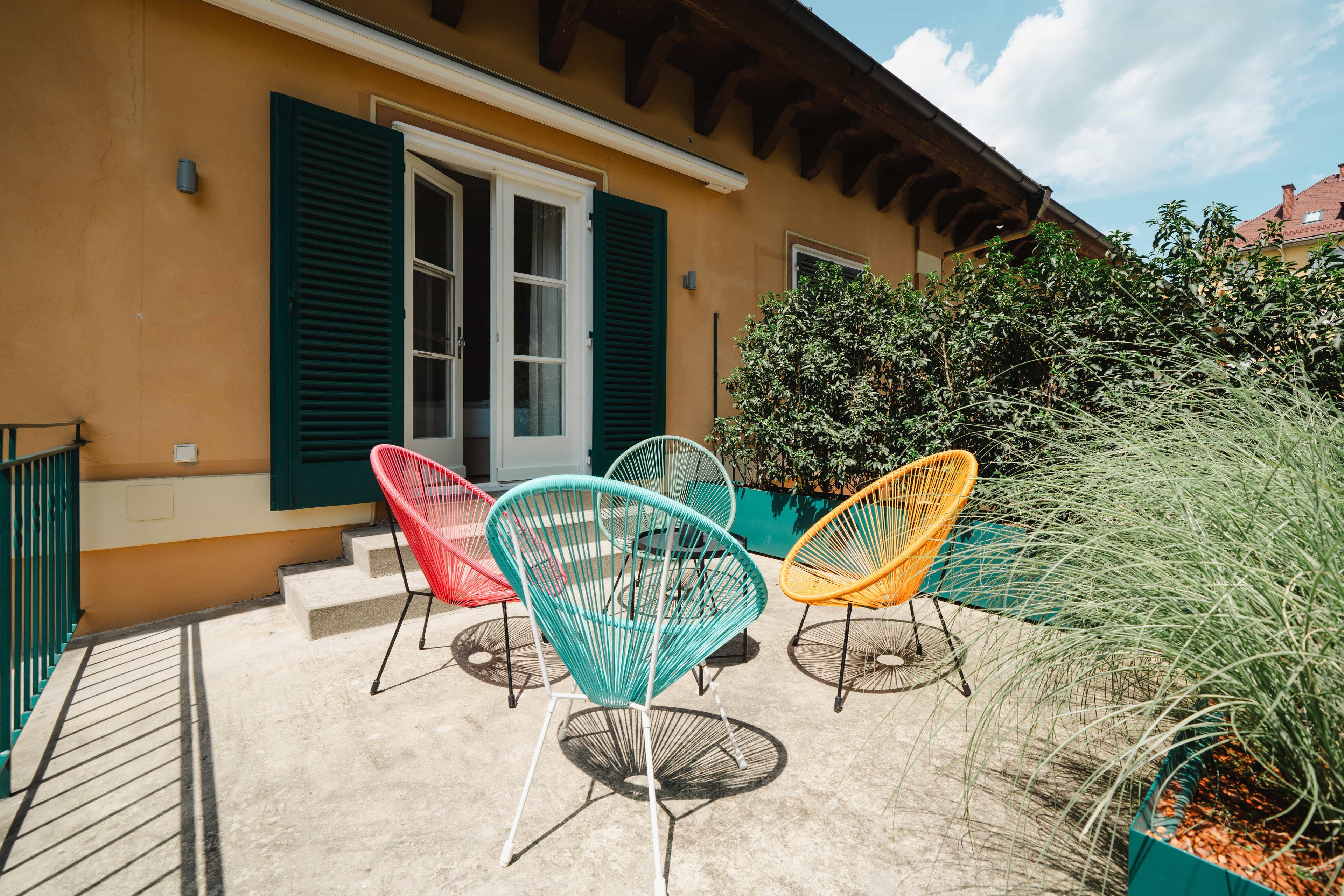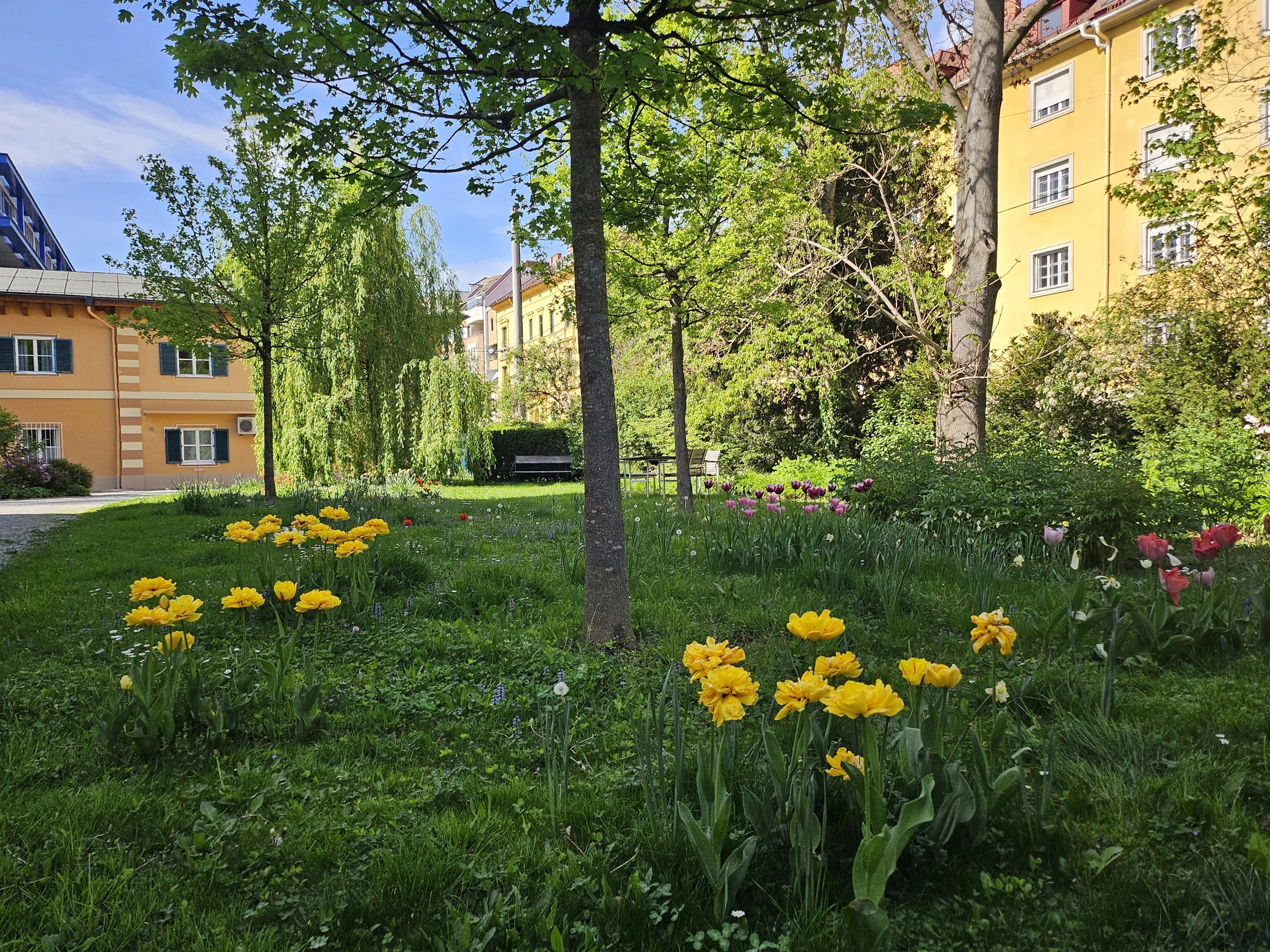 Unsere "golden flat" ist die neueste der GrazRentals Wohnungen. Alle Fenster haben einen Blick auf den Garten der 170 Jahre alten und denkmalgeschützten Villa "Markhof".