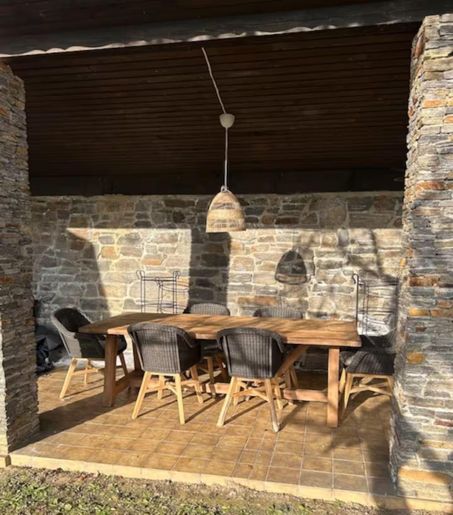 Ein überdachter Ess- und Grillplatz für 6 Personen.