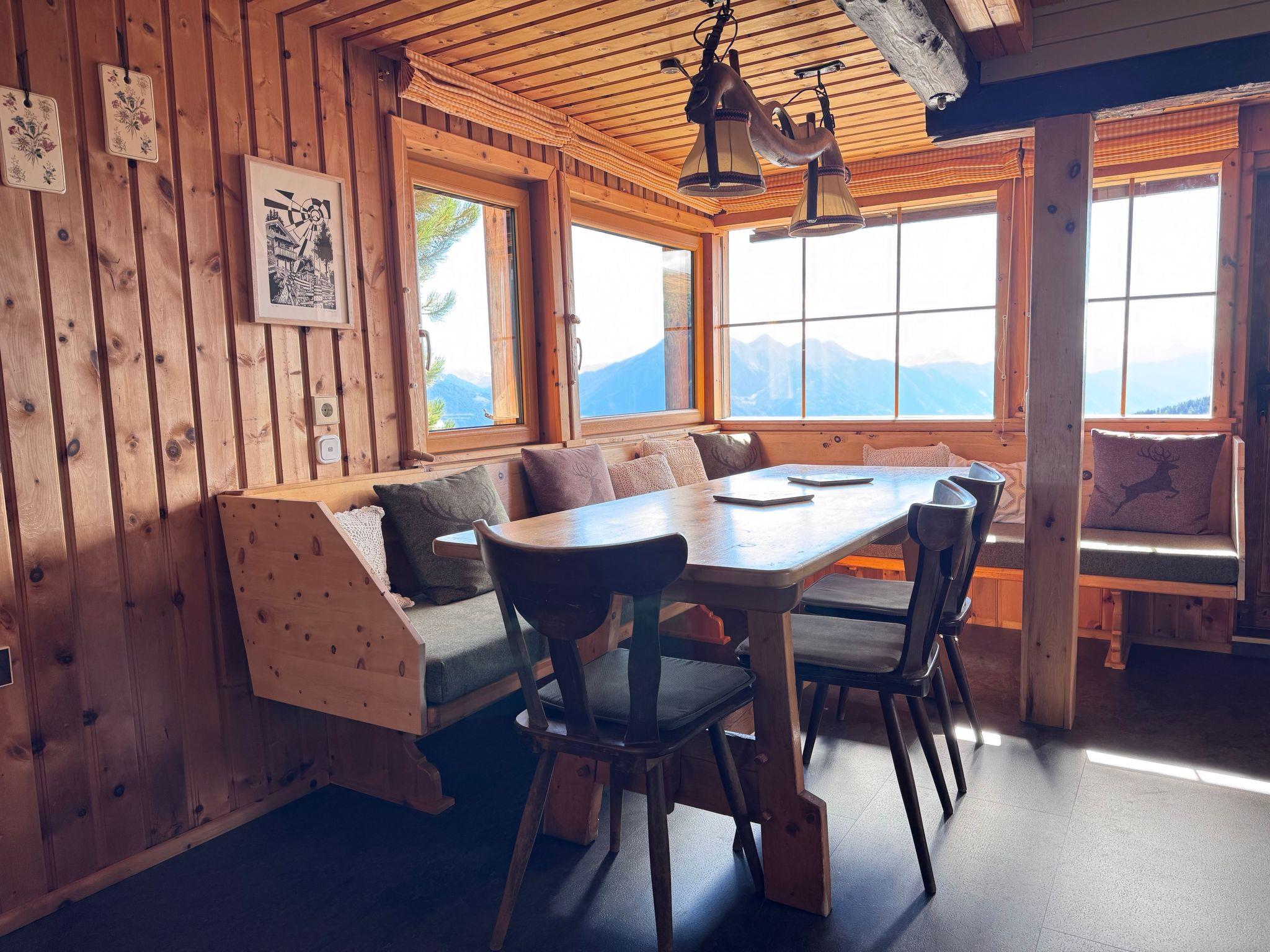 Inside the hut you will find a cosy and newly renovated living room with a balcony and a Swiss stone pine seating area, a kitchen corner and a large wood-burning stove. The ground floor also offers an inviting 2-bed room, a pantry, a bathroom with shower and a separate WC. On the upper floor you will find a bright, friendly 4-bed room with a furnished balcony, another cosy 2-bed room and a separate WC. The bedrooms are also equipped with radiant heaters for the cooler months. Please note that pets are not allowed in the bedrooms.