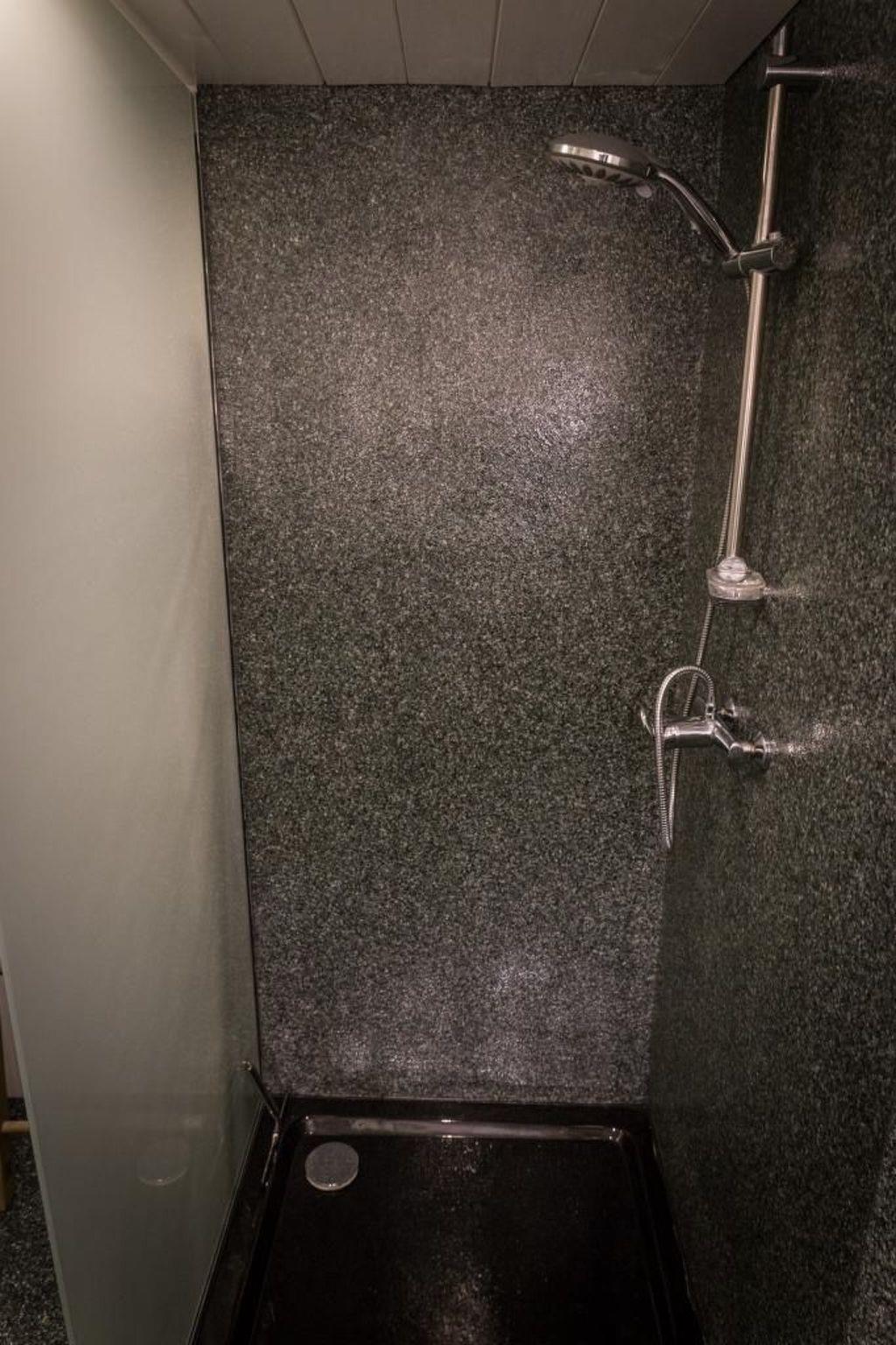 The outdoor area leaves nothing to be desired. The large plot (1650 square metres) has a sun plateau with table and benches as well as sun loungers and parasols. An additional seating area next to the hut as well as a specially built fireplace at the highest point of the property and a freely usable charcoal barbecue invite you to linger and enjoy. Please note that the property is not completely fenced in if you are travelling with a dog.