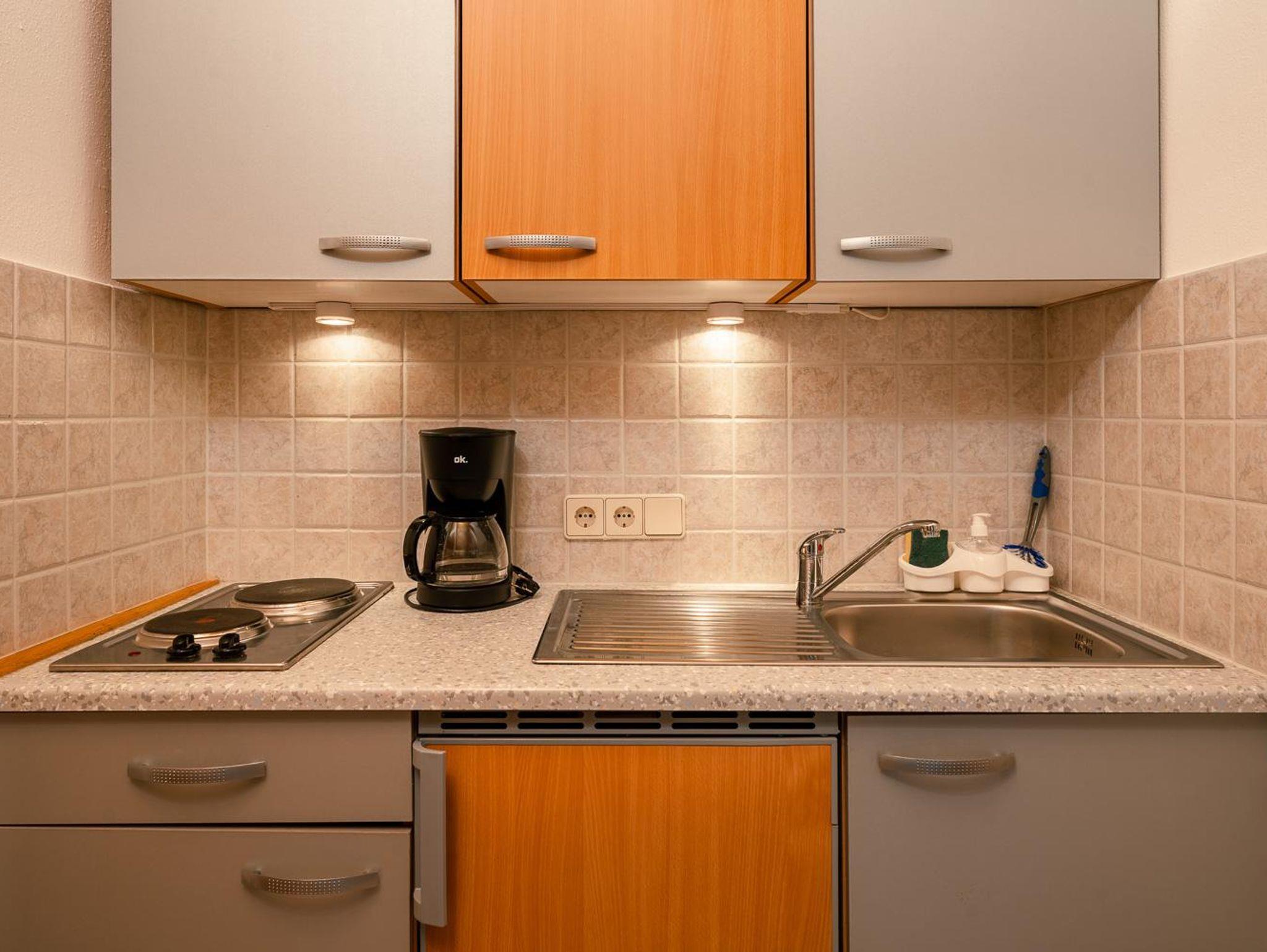 Im Zimmer befindet sich eine Kleinküche mit Kühlschrank.
