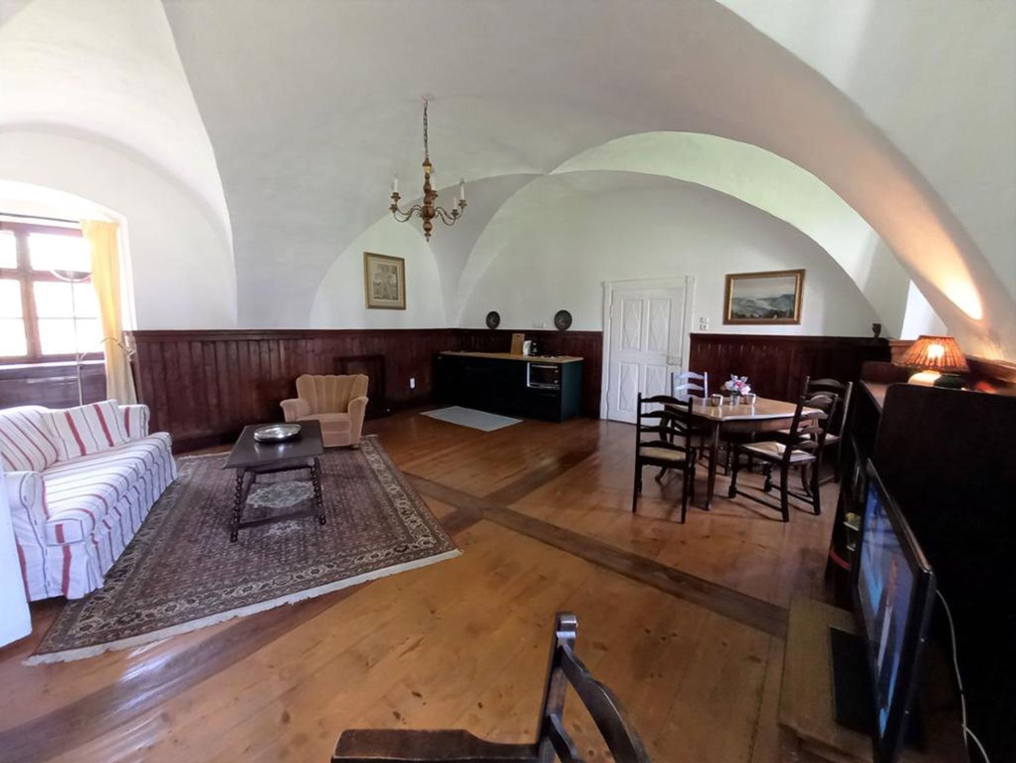 Die ruhigen Fereinwohnungen mit direktem Gartenzugang befinden sich im Nebengebäude mit Blick auf das Schloss. Die gewölbten Räume bieten ein angenehmes Klima und das Amiente eines historischen Gebäudes.
