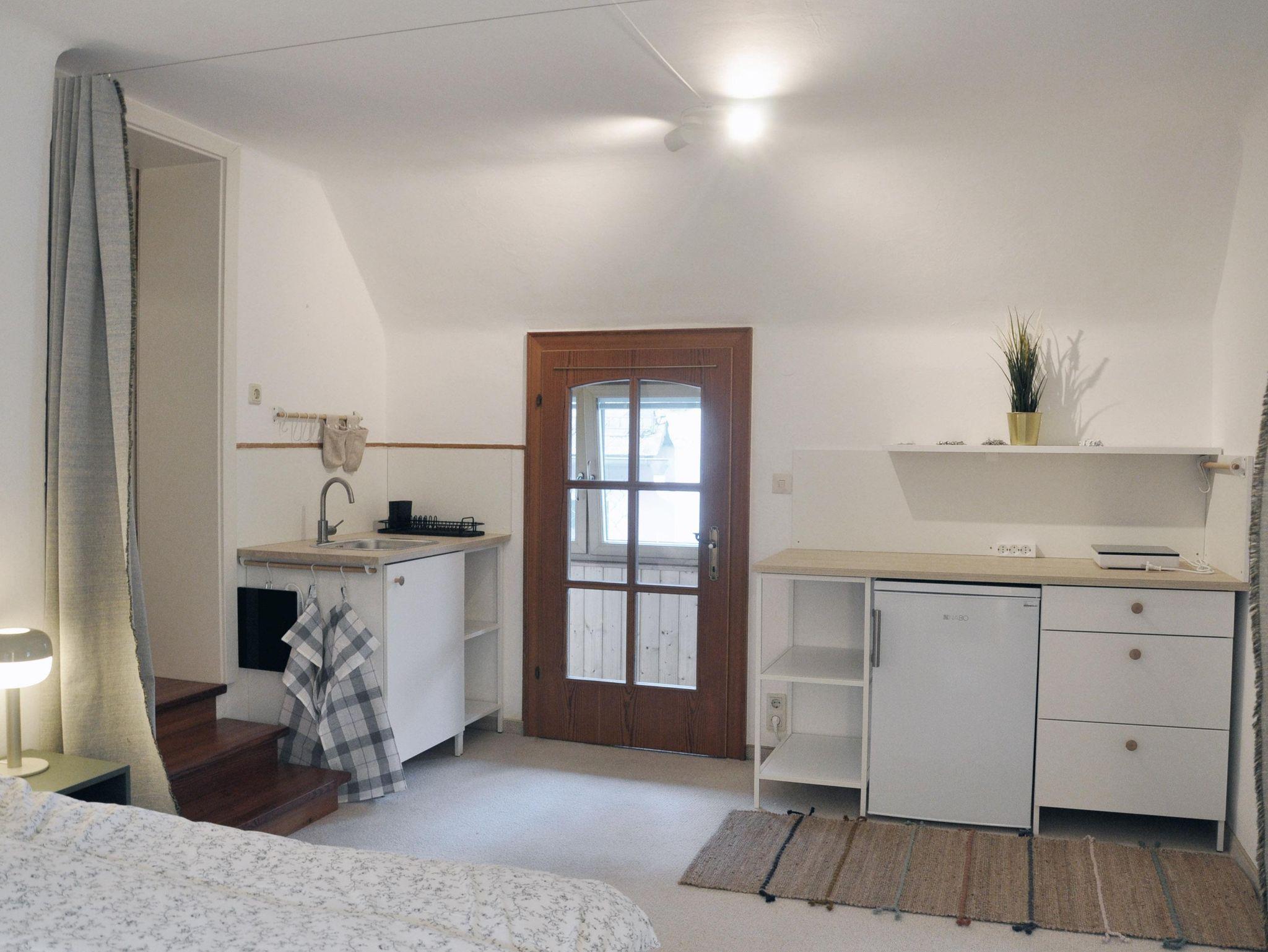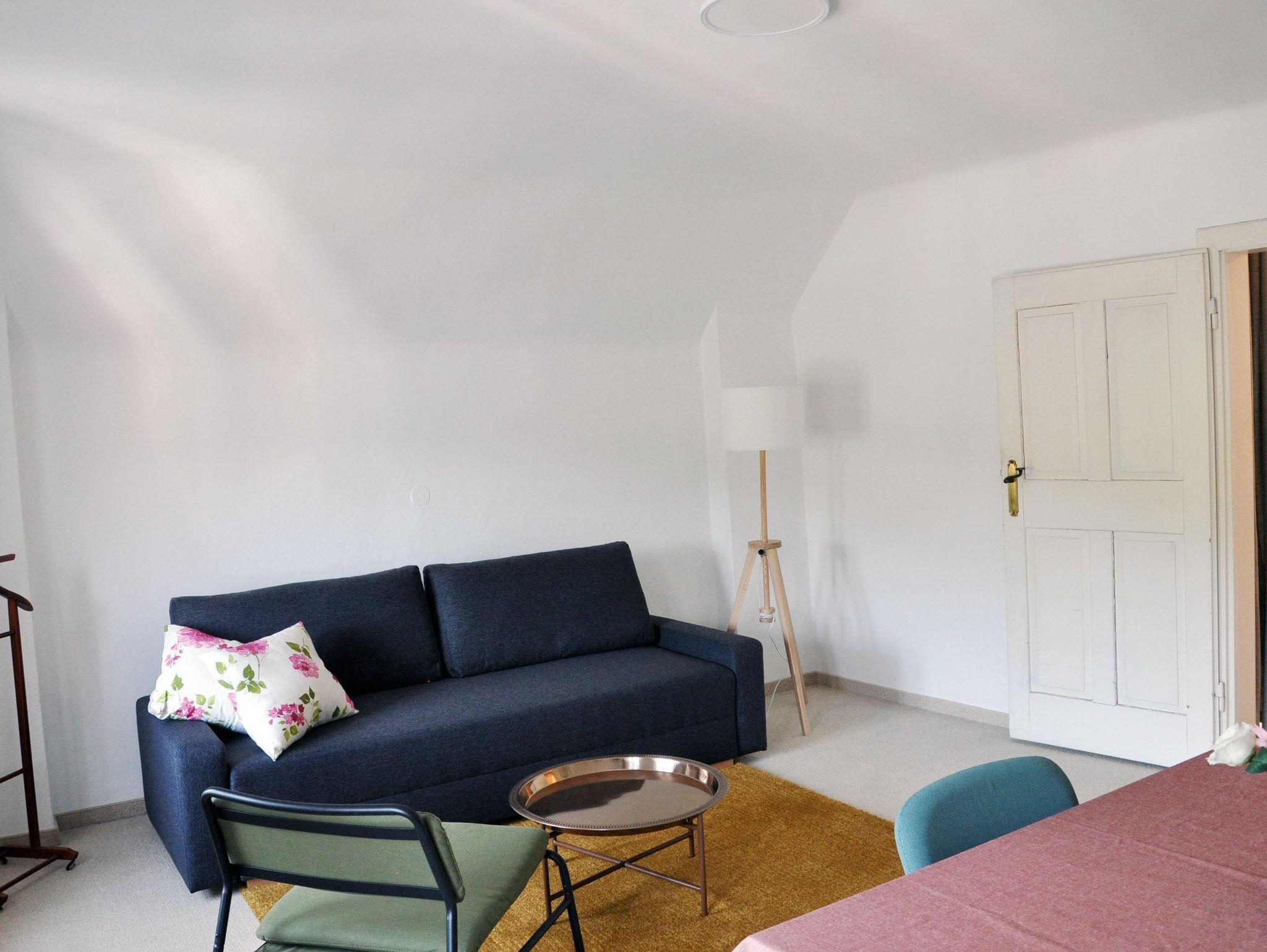 Die charmante Ferienwohnung befindet sich im 1. Stock und bietet einen wunderschönen Blick auf die Donau. Sie verfügt über zwei getrennte Zimmer, eine Küchennische, ein gemütliches Doppelbett und eine Schlafcouch für zusätzliche Gäste. Das großzügige Badezimmer ist mit einer Badewanne ausgestattet.