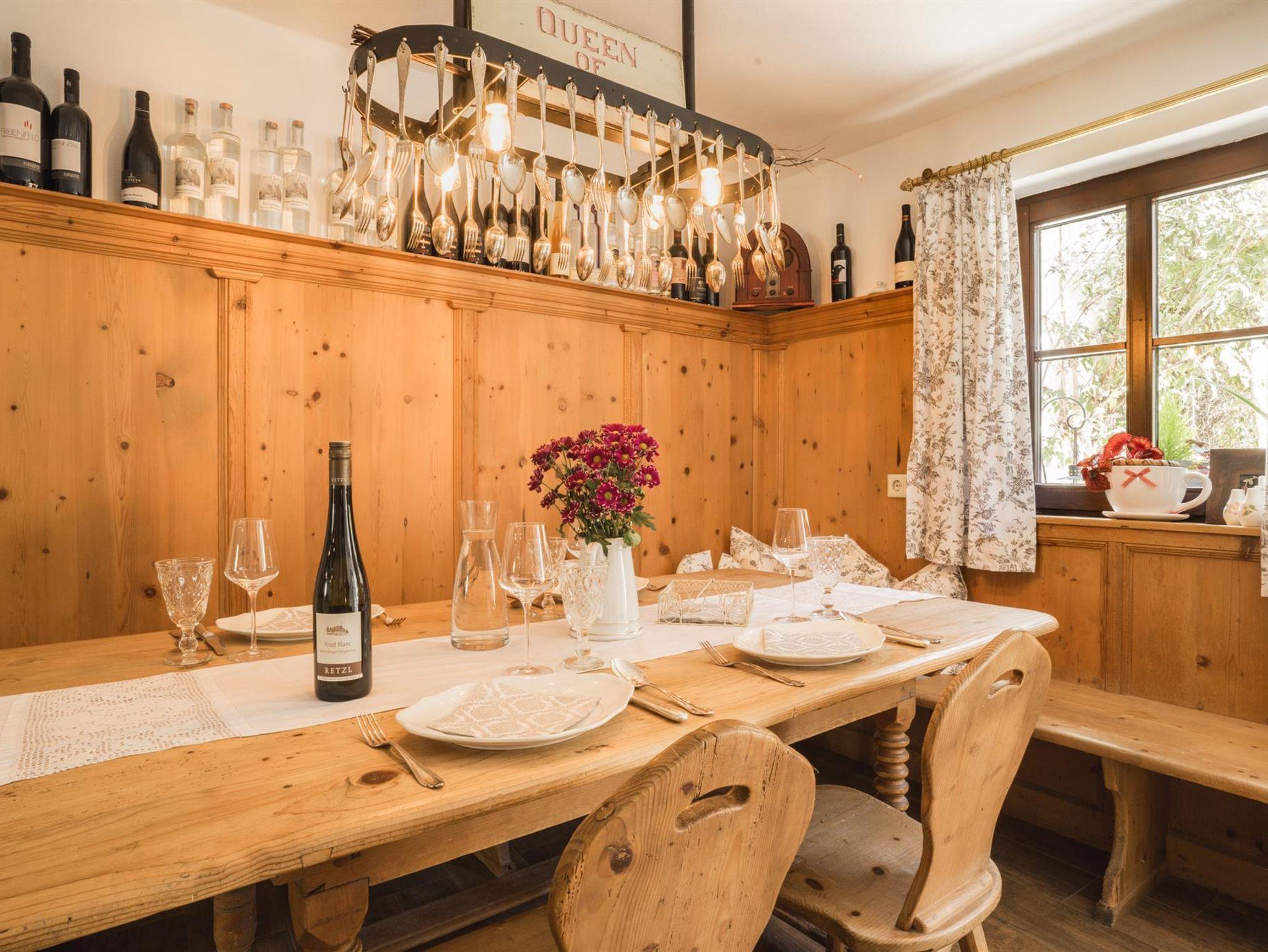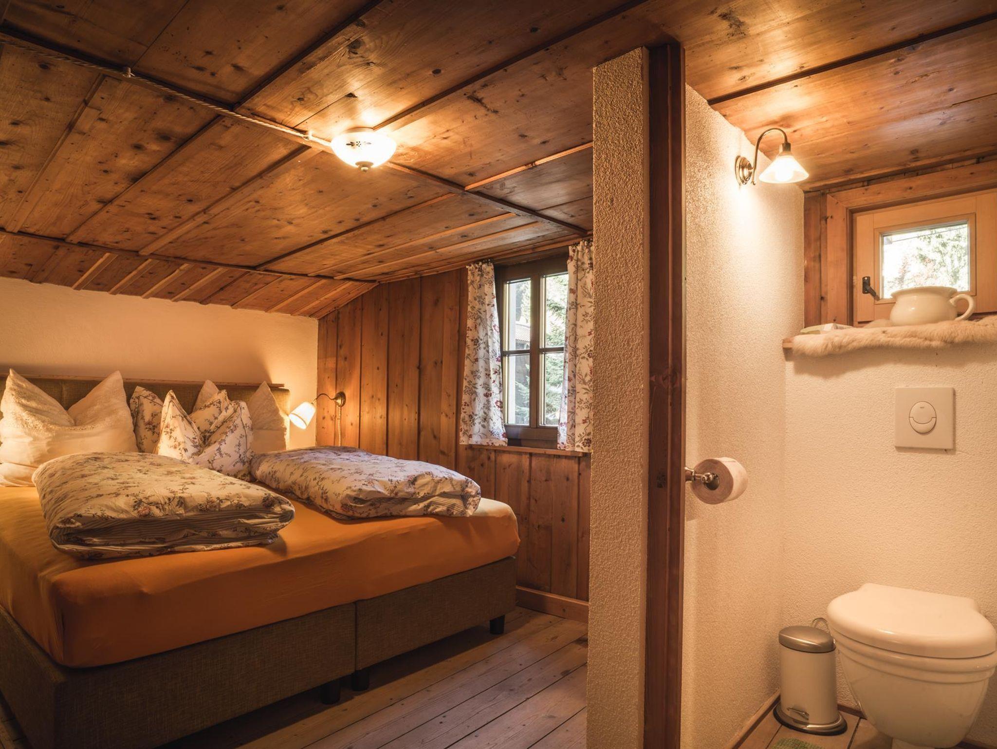 Als Kammerle bezeichnete man früher die mit Holz ausgetäfelten Zimmer. Diese Zimmer gehörte ursprünglich unserer Tante Zenzi (ihr Bild ist in der Duschrückwand verewigt). Wir haben es in seinem traditionellen und urigen Charakter nicht verändert, aber mit modernen Elementen ausgestattet: ein komfortables Boxspringbett, ein Flatscreen, eine große Dusche, ein WC, ein Waschtisch, eine Espressomaschine und ein kleiner Kühlschrank. Bademäntel für einen Sprung in den Pool im Sommer oder eine kurze Auszeit im Garten gibt es ebenfalls dazu.
