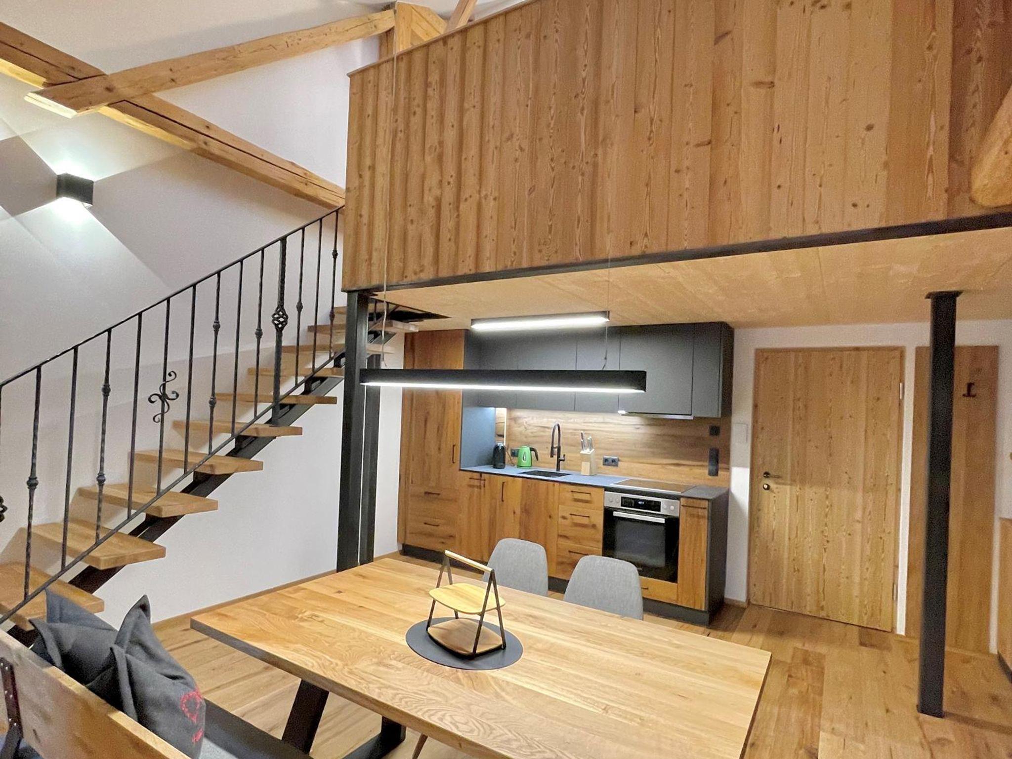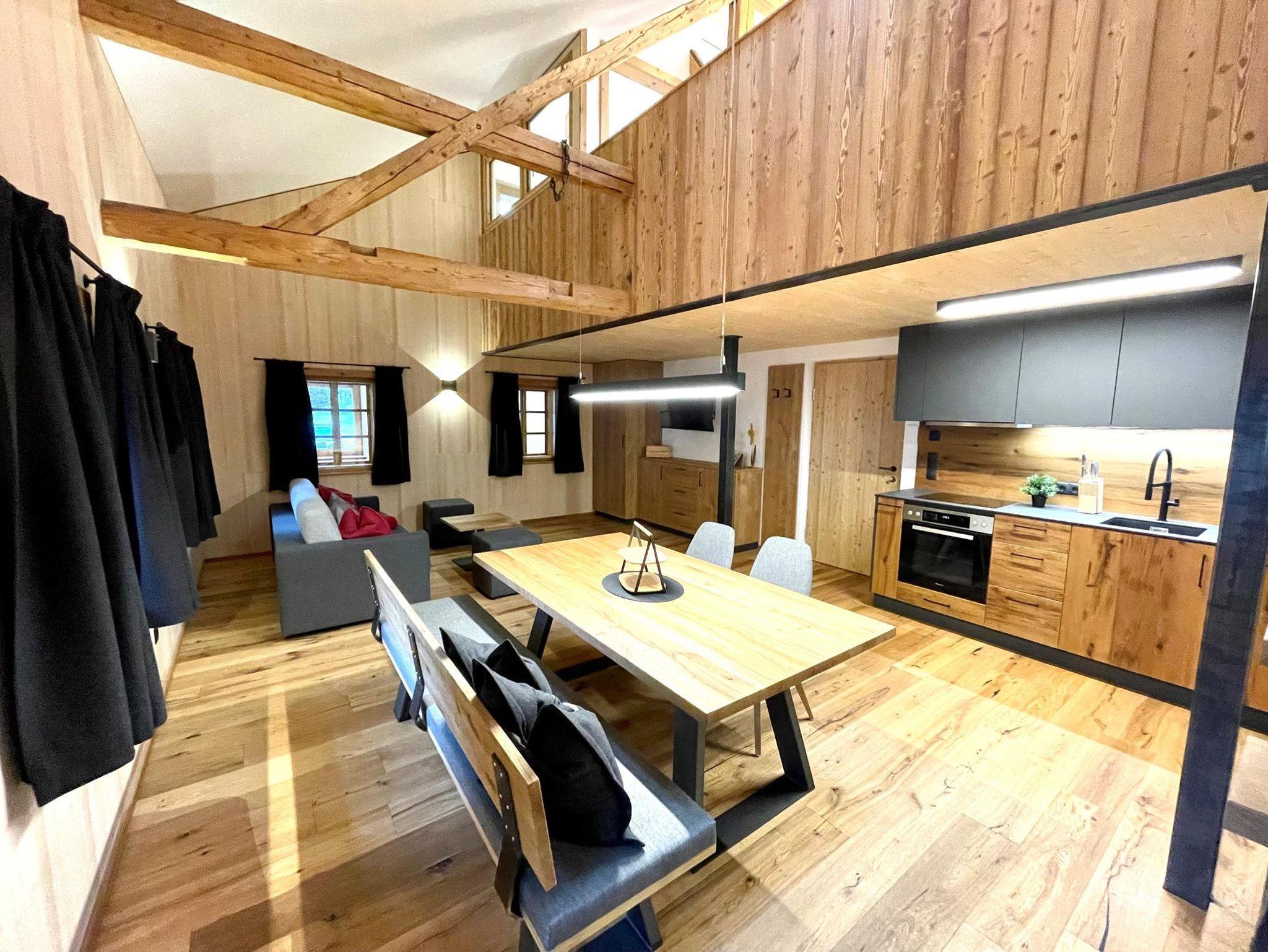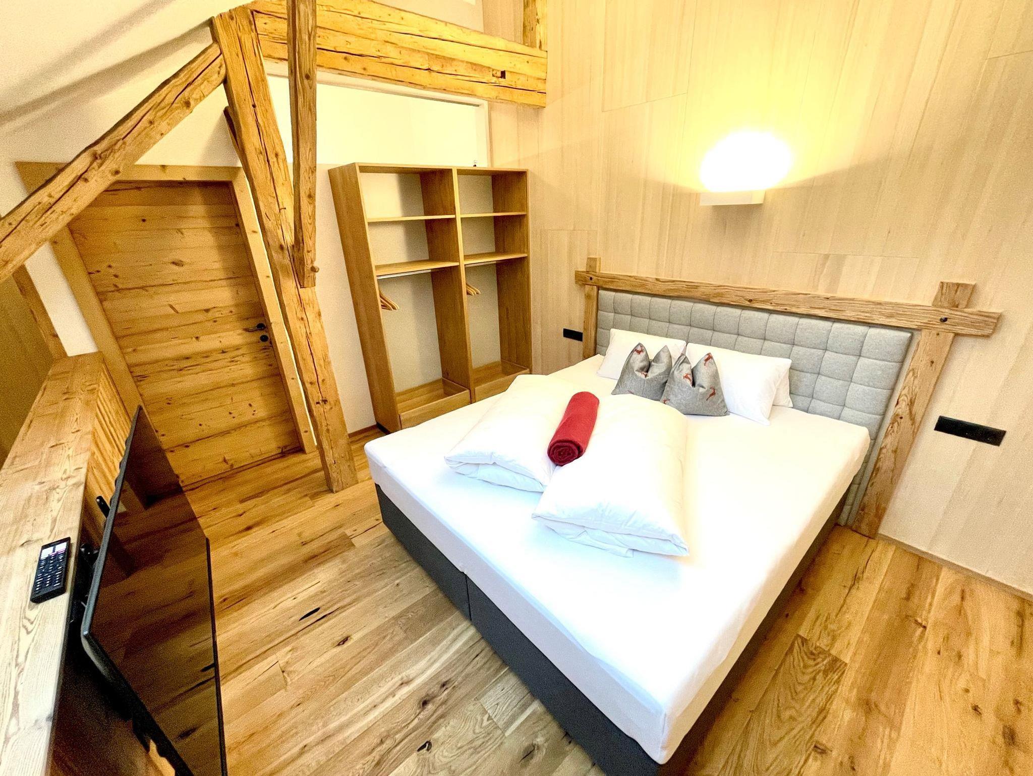 Die zwei modernen und neuwertigen 55 m² großen Appartements für 2 bis 4 Personen im ersten Stock verfügen über je ein Schlafzimmer mit Boxspringbett, eine Schlafcouch, einem offenen Wohn-, Koch-und Essbereich und einem Badezimmer mit Dusche und WC.