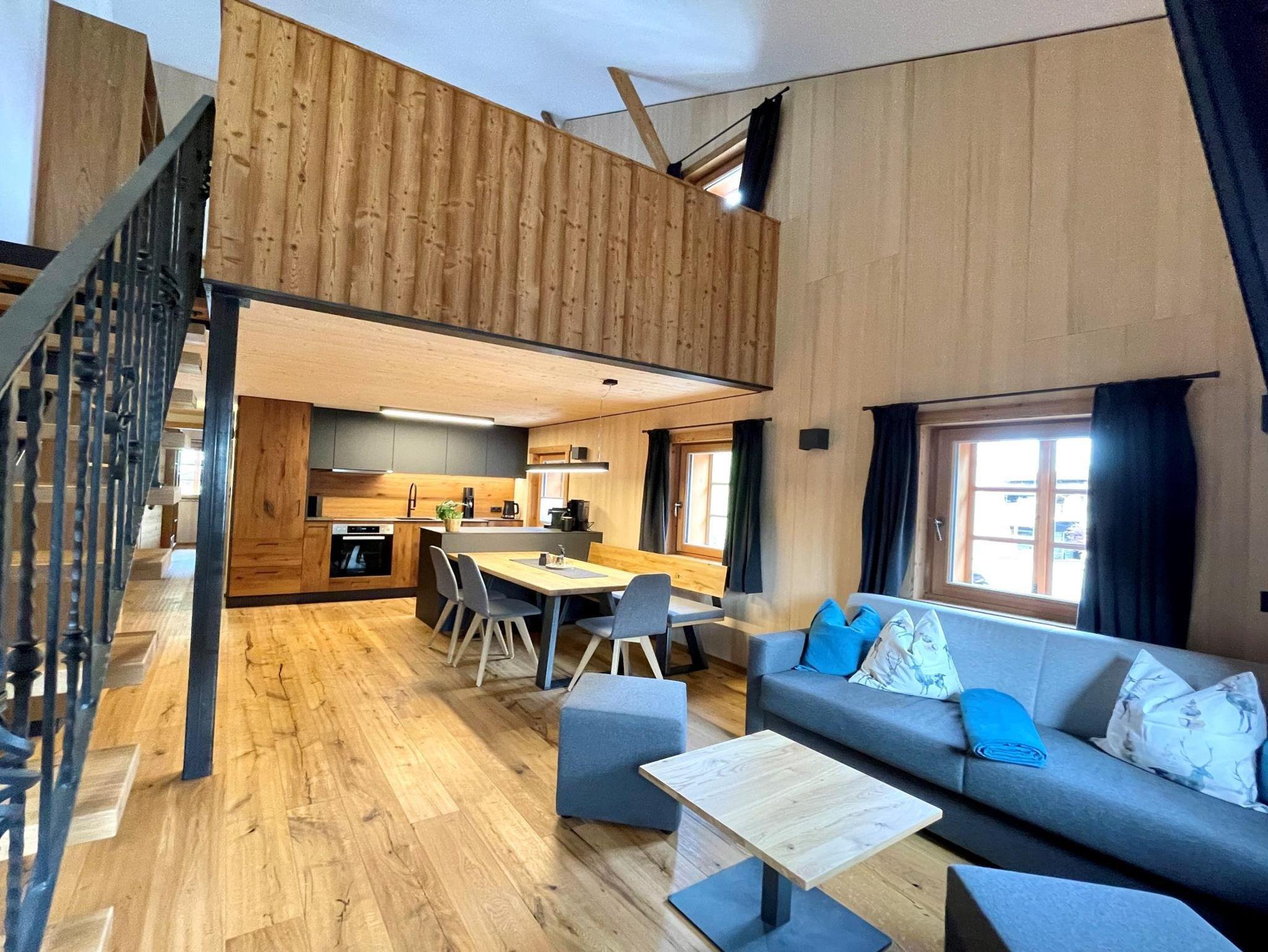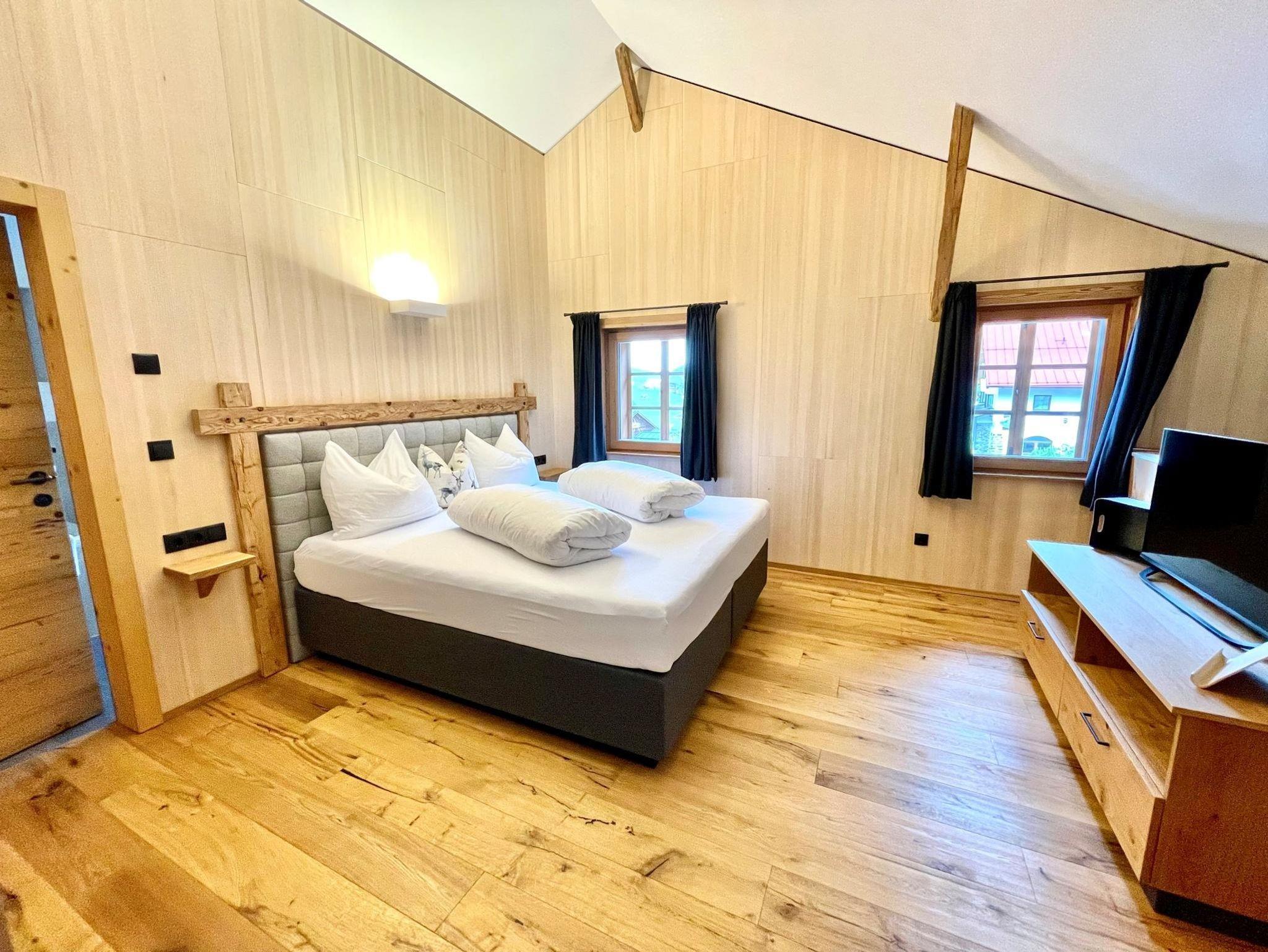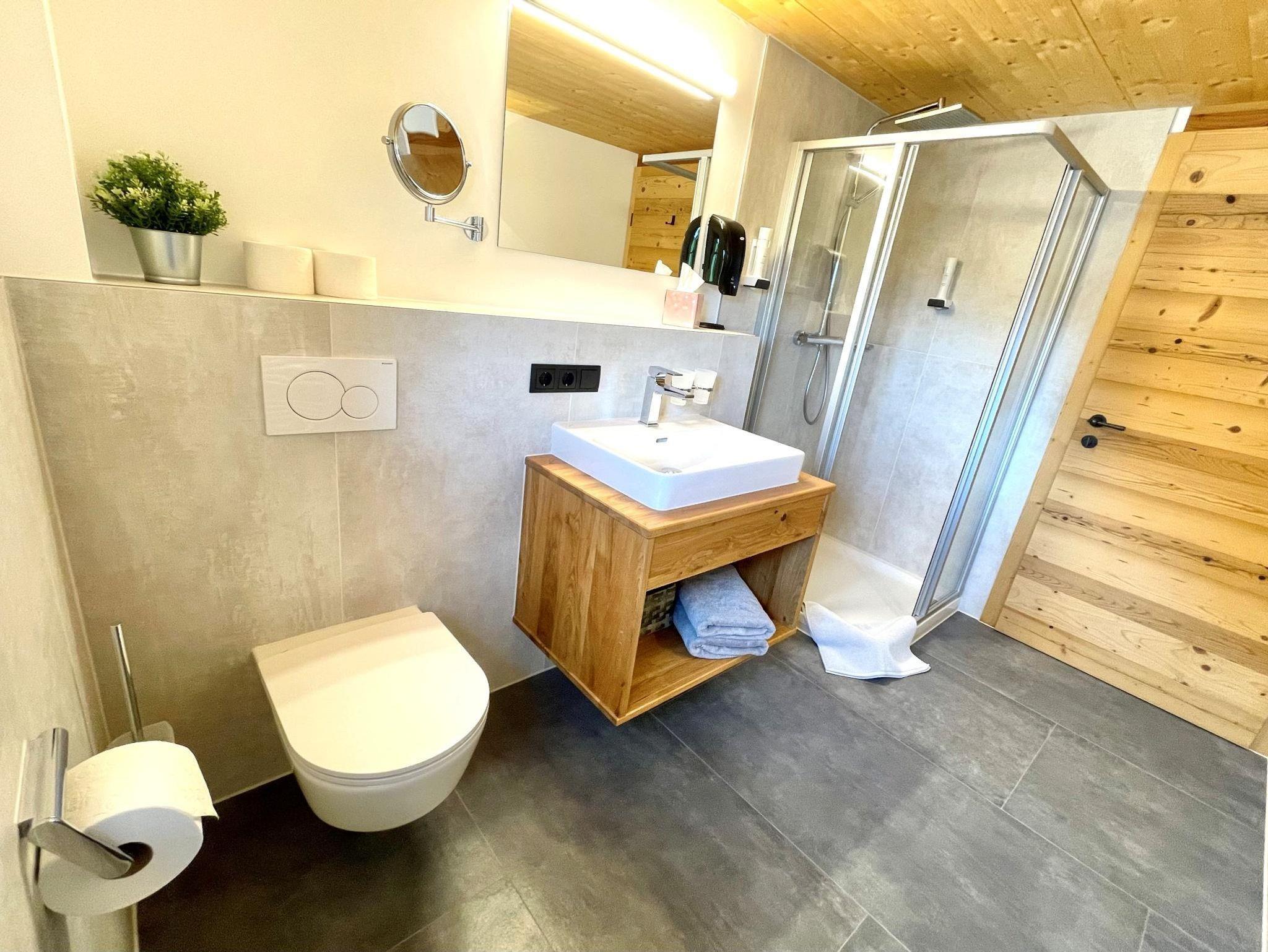 Die zwei modernen und neuwertigen 55 m² großen Appartements für 2 bis 4 Personen im ersten Stock verfügen über je ein Schlafzimmer mit Boxspringbett, eine Schlafcouch, einem offenen Wohn-, Koch-und Essbereich und einem Badezimmer mit Dusche und WC.