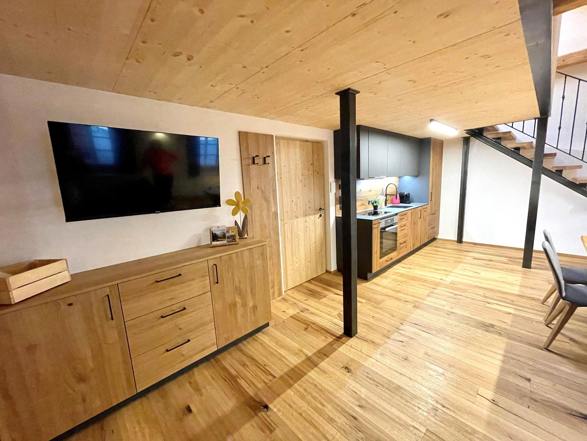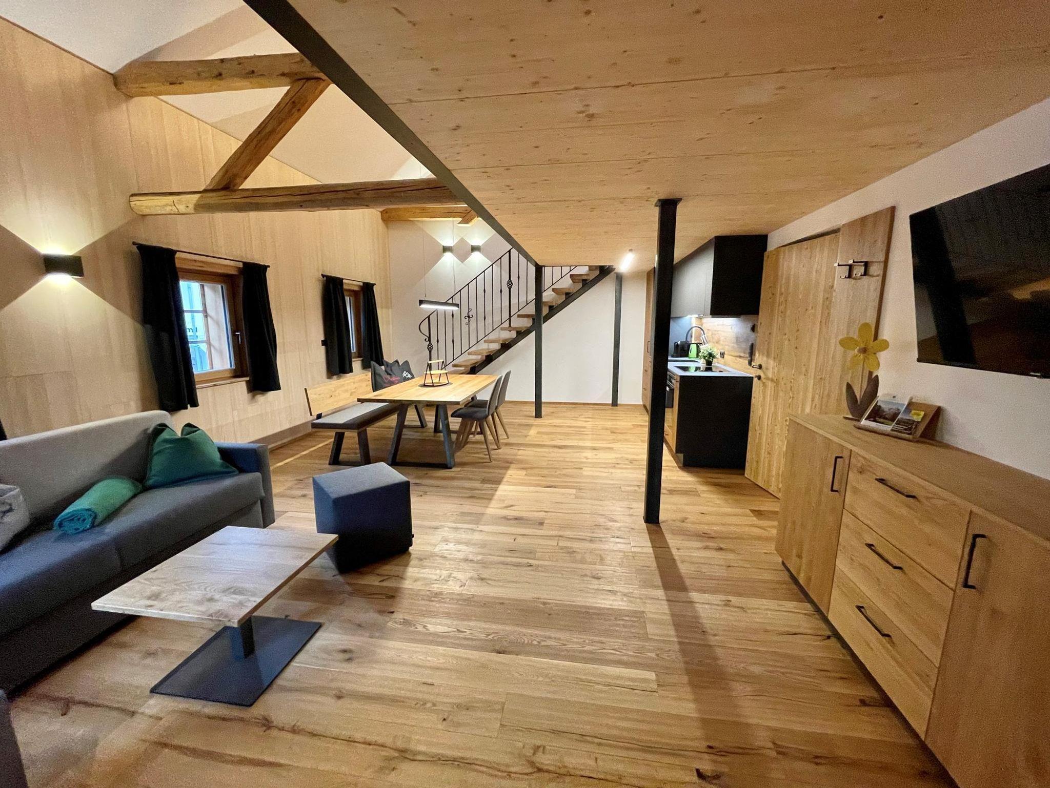 Die zwei modernen und neuwertigen 55 m² großen Appartements für 2 bis 4 Personen im ersten Stock verfügen über je ein Schlafzimmer mit Boxspringbett, eine Schlafcouch, einem offenen Wohn-, Koch-und Essbereich und einem Badezimmer mit Dusche und WC.