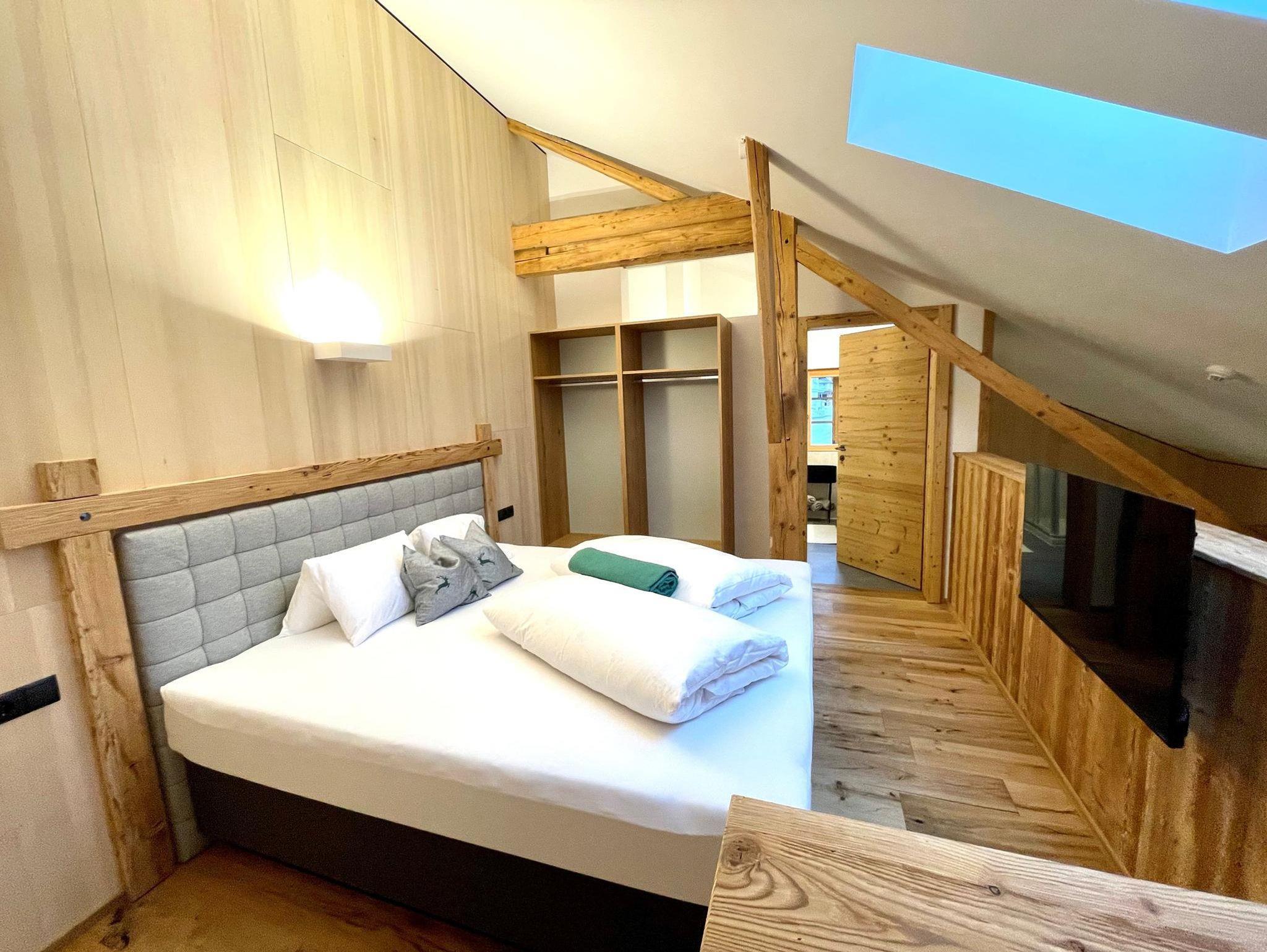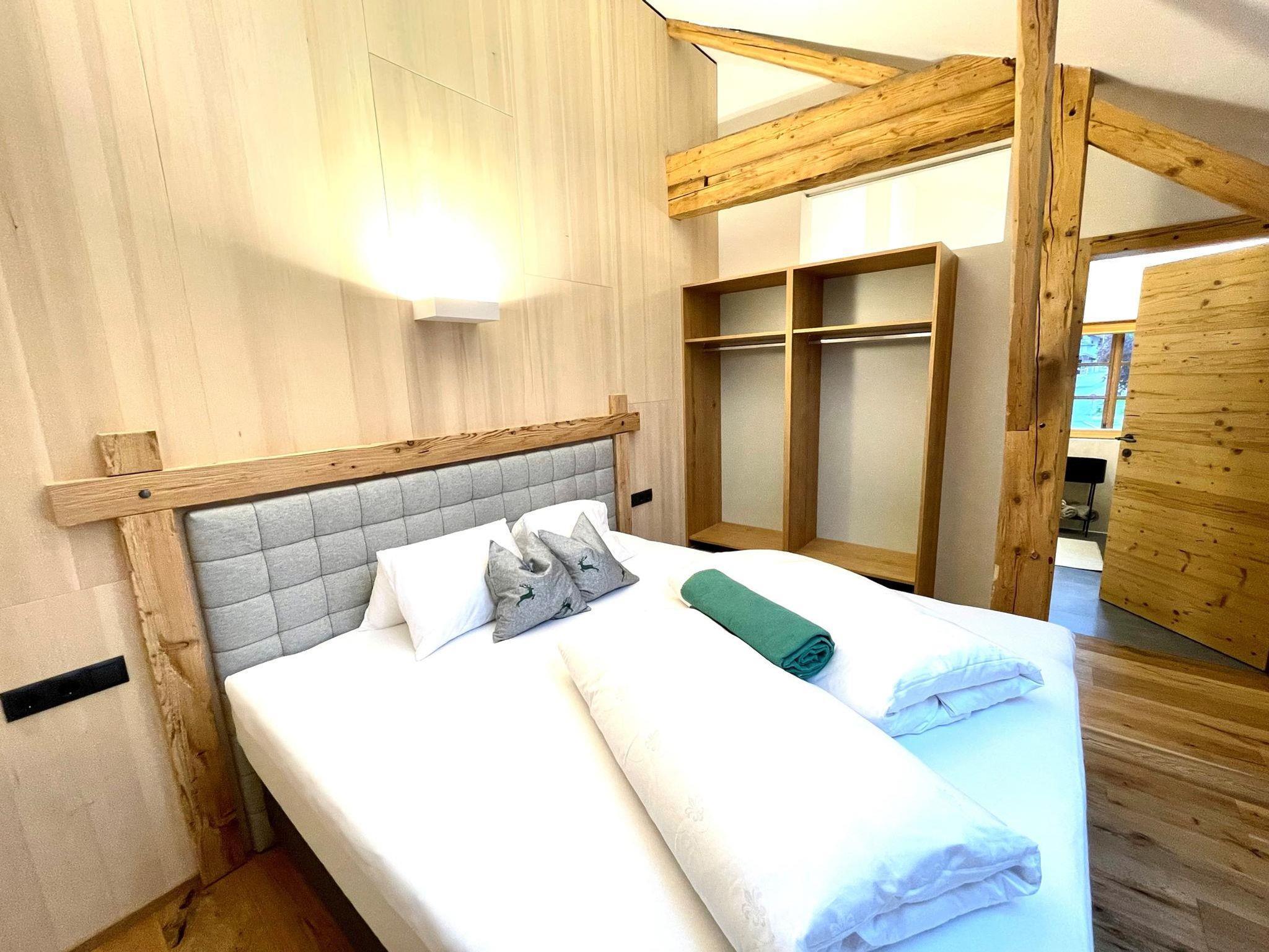 Ein drittes 75 m² großes Appartement für 4 bis 6 Personen im ersten Stock verfügt über zwei Schlafzimmer mit Boxspringbett, eine Schlafcouch, einem offenen Wohn-, Koch-und Essbereich und zwei Badezimmer mit Dusche/Badewanne und WC.
