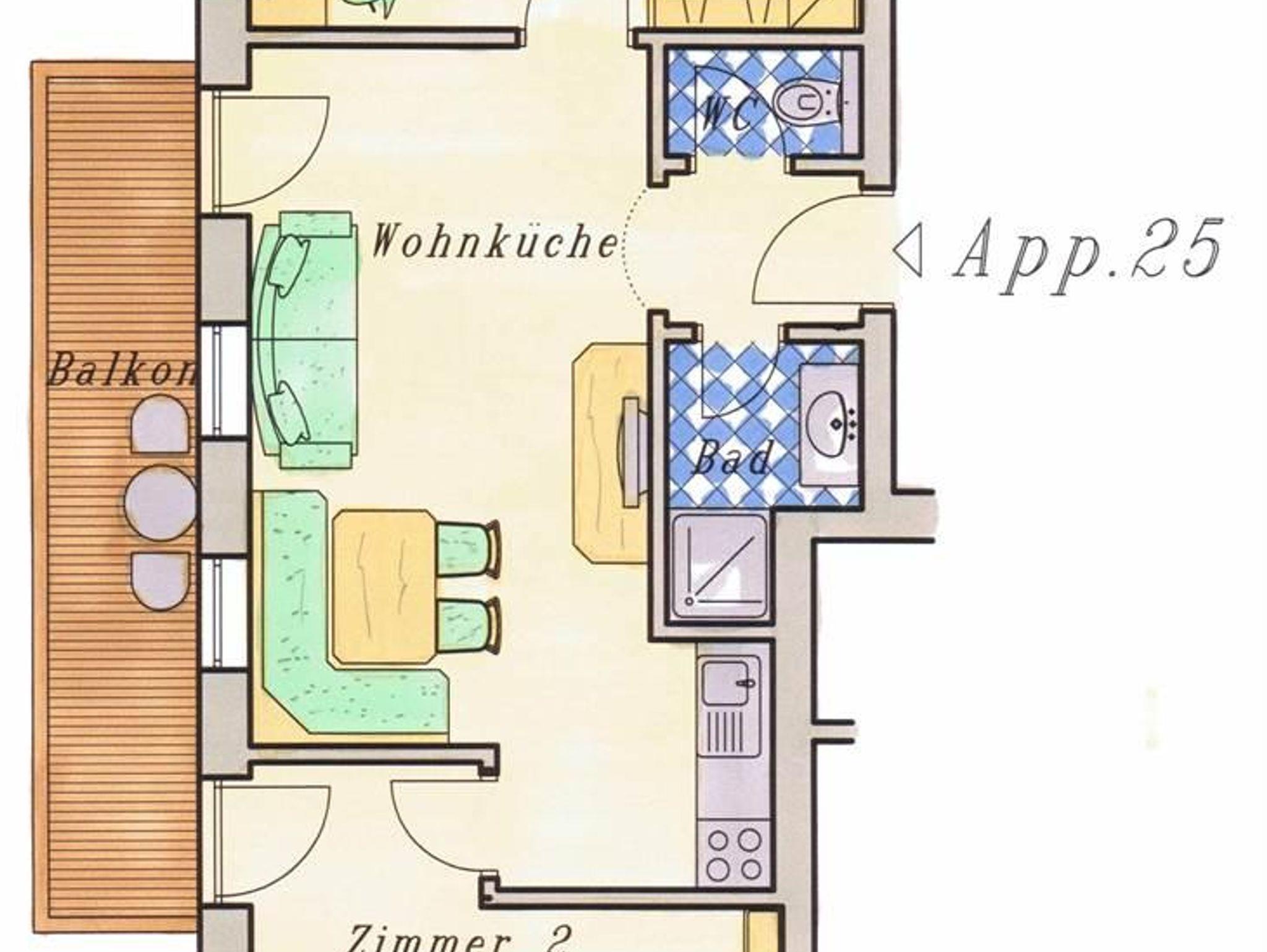 Ferienwohnung mit 50 m², 2 getrennte Schlafzimmer, Balkon, Kabel-TV, Radio, Safe, Telefon, Geschirr, Bettwäsche, Handtücher, Kaffeemaschine, Wasserkocher, Mikrowelle, 4 Kochplatten, Backofen, Geschirrspüler.