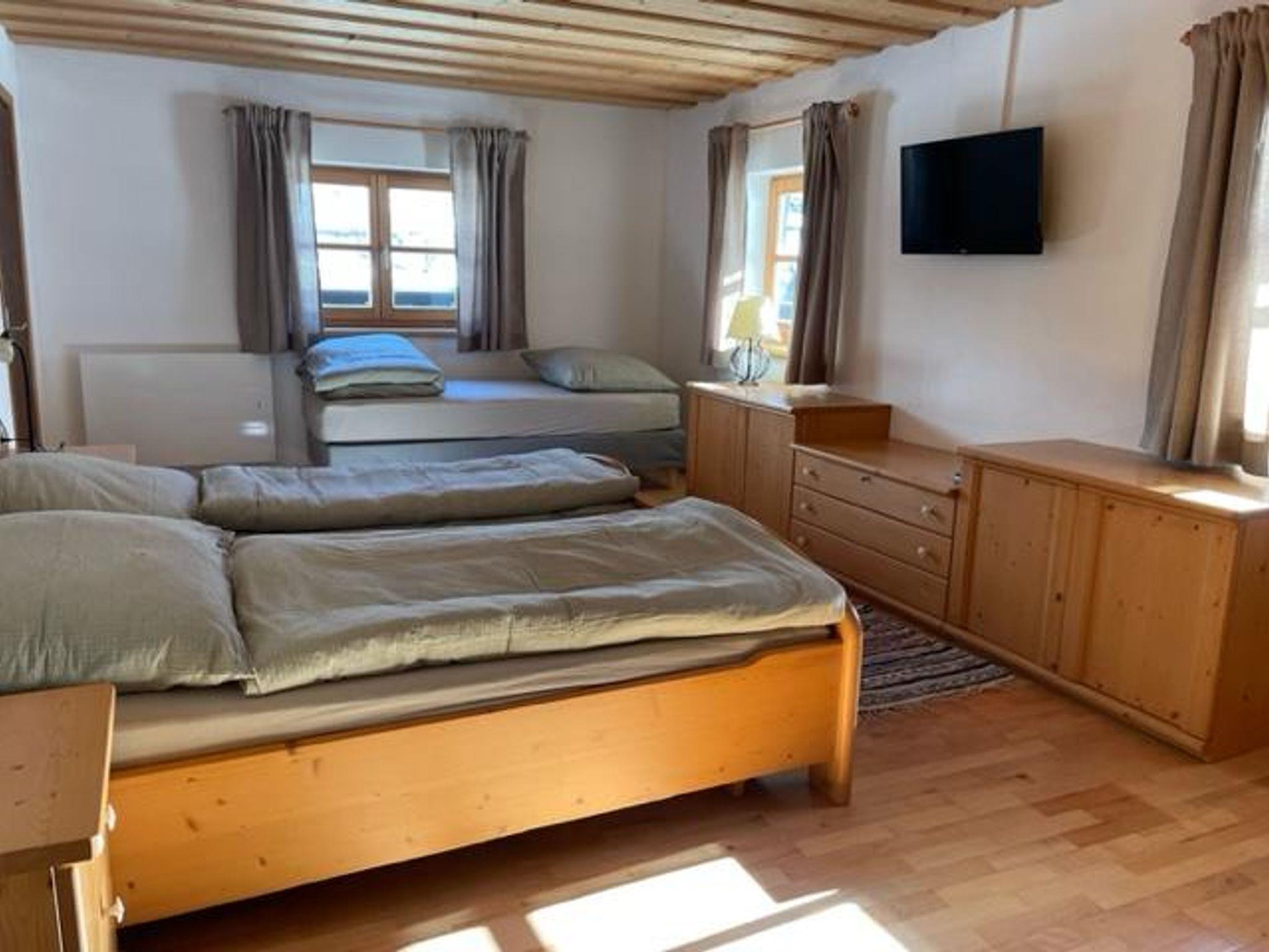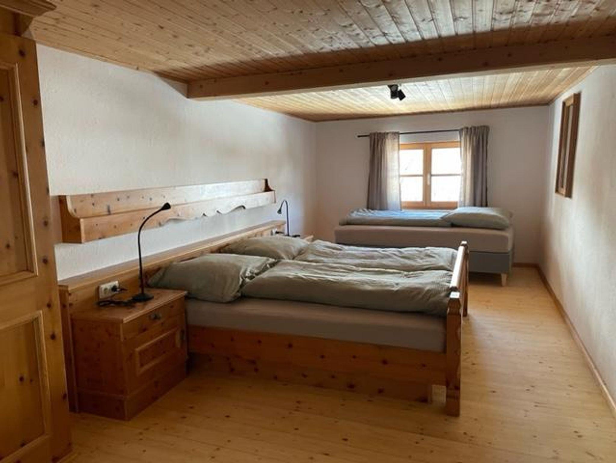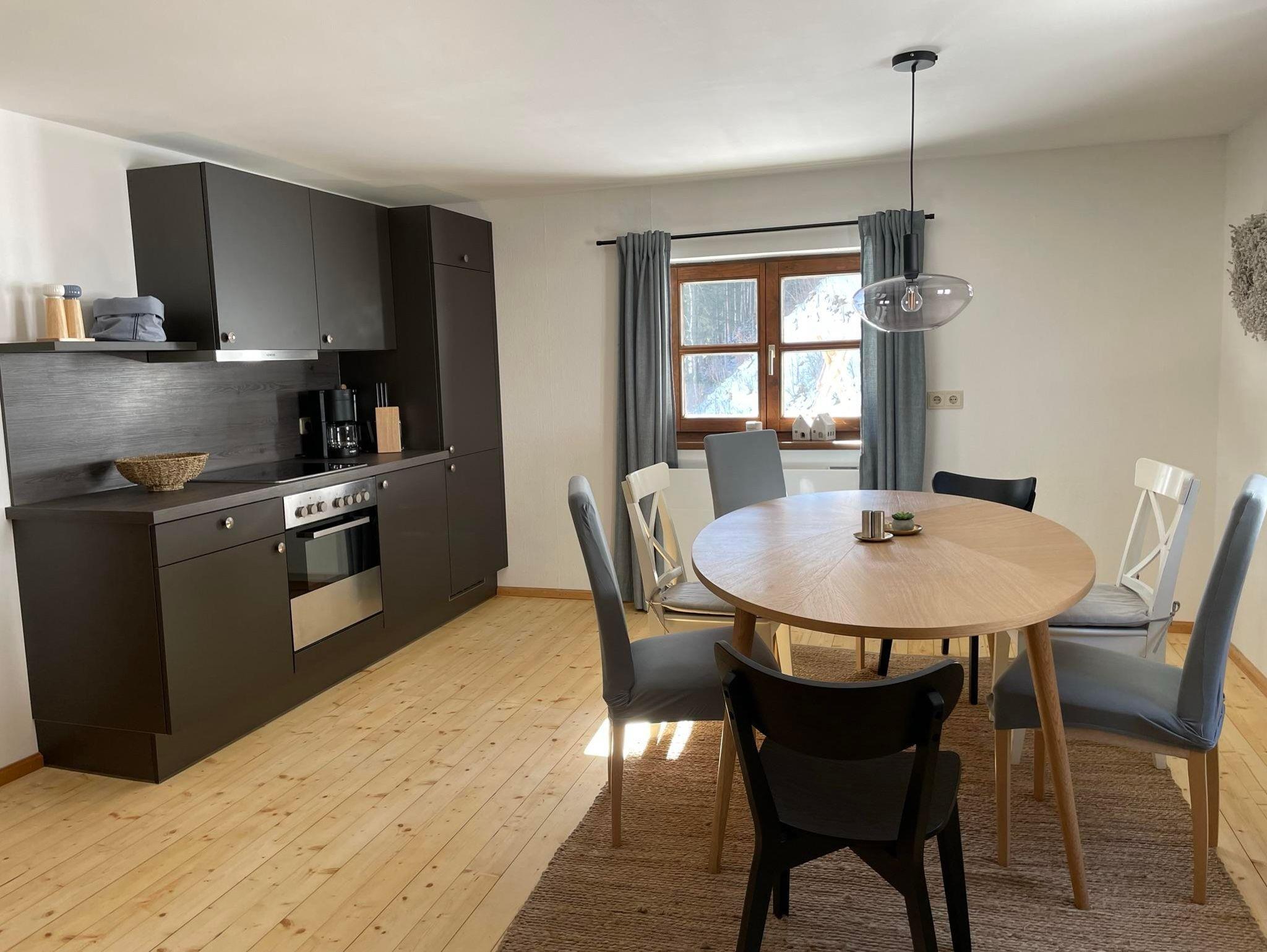 Unser gemütliches Appartement für 6 Personen liegt im 1. Stock und bietet insgesamt eine Wohnfläche auf ca. 80-90m2. Ausgehend vom großen Vorraum (wie es früher in vielen Bauernhäusern üblich war) findet man linker Hand 2 Schlafzimmer mit je 1 Doppelbett (90x190 cm mit Fußende) und 1 Einzelbett (90x200 cm ohne Fußende). Rechts führt eine Tür in die neu renovierte Küche mit großem Esstisch.