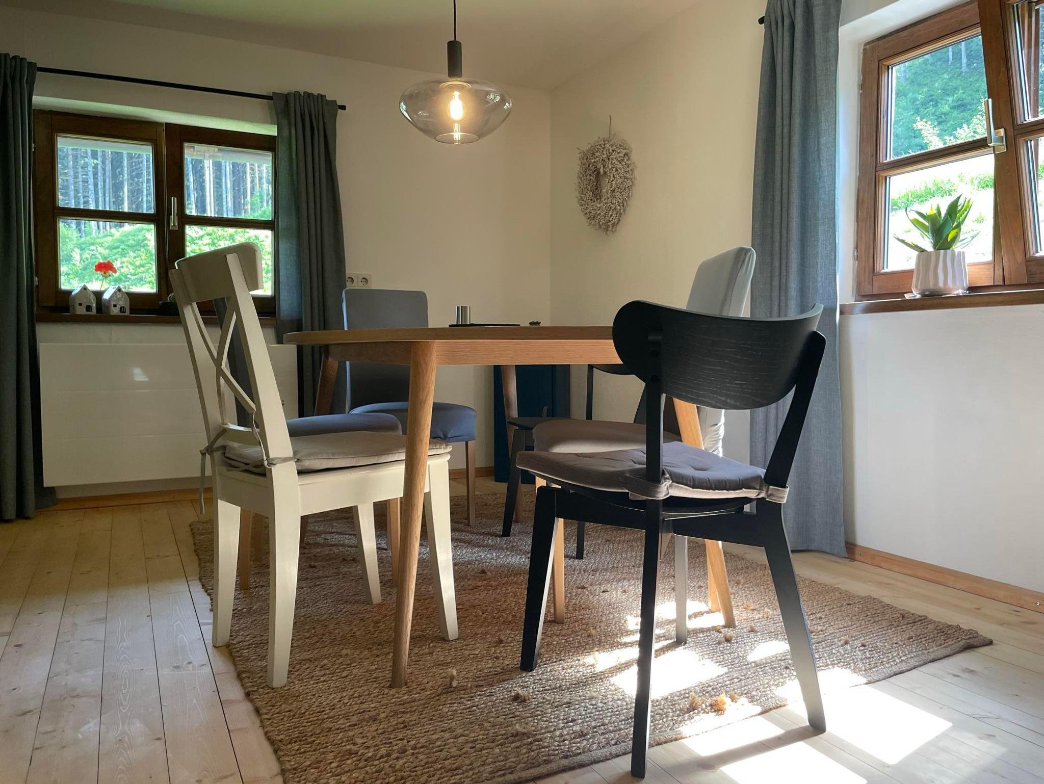 Direkt am Wald gelegen, haben Kinder hier den Platz, um sich frei auszutoben, während ihr die Ruhe genießt. Und manchmal schleicht sogar ein Reh oder Hirsch am Garten vorbei – echte Natur, wie man sie selten findet.