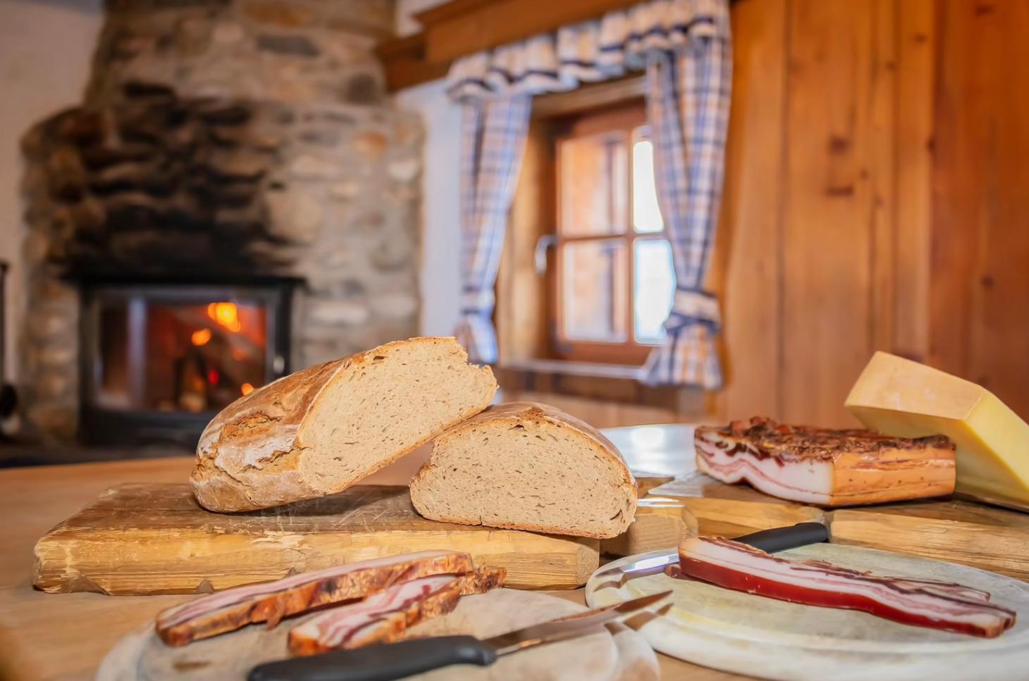 Wohnstube mit massivem Holztisch und Eckbänken