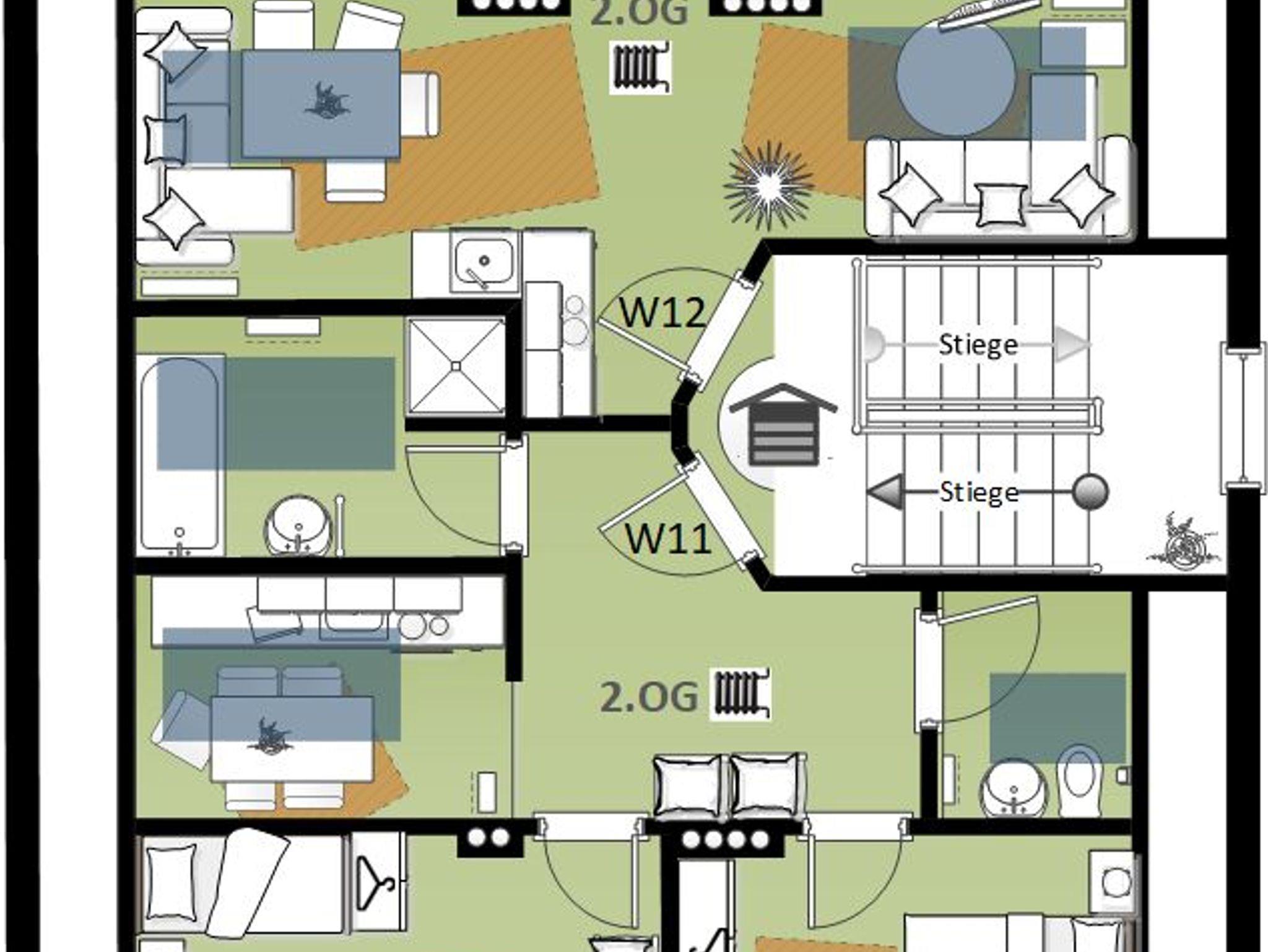 Die Wohnung W11 ist im 2. Obergeschoß und besteht aus Vorraum, Küche, Wohn/Schlafzimmer mit 3 Couchbetten, Schlafzimmer mit 3 Betten, Bad/DU, WC - max 4 (+2) Pers.
