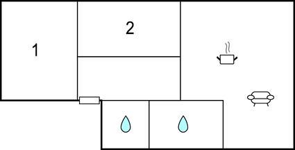 Soveværelse (nr. 1) - 1 Soveplads. (Enkeltseng(e)). 2 Sovepladser. (Dobbeltseng(e)).