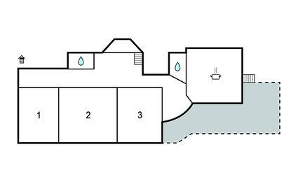 Badeværelse (nr. 1) - WC. Varmt og koldt vand. Bruser