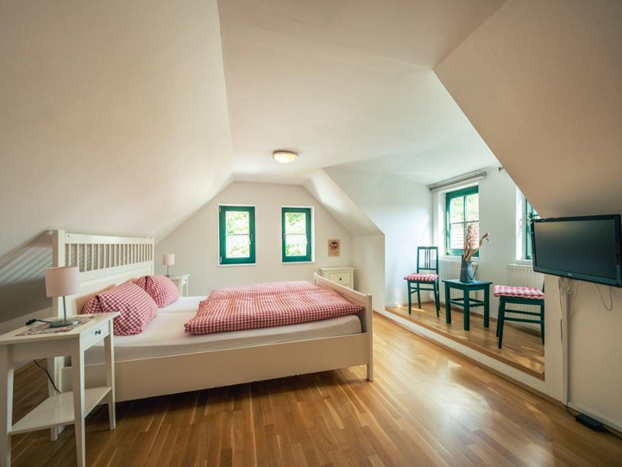 Selbstverständlich müssen Sie jedoch auf den gewohnten Comfort nicht verzichten. Dusche, WC, Flachbildschirm TV, kostenloses Wlan ,Sitzecke und natürlich Topweine des Winzers sind in der Suite. Die Suite ist südwestlich ausgerichtet. Sie genießen somit ab Mittag bis spät abends die Sonne - mit Blick auf das Weingut, und die herrlichen Weinberge. Verweilmöglichkeiten haben Sie noch am Lärchensteg, aber auch im direkt vor Ihnen liegenden, 800 m2 großen Winzergarten,mit vielen historischen Arbeitsgeräten aus der guten alten Zeit.