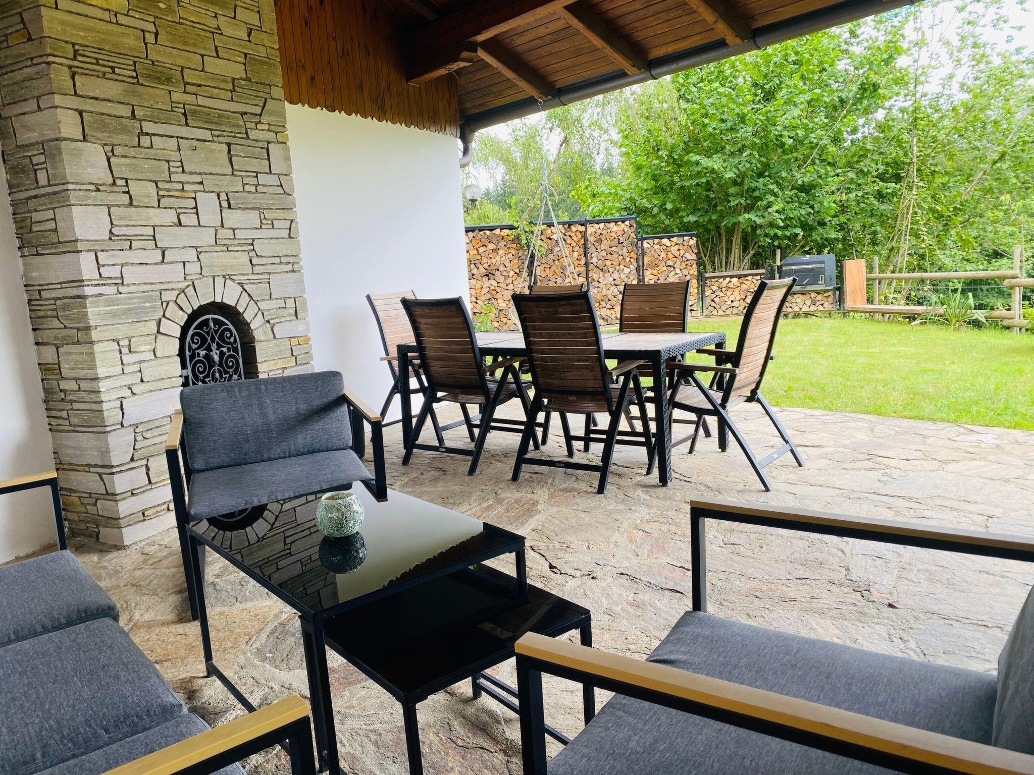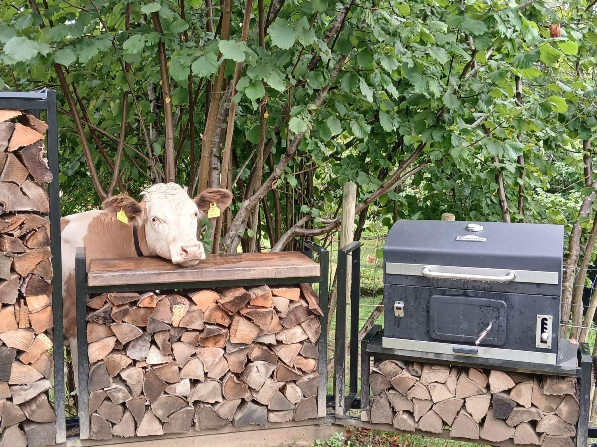 Outside, an unrivalled outdoor area awaits you, inviting you to enjoy unforgettable experiences. A covered terrace with a fireplace allows you to enjoy hours together under the stars or organise a barbecue, even in cooler weather. The private garden, which merges seamlessly into the surrounding nature and a neighbouring cow pasture, offers the ideal retreat for relaxing moments outdoors. Here it is possible to experience nature up close and perhaps even enjoy a visit from some curious calves. The garden is perfectly fenced for all 4-legged friends.