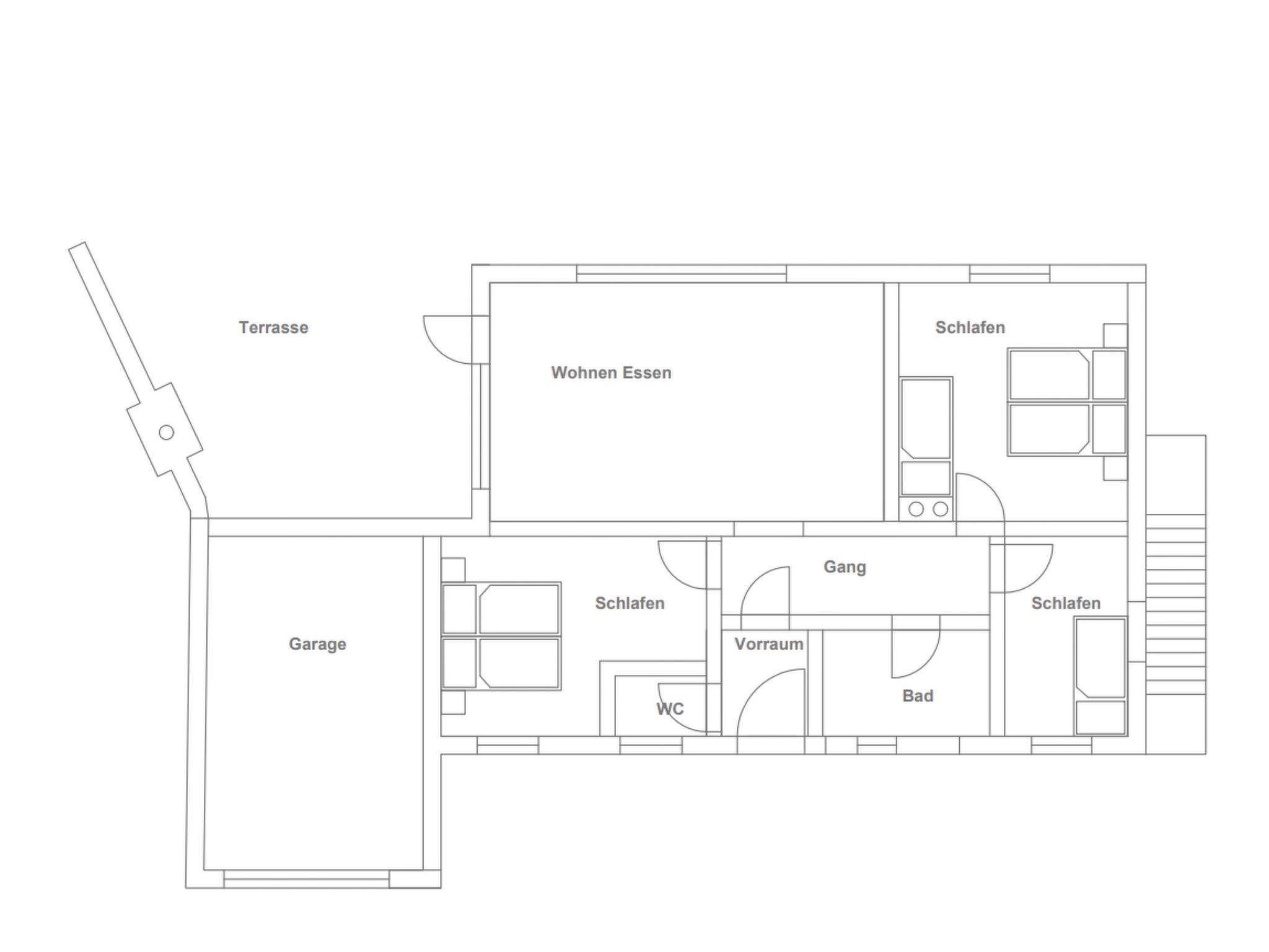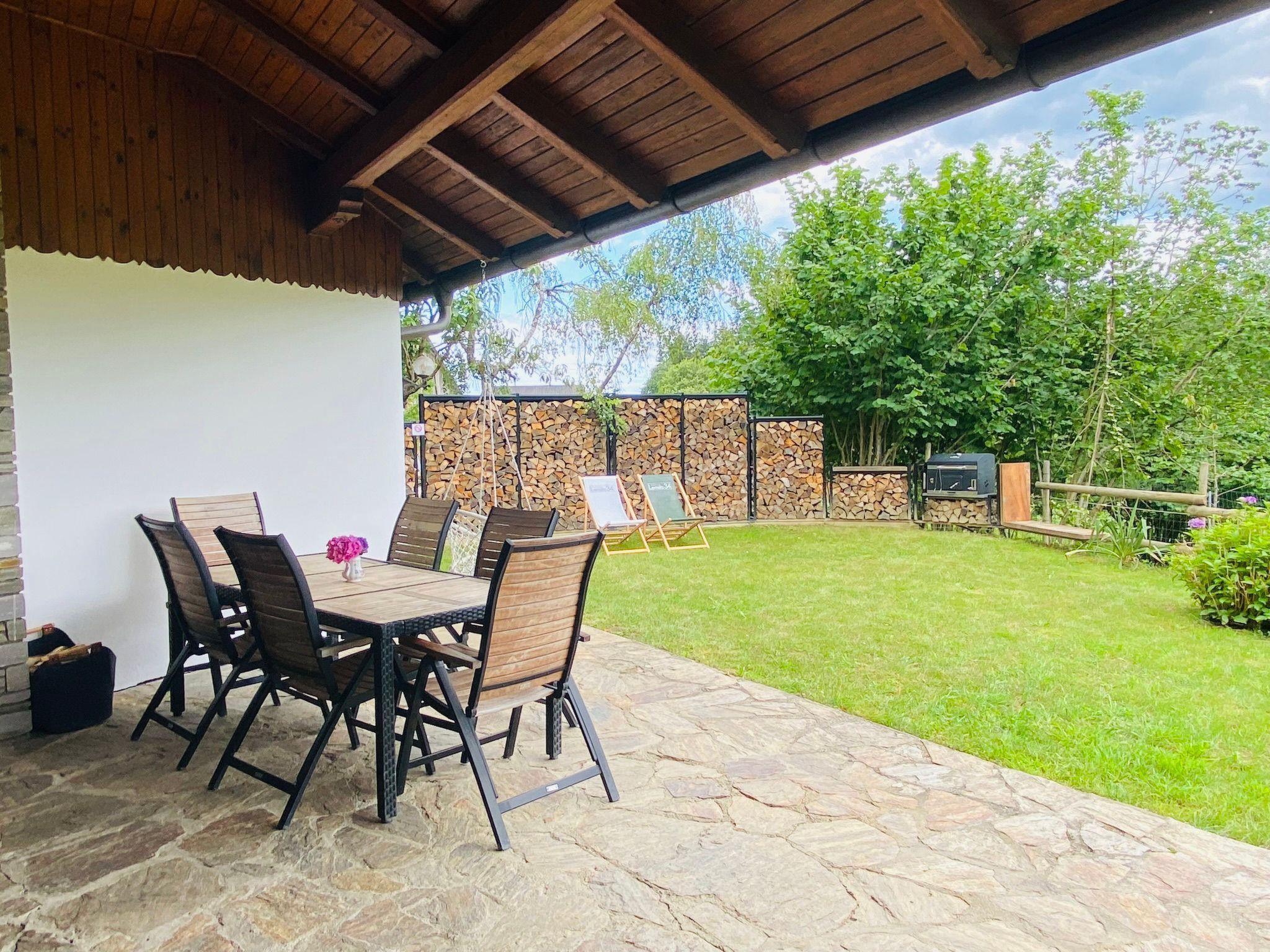 The interior of our completely modernised holiday home comprises a spacious living and dining area with a well-equipped kitchen, three cosily furnished bedrooms, a bathroom and a separate WC. One highlight is definitely the large panoramic window, which gives you a heart-warming view of the greenery. In addition to the wood-burning stove, which ensures cosy evenings, a dishwasher, a flat-screen TV and WiFi in all rooms round off the contemporary comfort.