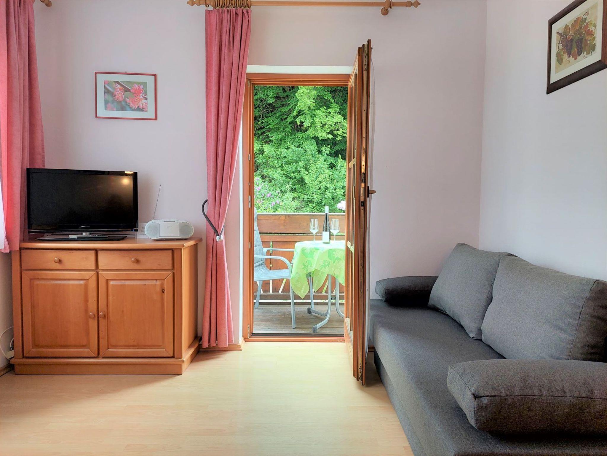 Die geräumige Wohnung besteht aus einem Wohnzimmer (Ausziehcouch für zwei) mit integrierter Küche, Schlafzimmer, Bad und einem Balkon, der sich in Richtung Jauerling öffnet. Sie ist vom Verein Urlaub am Bauernhof mit 4 Blumen ausgezeichnet. Zudem bietet sie: TV, WLAN, Parkplatz, Abstellplatz für Fahrräder, Spielplatz in unmittelbarer Nähe, Kinderhochstuhl, Reisegitterbett und die Möglichkeit, für den Ersteinkauf zu sorgen.
