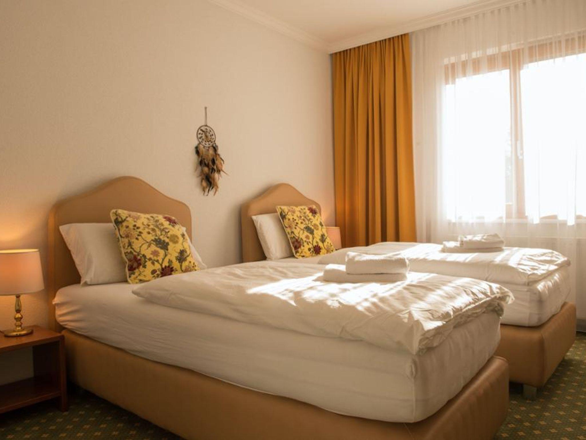 Das Doppelzimmer (19qm) verfügt über ein hochwertiges Boxspringbetten mit (eher weicher) Matratze. Die Betten können teils auseinander gestellt werden zu separaten Einzelbetten. Extra Badezimmer mit Dusche und WC, Sat-TV und WLAN. Inklusive 1 Flasche Quellwasser bei Ankunft.