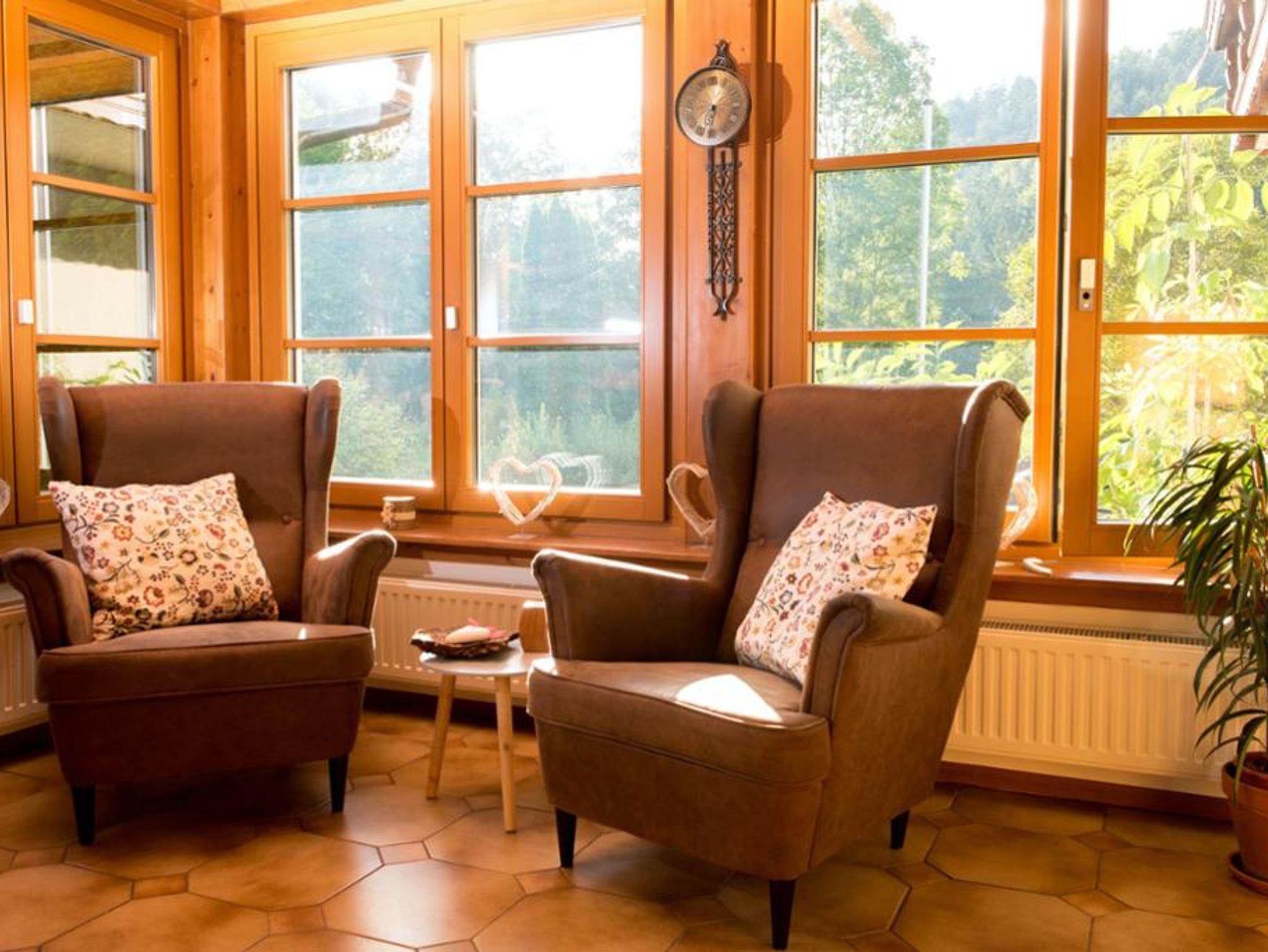 Die Pension verfügt über ruhige Doppel- und Einzelzimmer mit Badezimmern und Blick auf den Wald und den Garten. Ein reichhaltiges Frühstück mit frischen, regionalen Produkten sorgt für einen guten Start in den Tag. WLAN ist vorhanden, falls Arbeit ansteht.