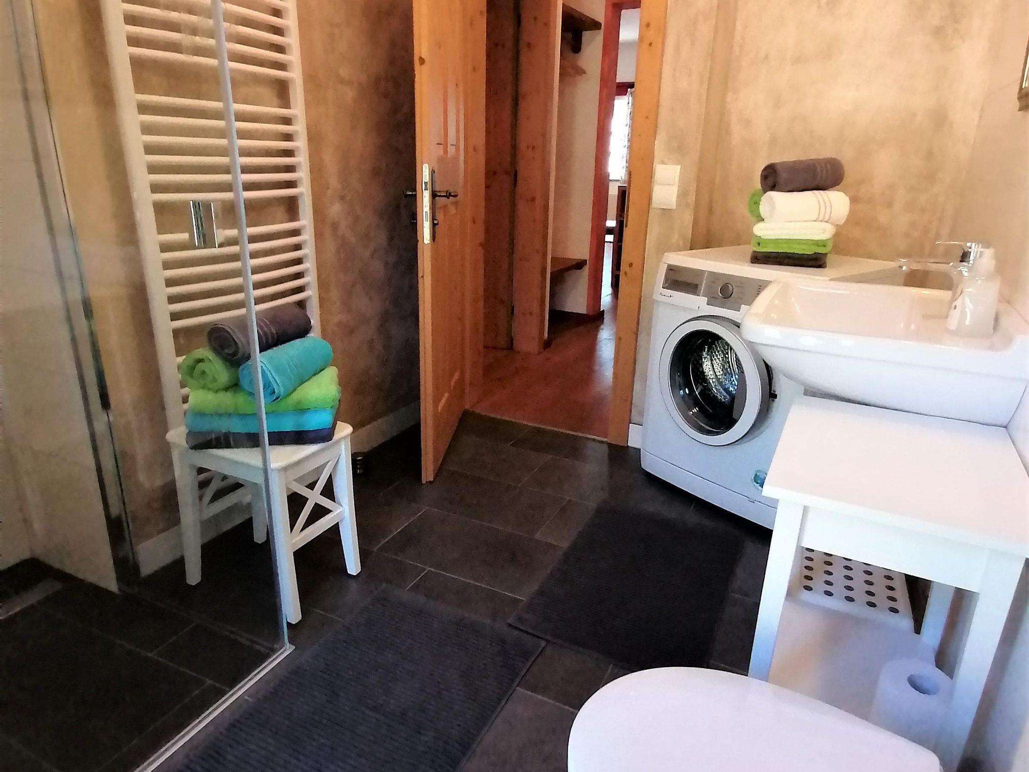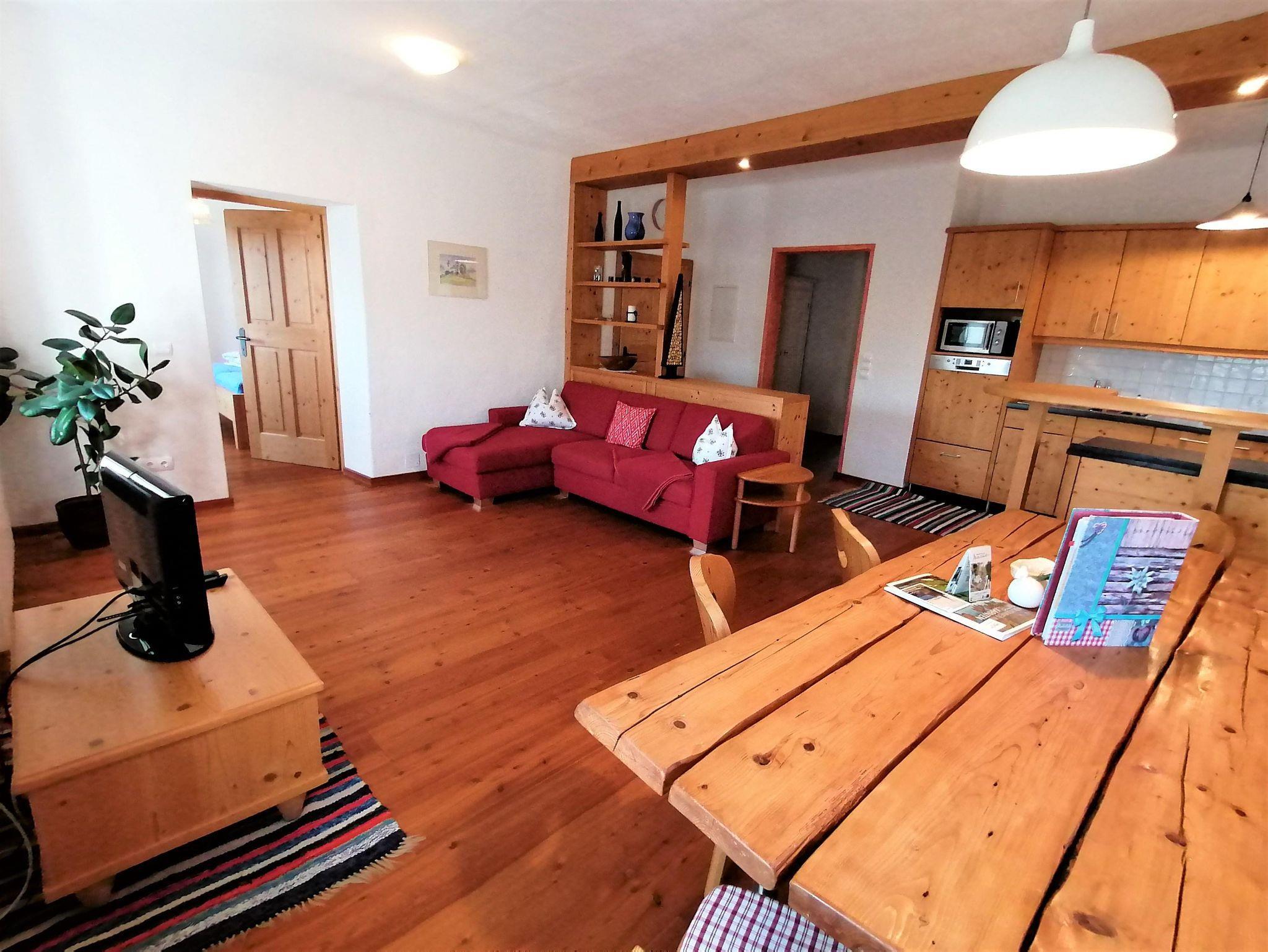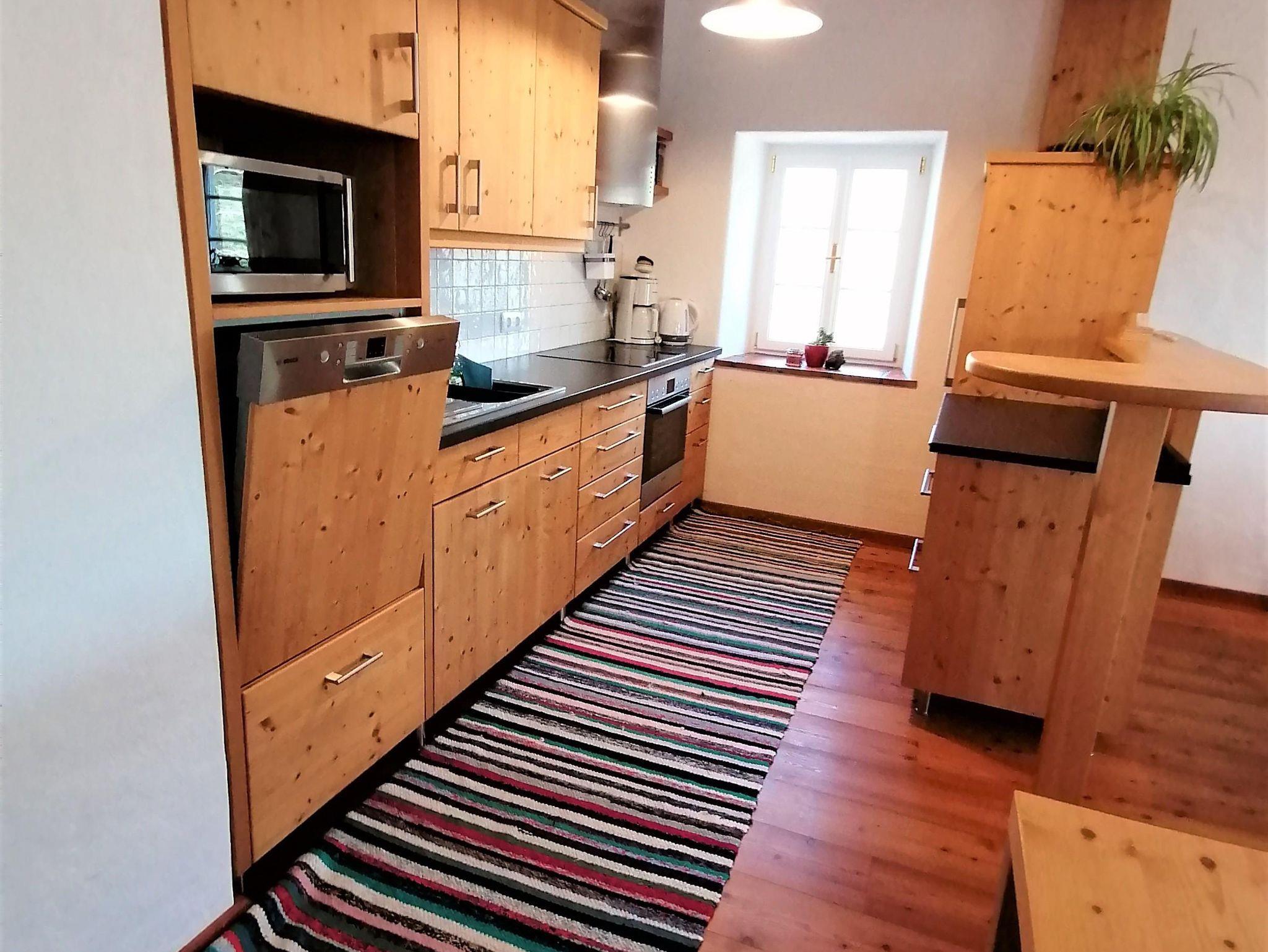 Das Appartement wurde 2014 sehr großzügig errichtet, ist liebevoll und komfortabel mit Möbel und Böden in Massivholz ausgestattet und liegt im 2. Stock unseres „Haupthauses“. Die Wohnung verfügt über eine sehr große, voll ausgestattete Küche mit Kühlschrank plus Gefrierfach, Geschirrspüler, Mikrowelle, E-Herd plus Ceranfeld, Filter-Kaffeemaschine und Wasserkocher, einem Schlafzimmer mit Doppelbett und einem Schlafzimmer mit Stockbett und Couch, einem großen Wohn- und Essbereich mit Fernseher sowie einem Bad mit französischem Balkon, Dusche und WC.